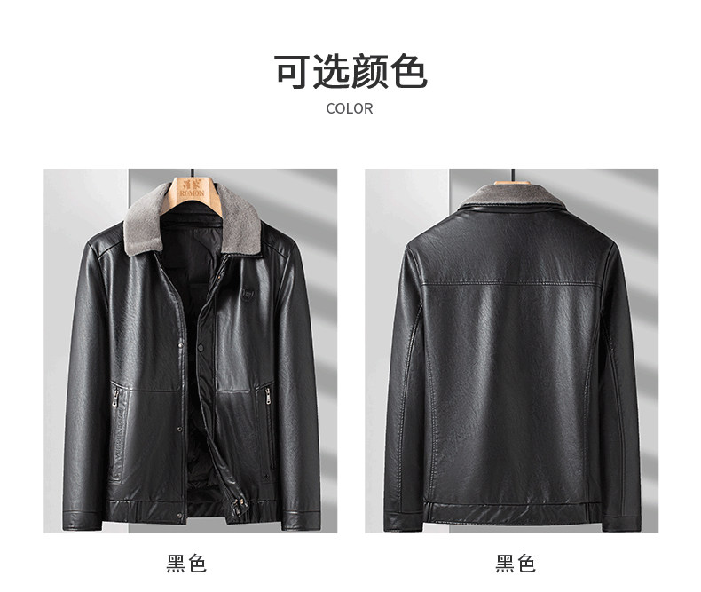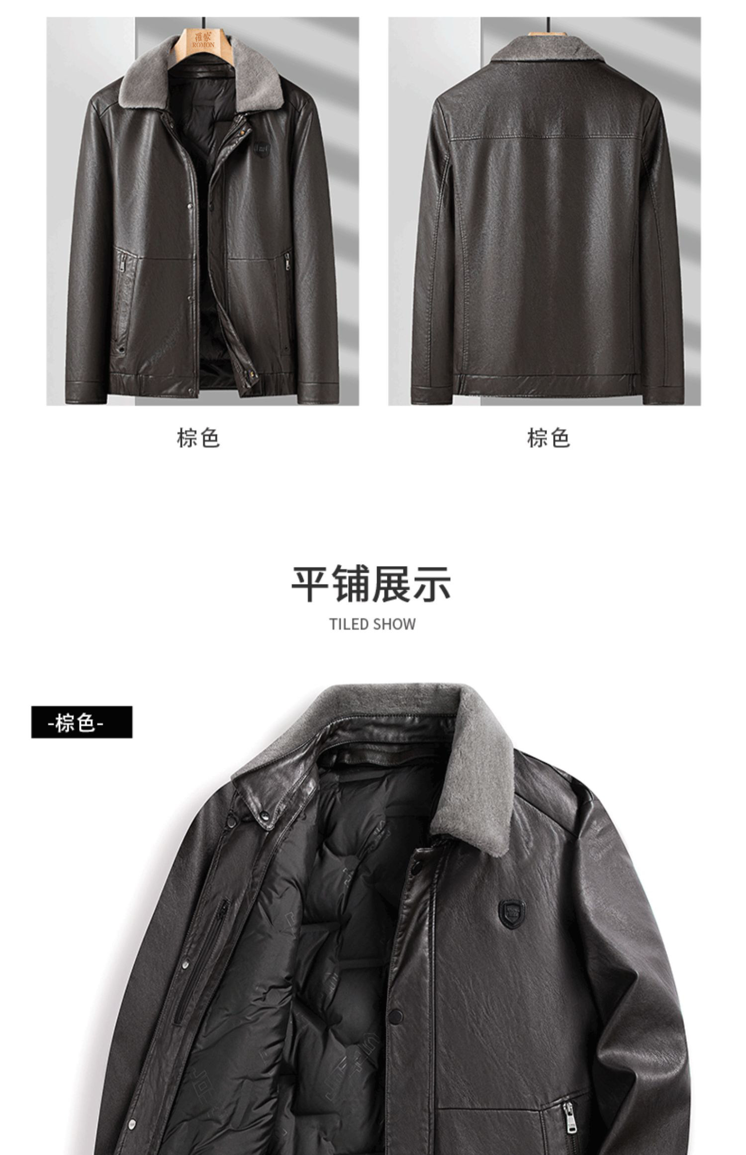 Romon Men's Leather Jacket, Thickened Short Style with Detachable Fur Collar and Inner Lining, Winter down Jacket for Middle-Aged and Elderly Fathers