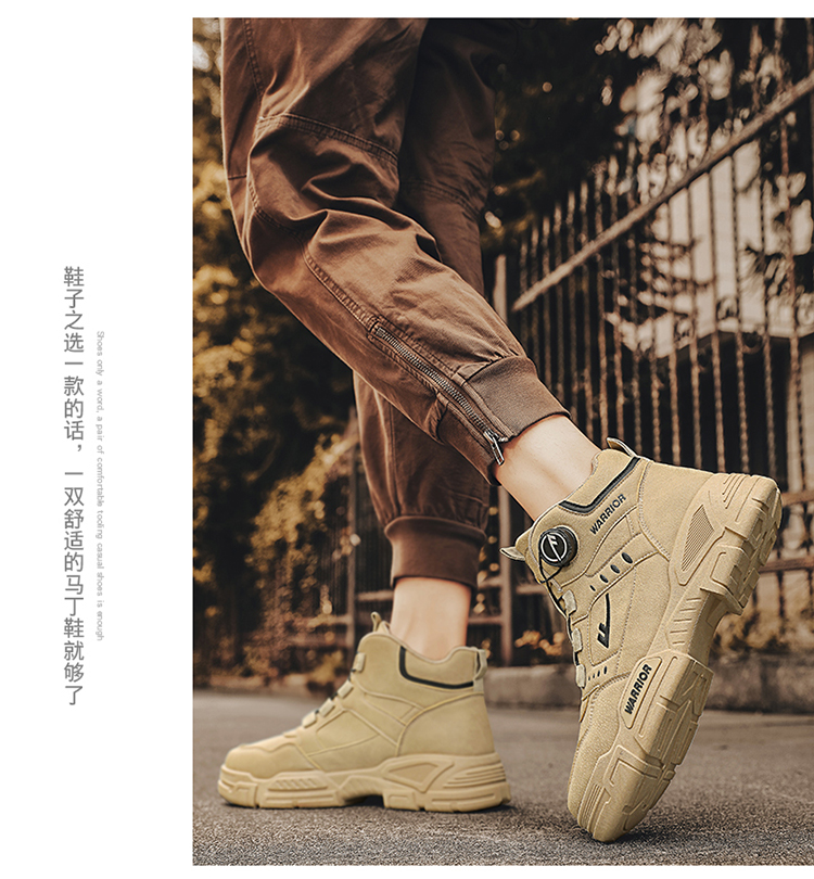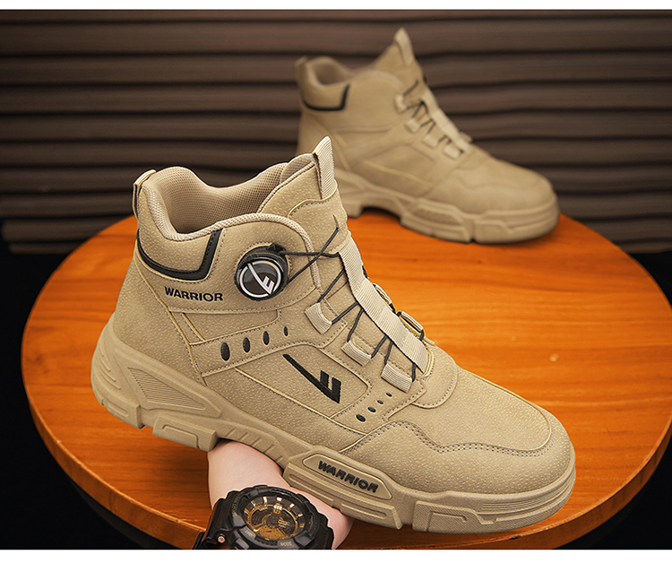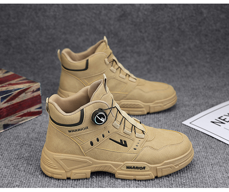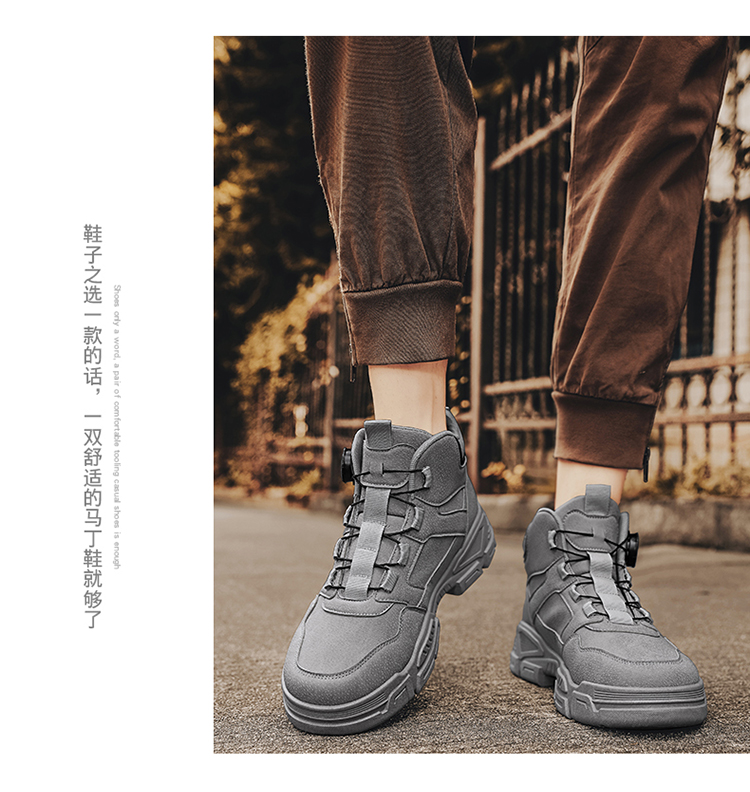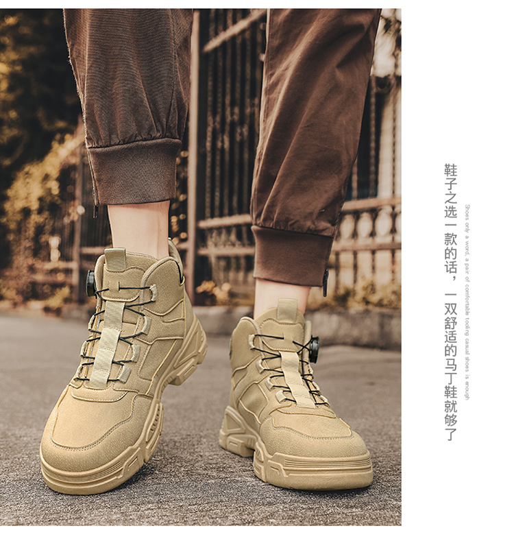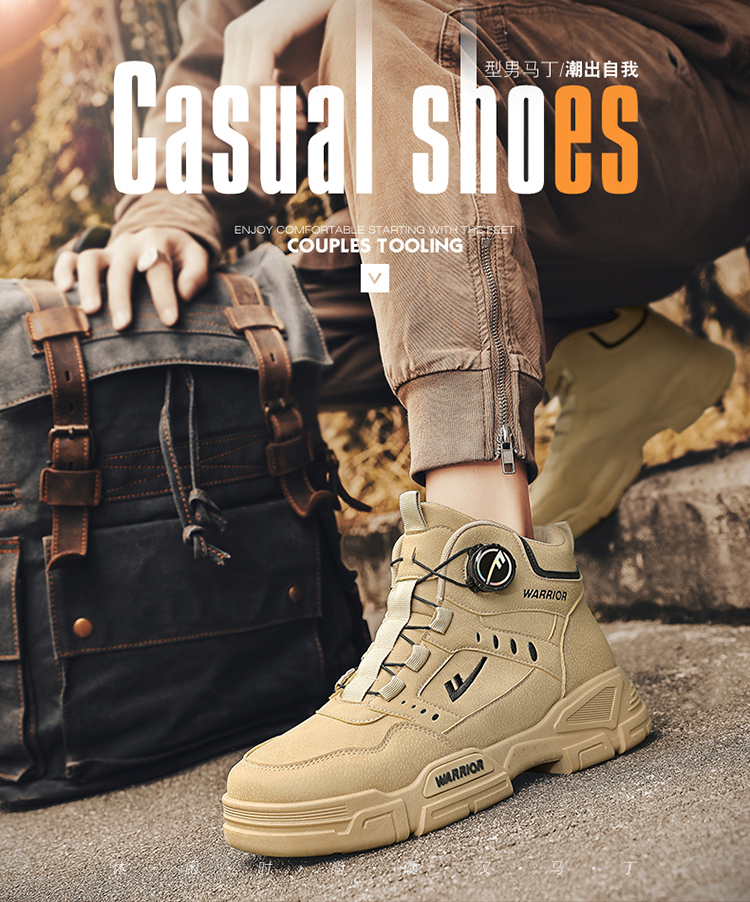 Pull-Back Men's Shoes, Martin Boots, Autumn Outdoor Sports Hiking Shoes, Work Boots, Men's Rotating Button Waterproof, Wear-Resistant and Non-Slip