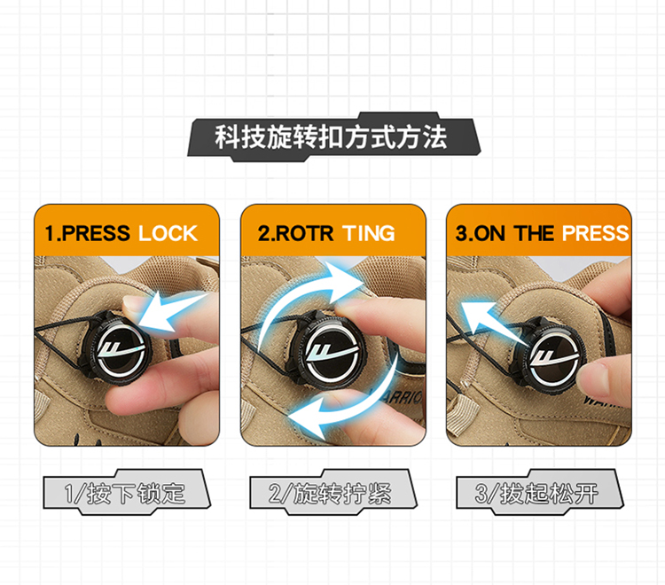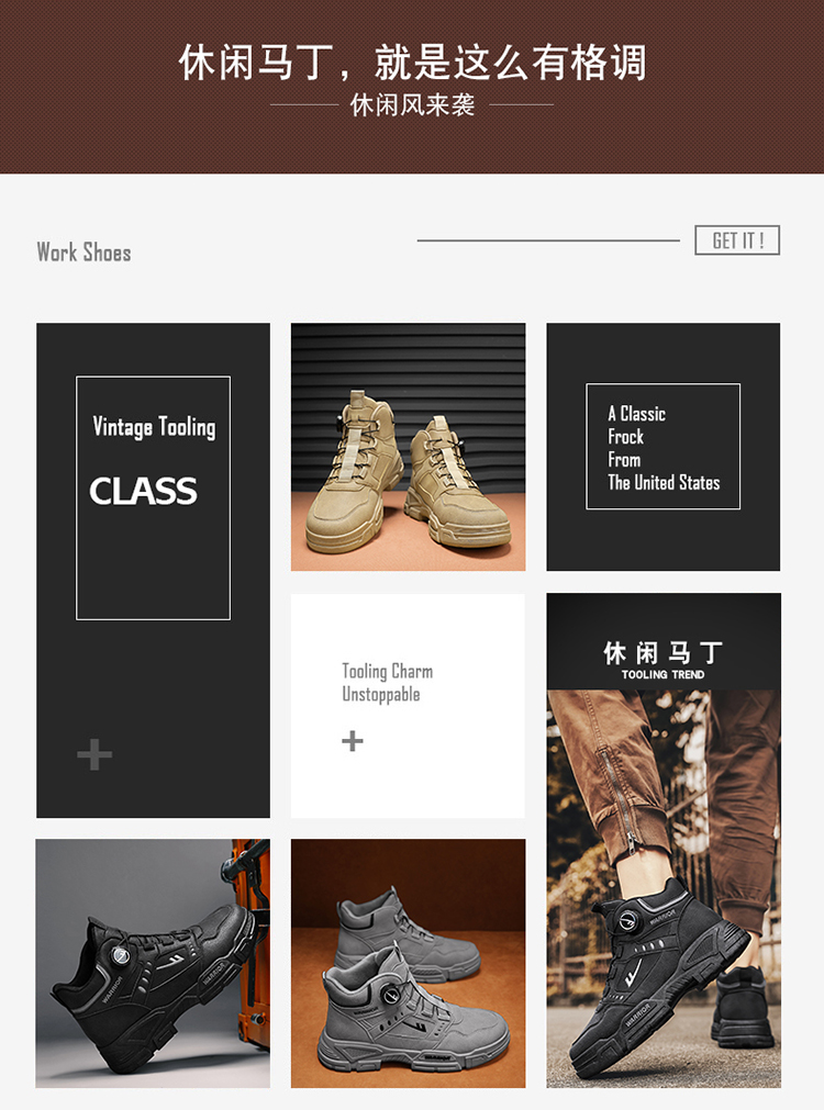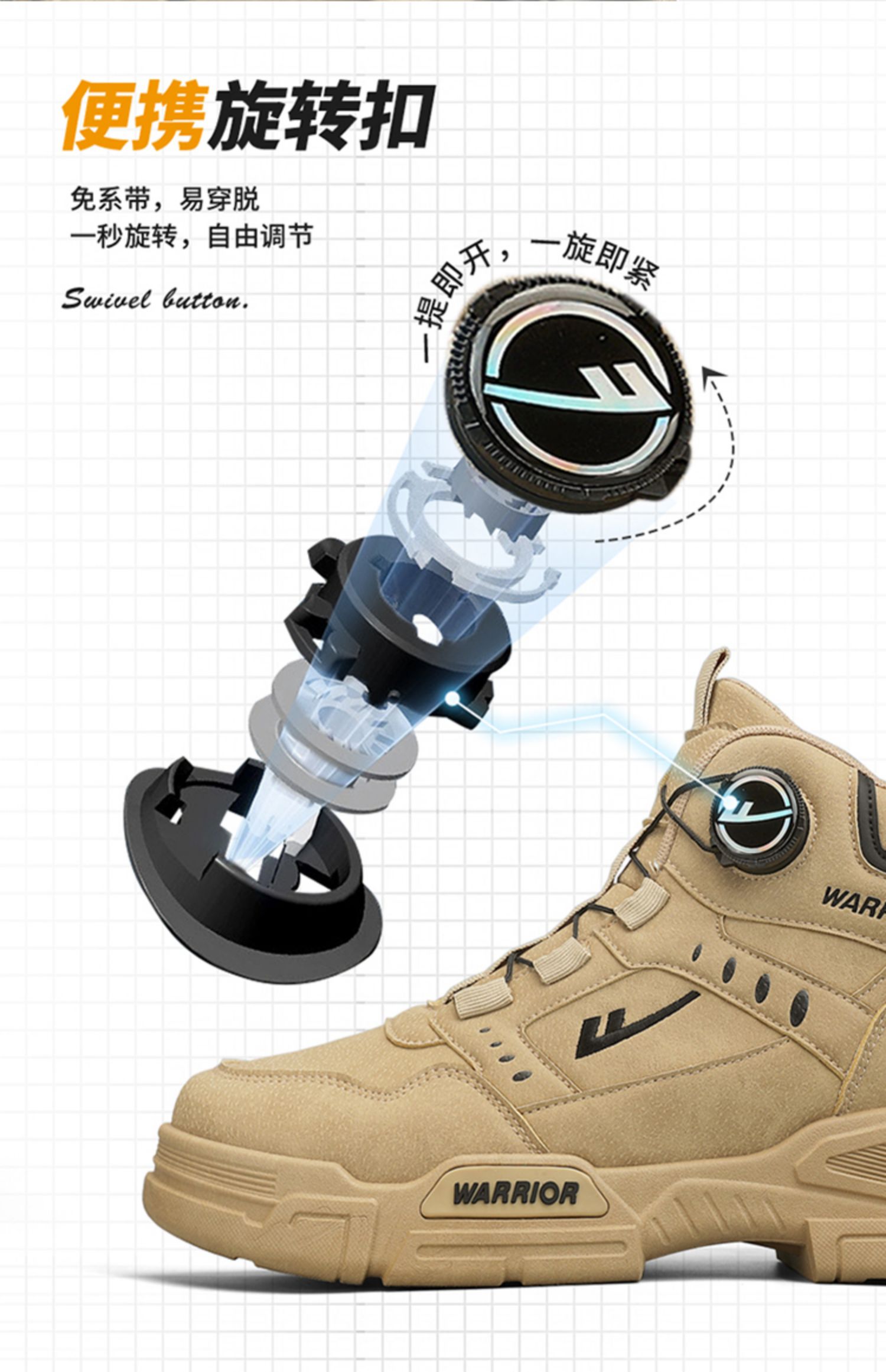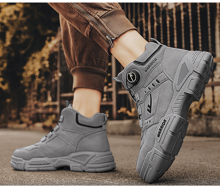 Pull-Back Men's Shoes, Martin Boots, Autumn Outdoor Sports Hiking Shoes, Work Boots, Men's Rotating Button Waterproof, Wear-Resistant and Non-Slip