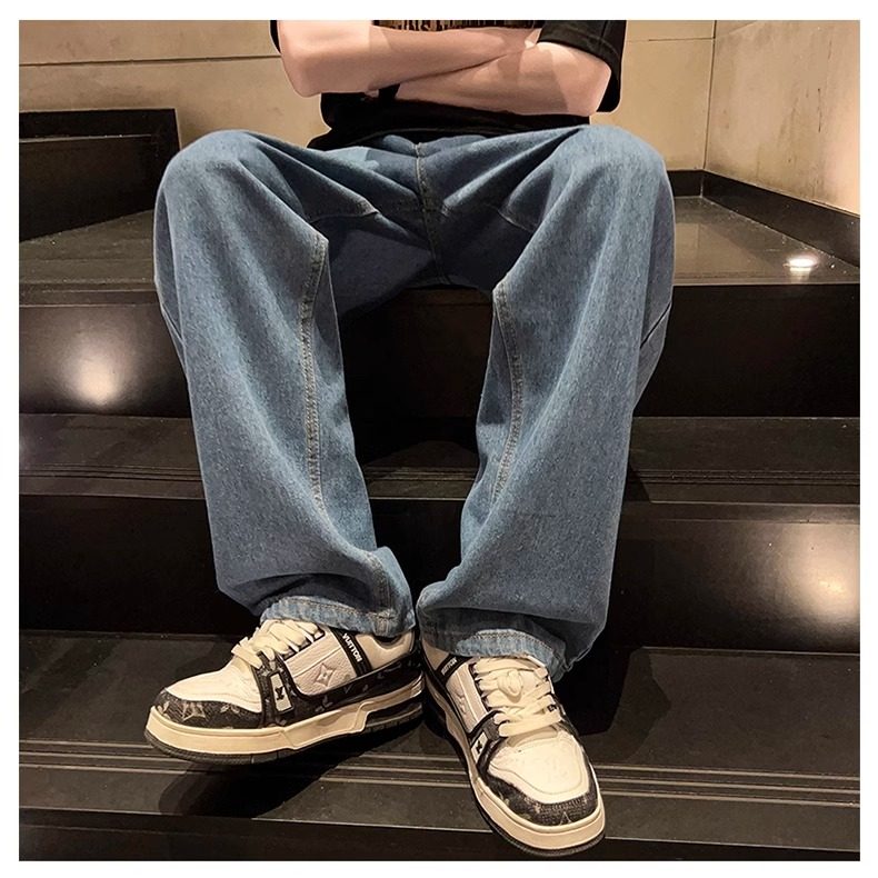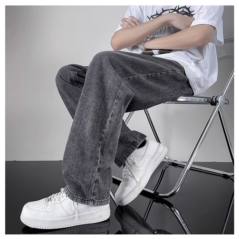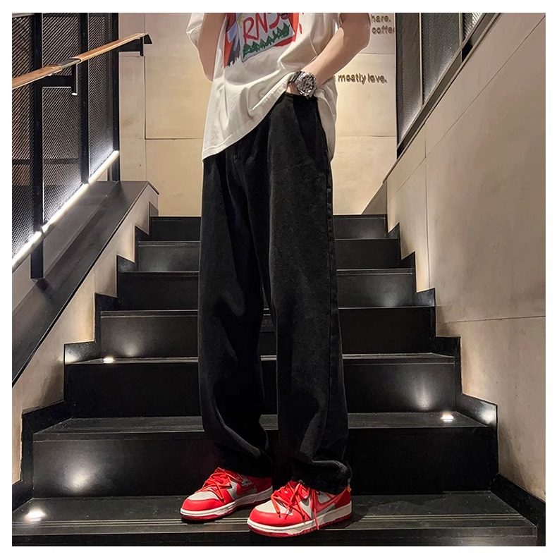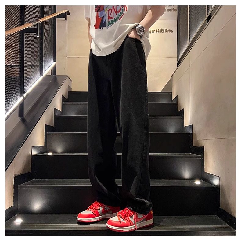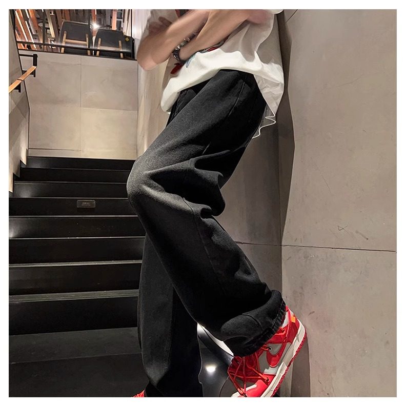 Black and Gray Men's Autumn Jeans Hong Kong Style Cec Loose Wide-Leg Pants Trendy Retro Straight Casual Long Trousers