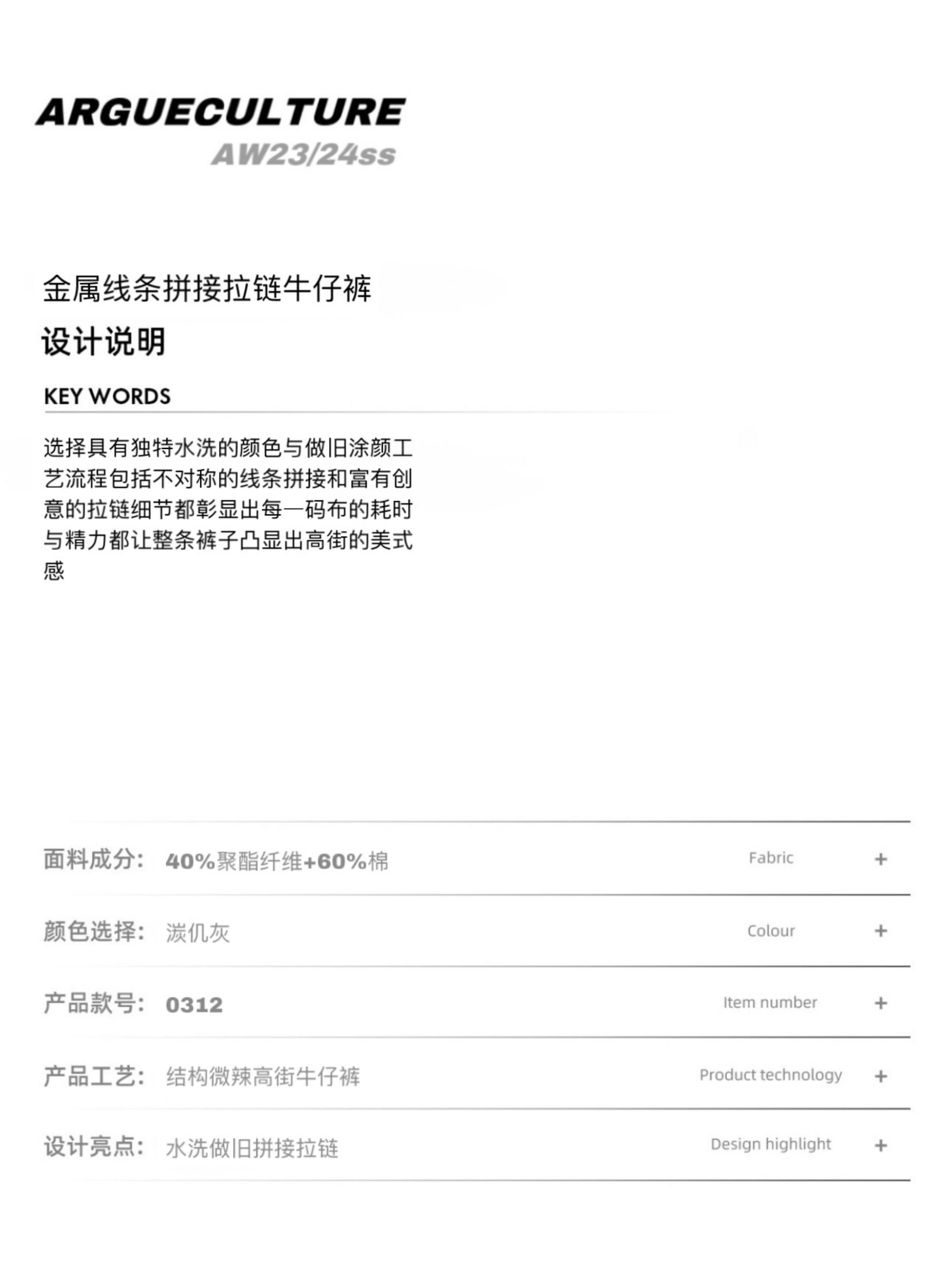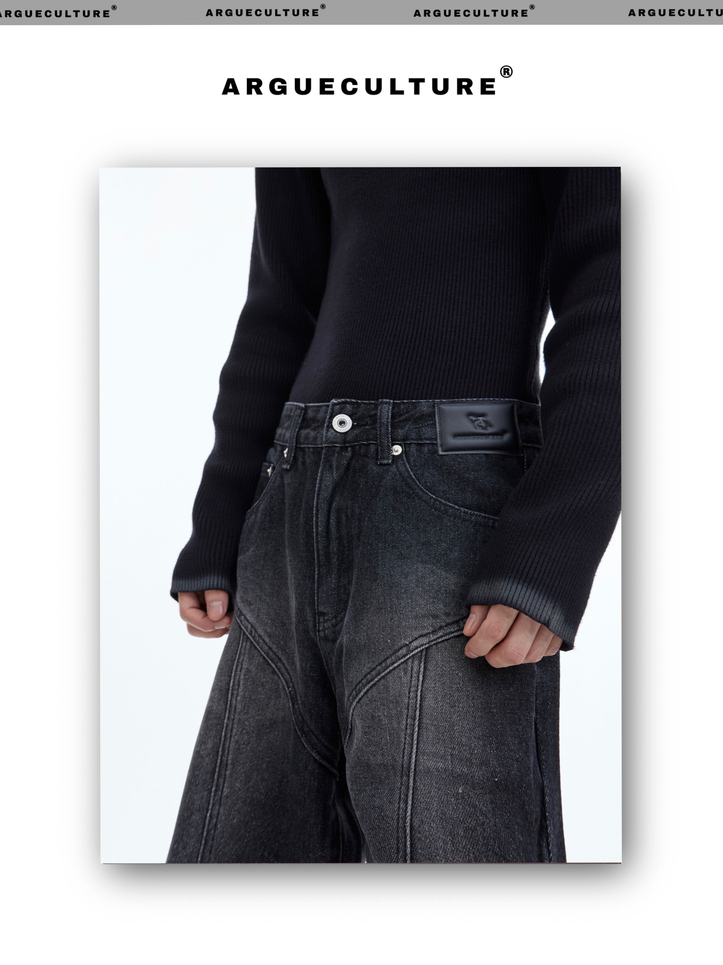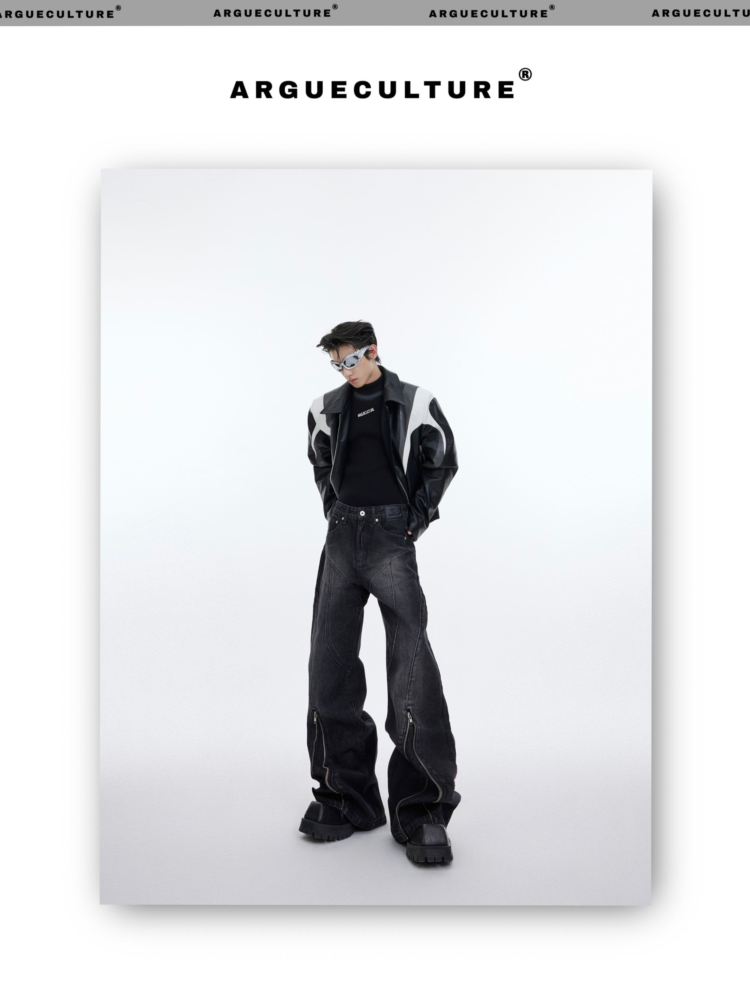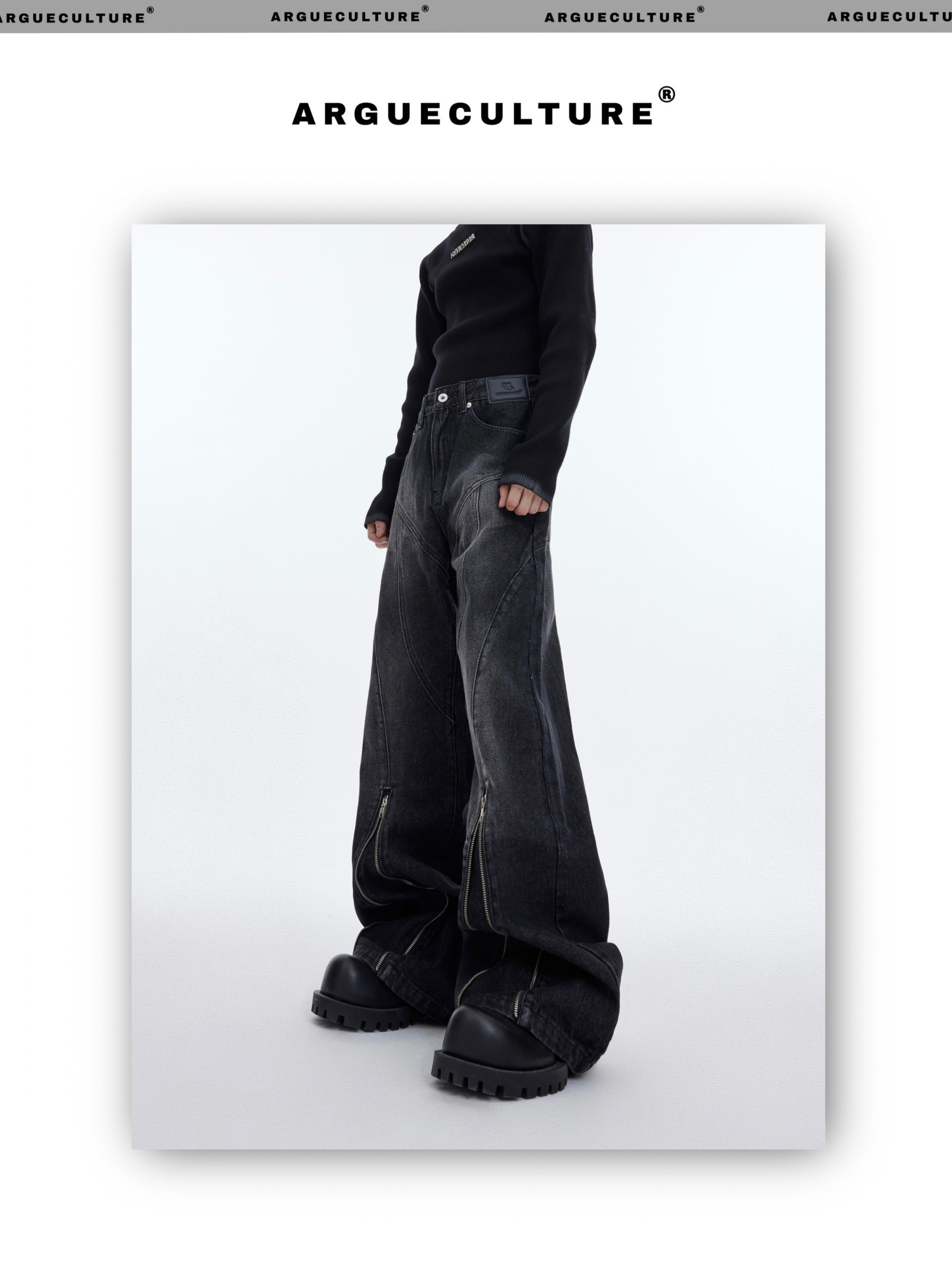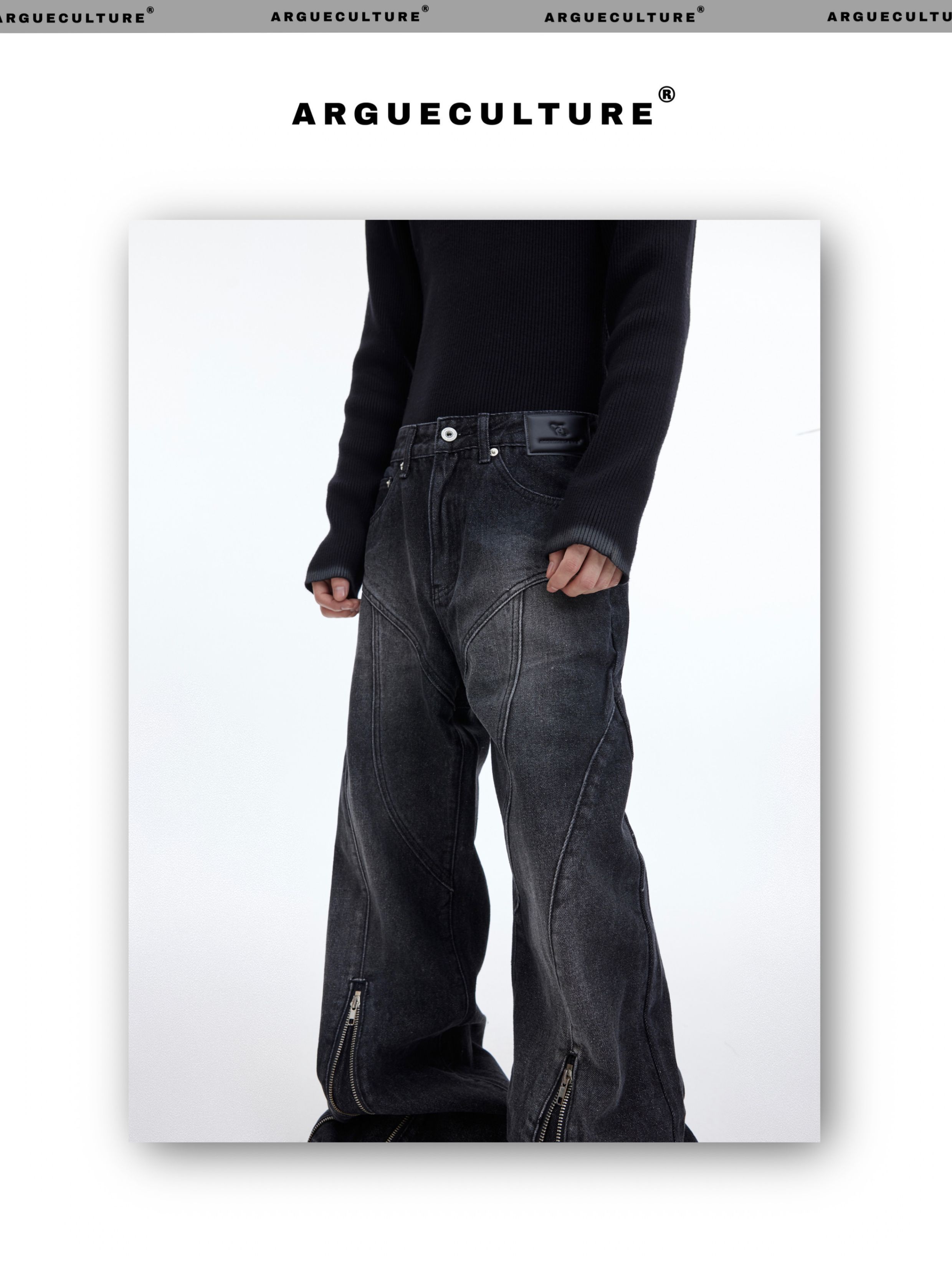Culture Heavyweight Niche Washed Vintage Structured Line Micro-Flared Jeans with Metal Zipper Design Long Pants