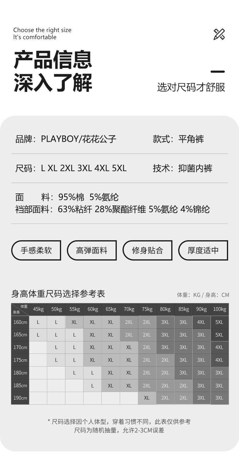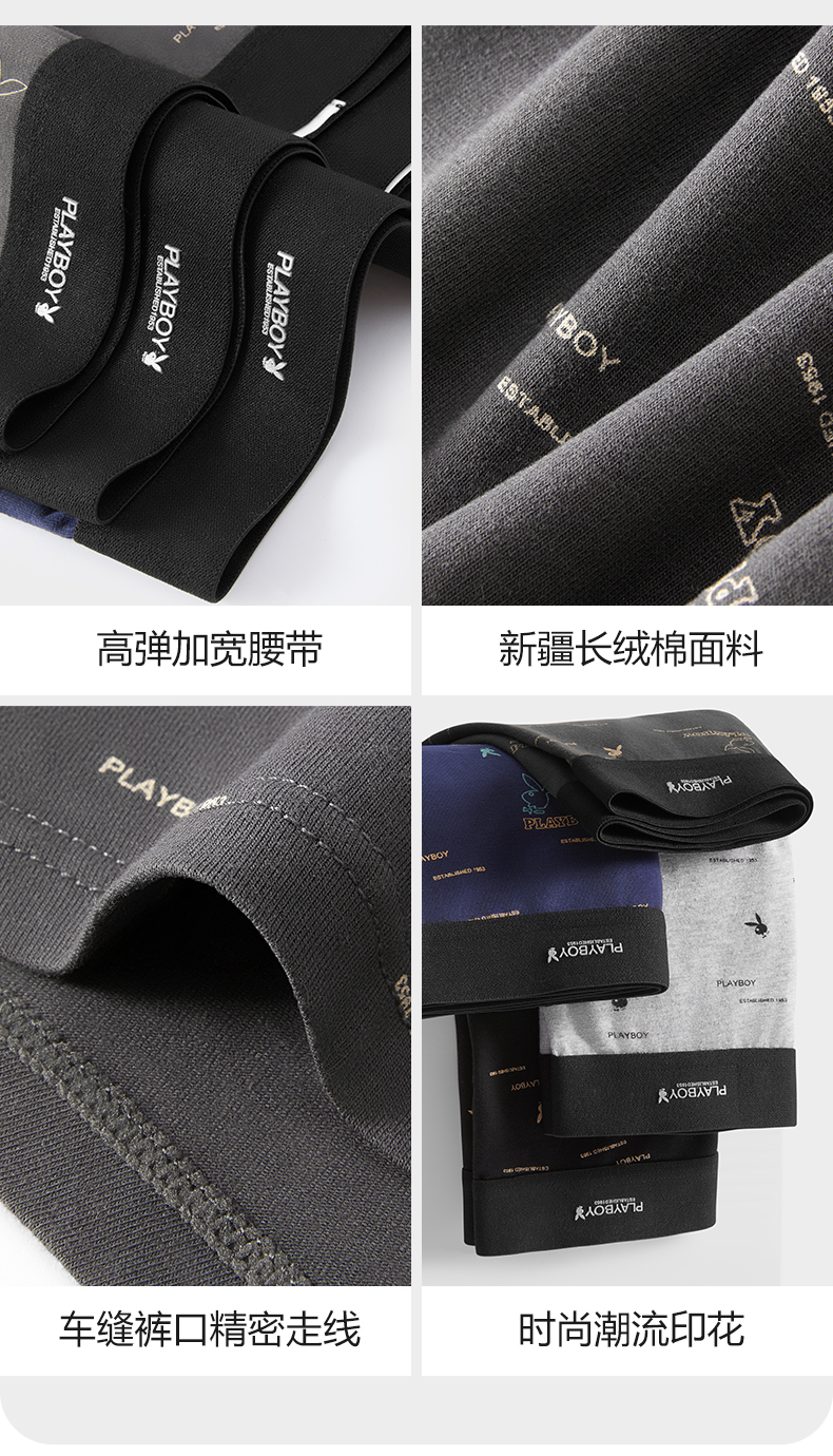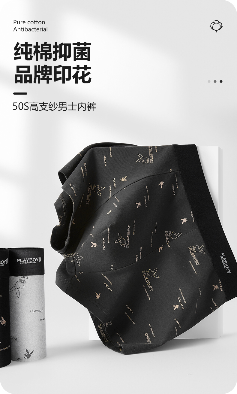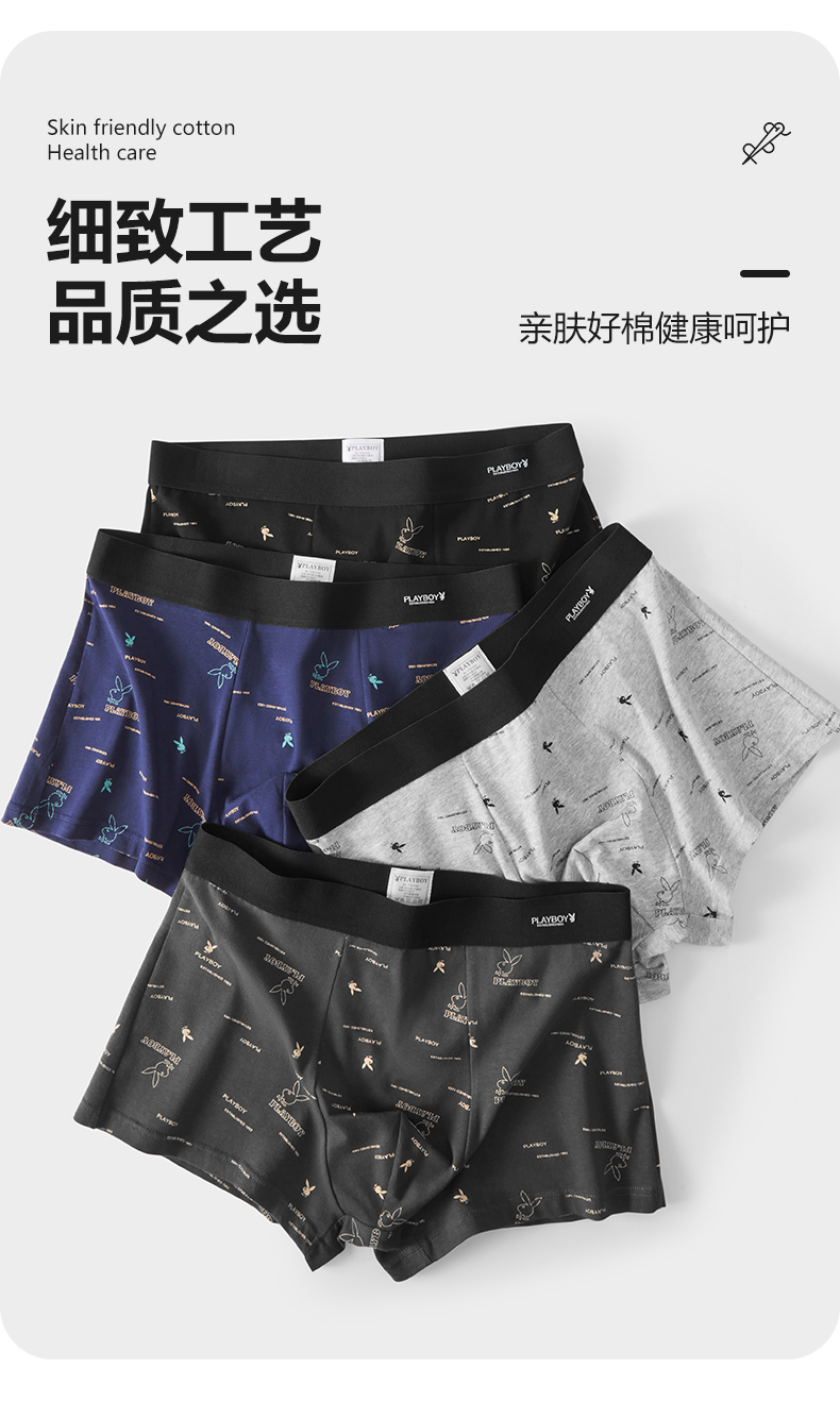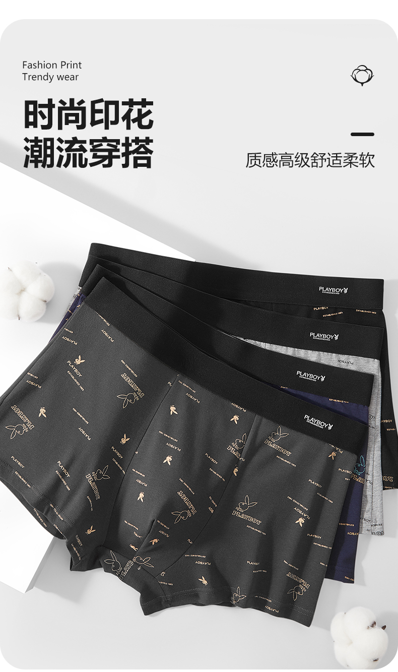 Playboy pure cotton Men Underwear Cotton Antibacterial Breathable Boys Boxer shorts Men's 2025 New arrival