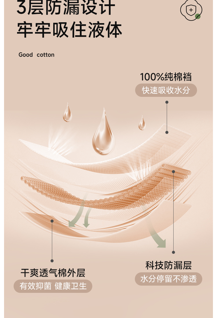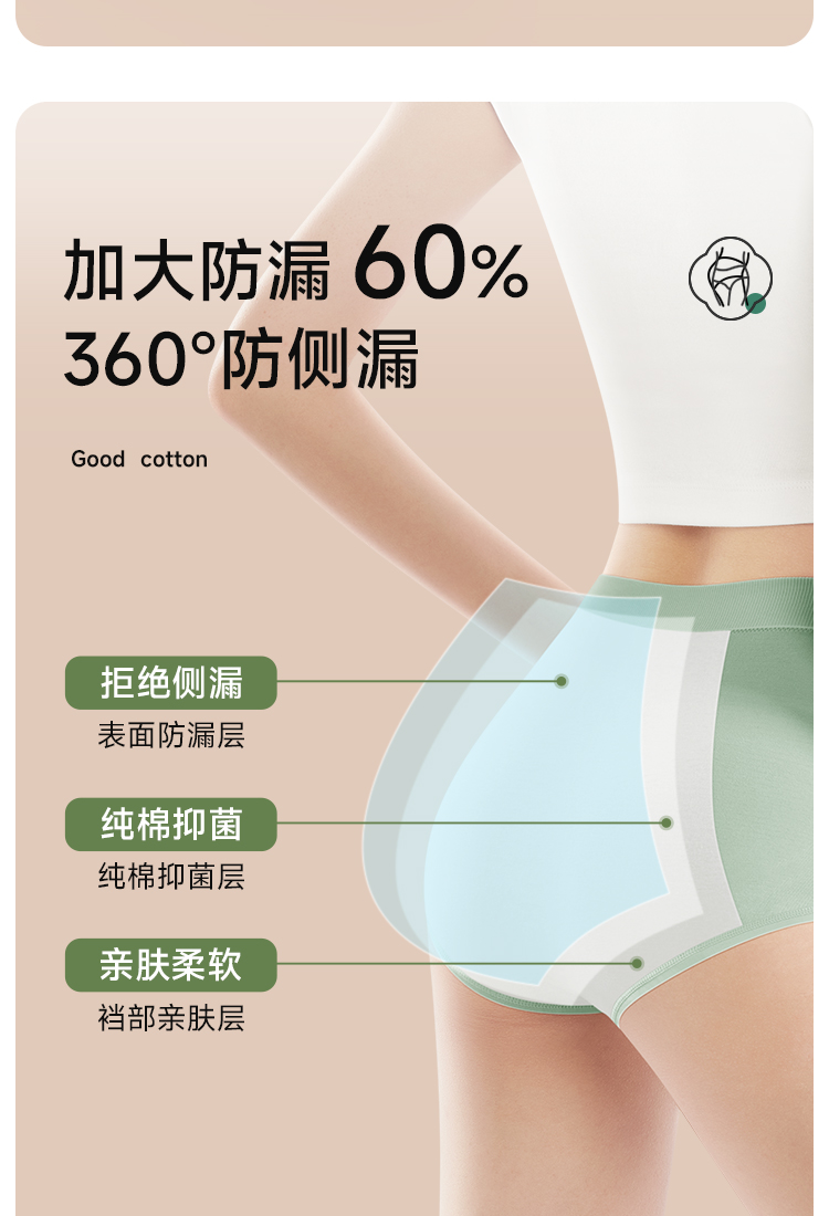 Menstrual Underwear for Women, Leak-Proof, Side-Leakage Protection, Pure Cotton Crotch, Antibacterial, Safe Period Panties, Special Pants for Menstrual Period