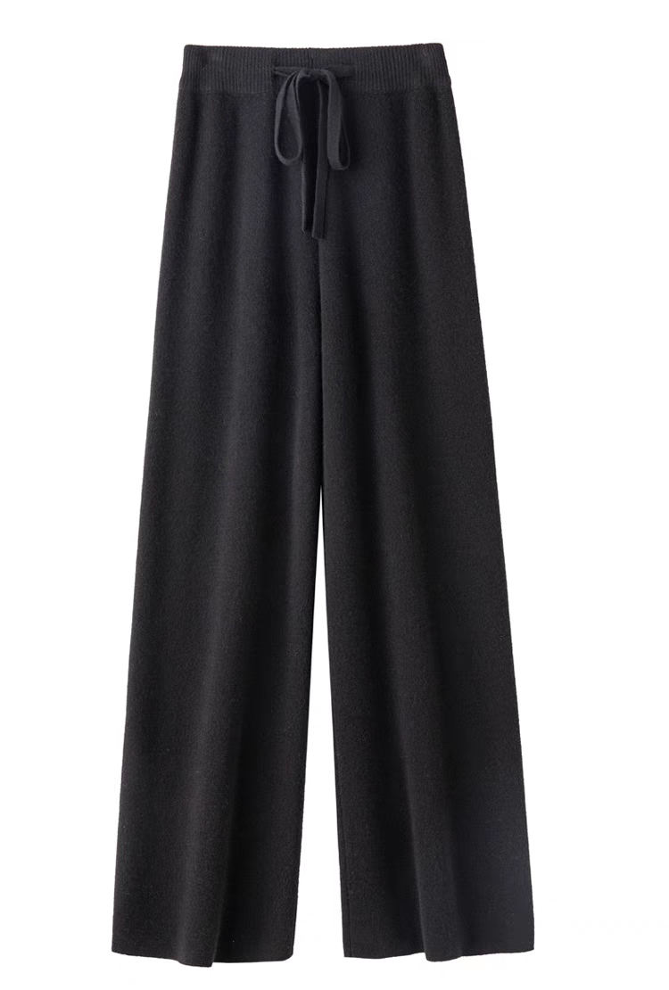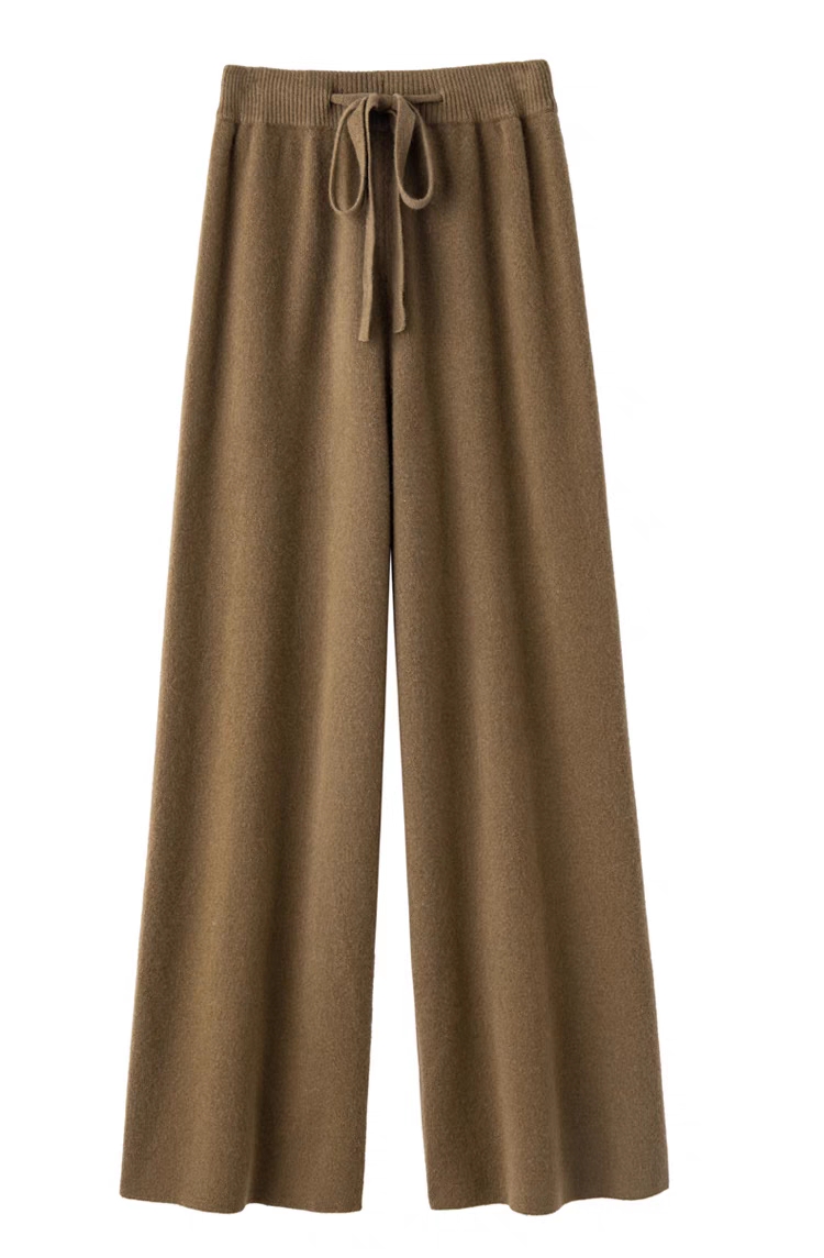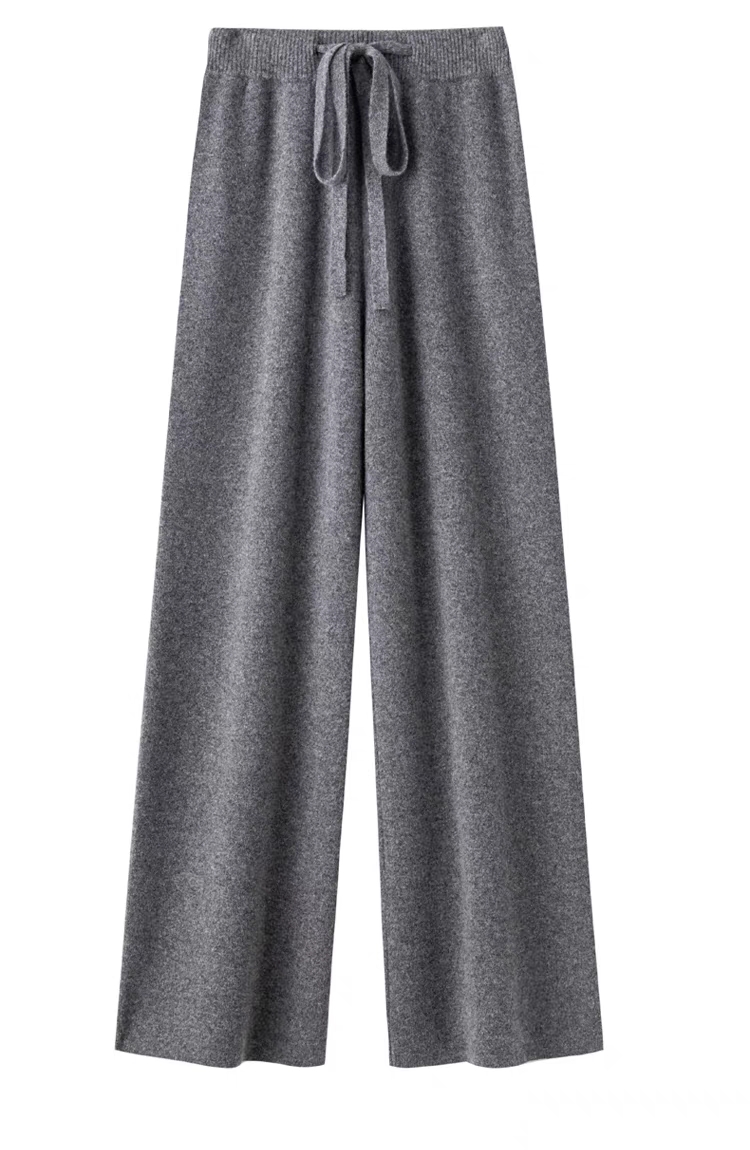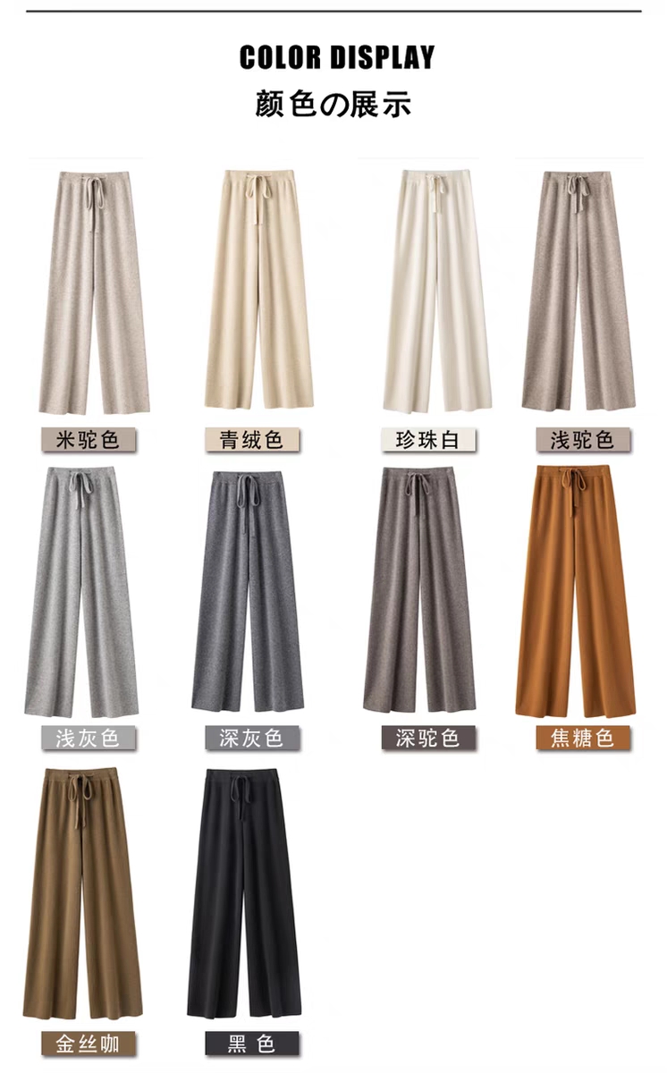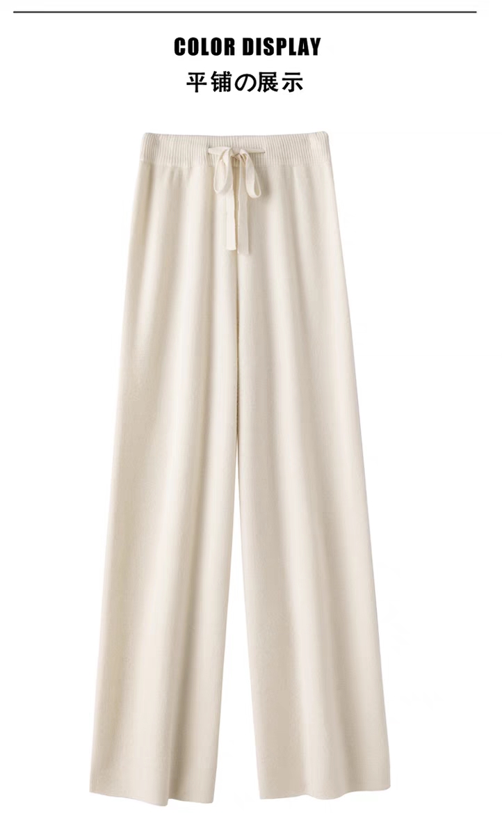 100% Pure Wool Knit Wide-Leg Pants for Women, Autumn and Winter High-Waisted Drapey Cashmere Pants, Straight-Leg Casual Floor-Length Pants for Outerwear