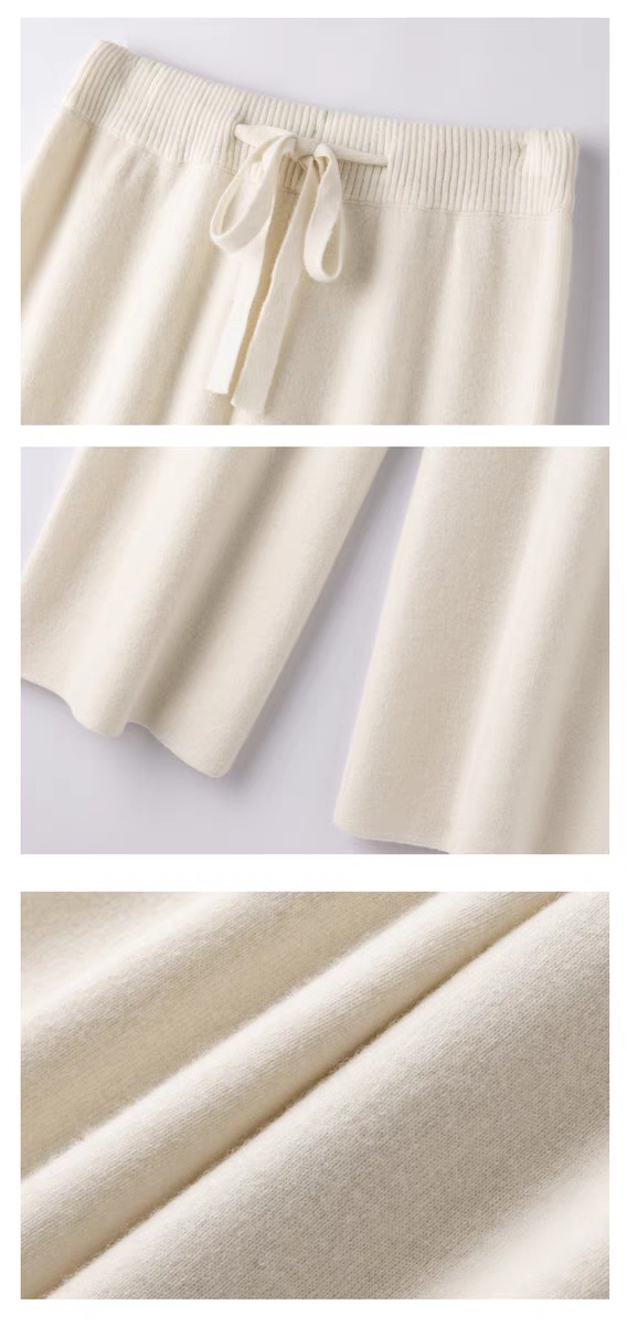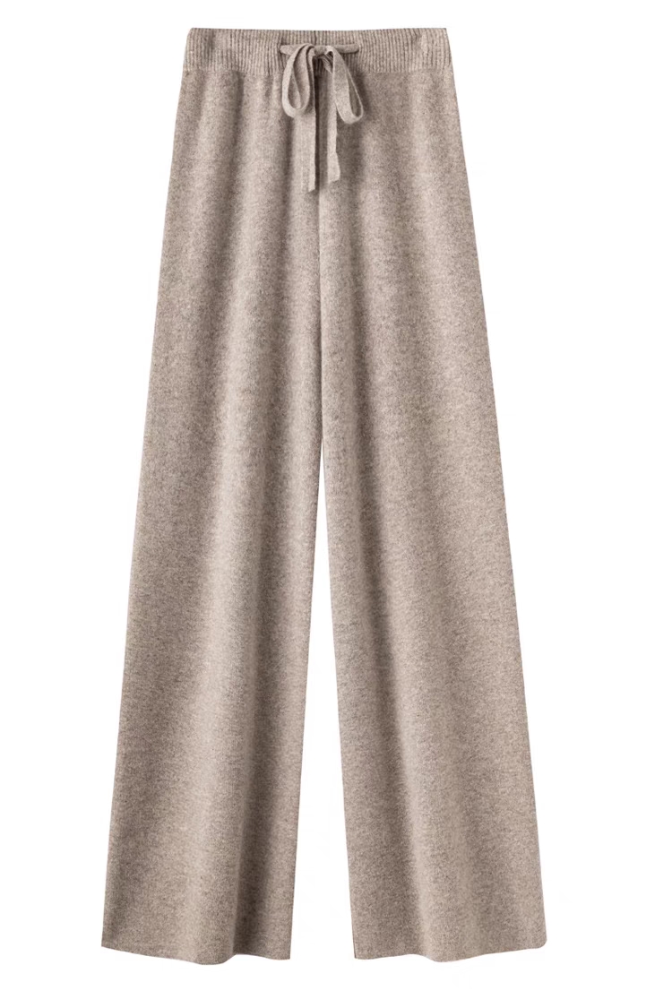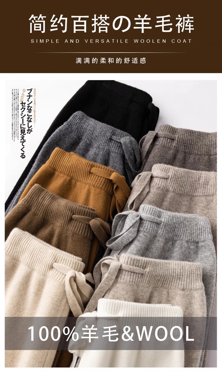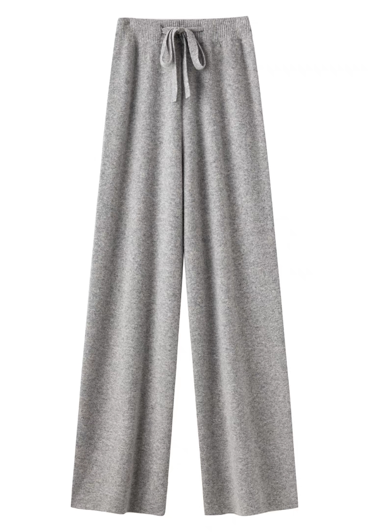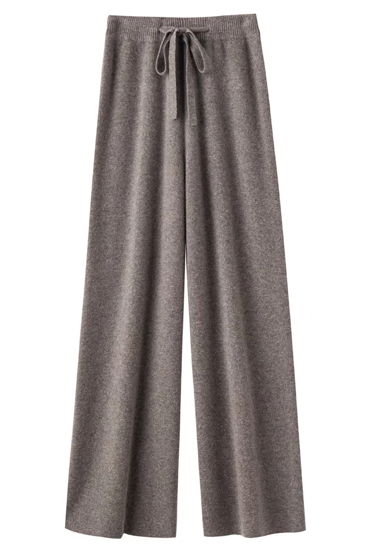 100% Pure Wool Knit Wide-Leg Pants for Women, Autumn and Winter High-Waisted Drapey Cashmere Pants, Straight-Leg Casual Floor-Length Pants for Outerwear