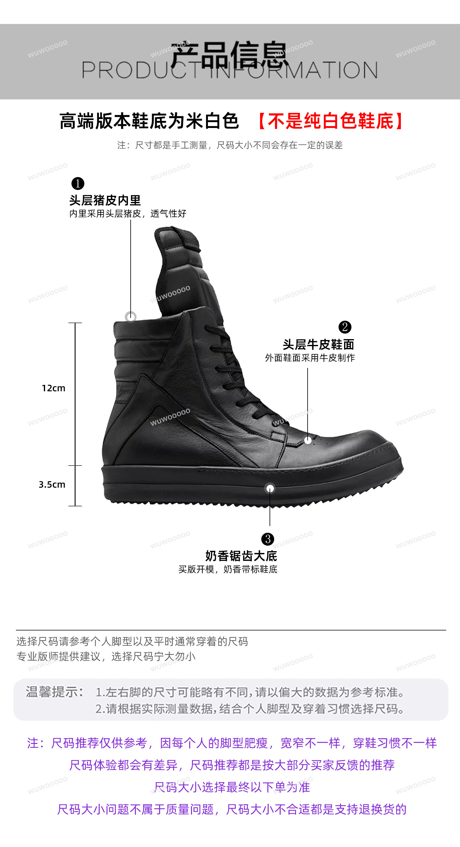 Black Warrior High-Top Short Boots for Men, Inverted Triangle Dark Style, Cowhide Thick-Soled Height-Increasing Sneakers, Celebrity Style Niche Shoes