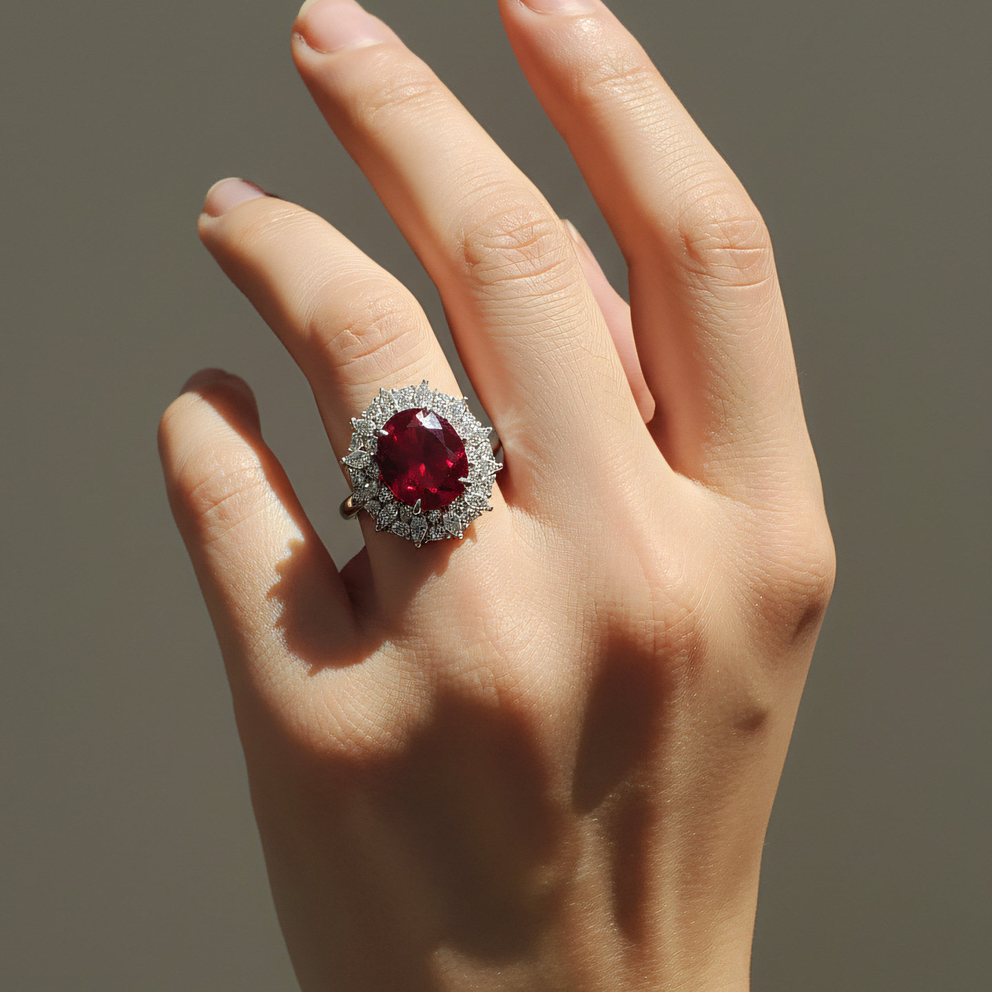 Nurtured Ruby 925 Sterling Silver Ring, Niche High-End Pigeon Blood Synthetic Ruby, Versatile Princess Diana Ring