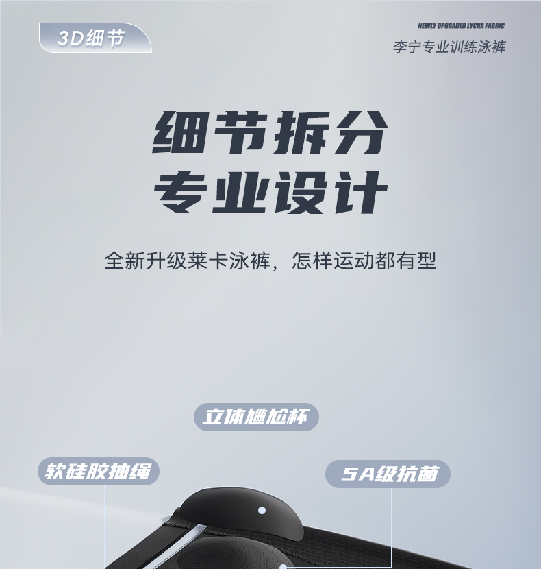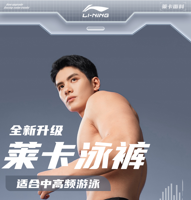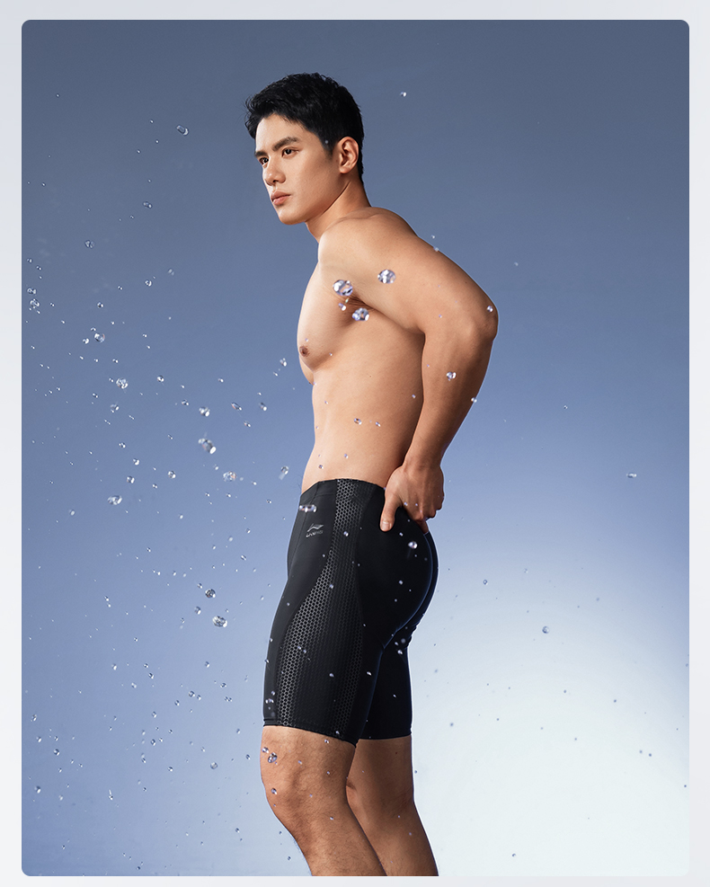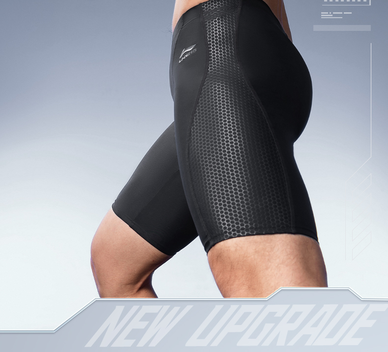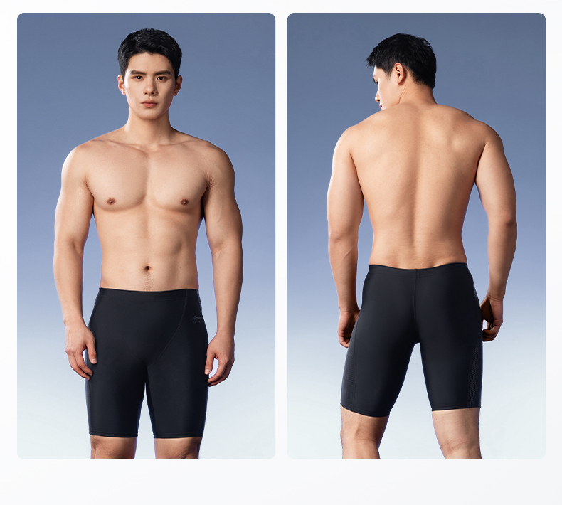 Li-Ning Professional Swimming Trunks for Men, Racing Training, 2025 New Model, Adult Lycra Knee-Length Swimming Gear