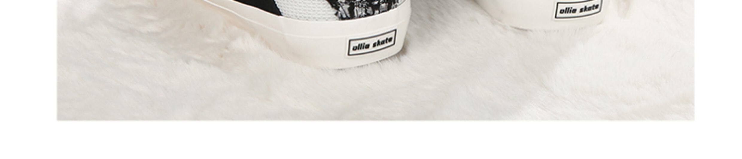 Ollieskate Bread Shoes Black and White Tweed Style Suede Canvas Patchwork Bake Unisex Skate Shoes