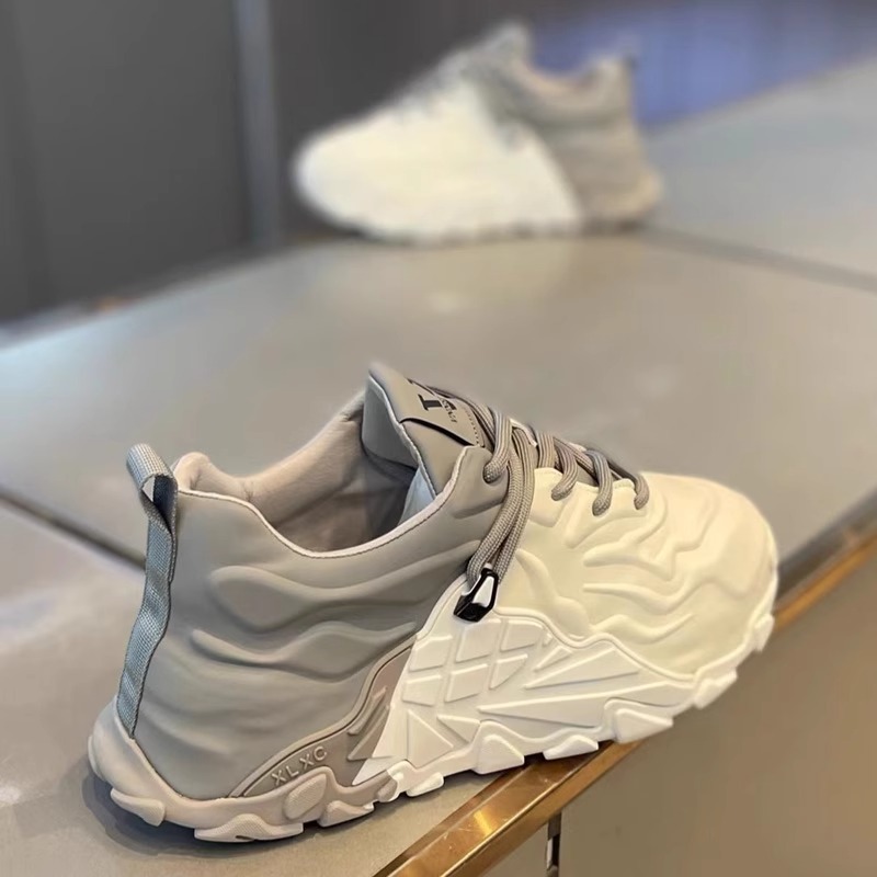 Hong Kong Trendy Brand Itun7G New Autumn Leather Men's Shoes, Lightweight Thick-Soled Comfortable Color-Blocking Casual Dad Shoes