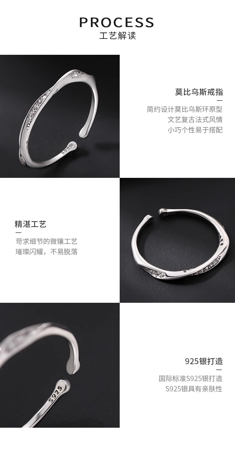 925 Sterling Silver Mobius Ring for Women, Adjustable, High-End Index Finger Ring, Light Luxury, Versatile Ring Jewelry