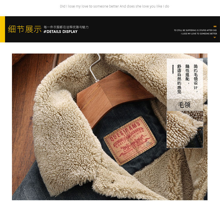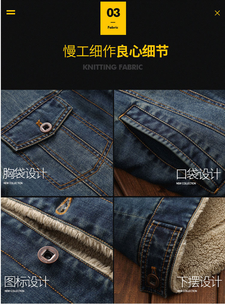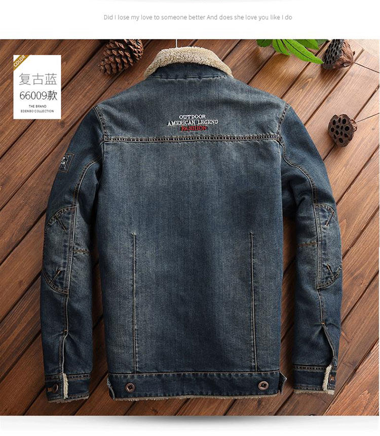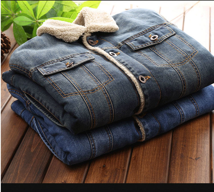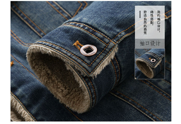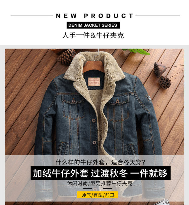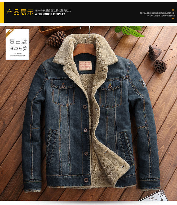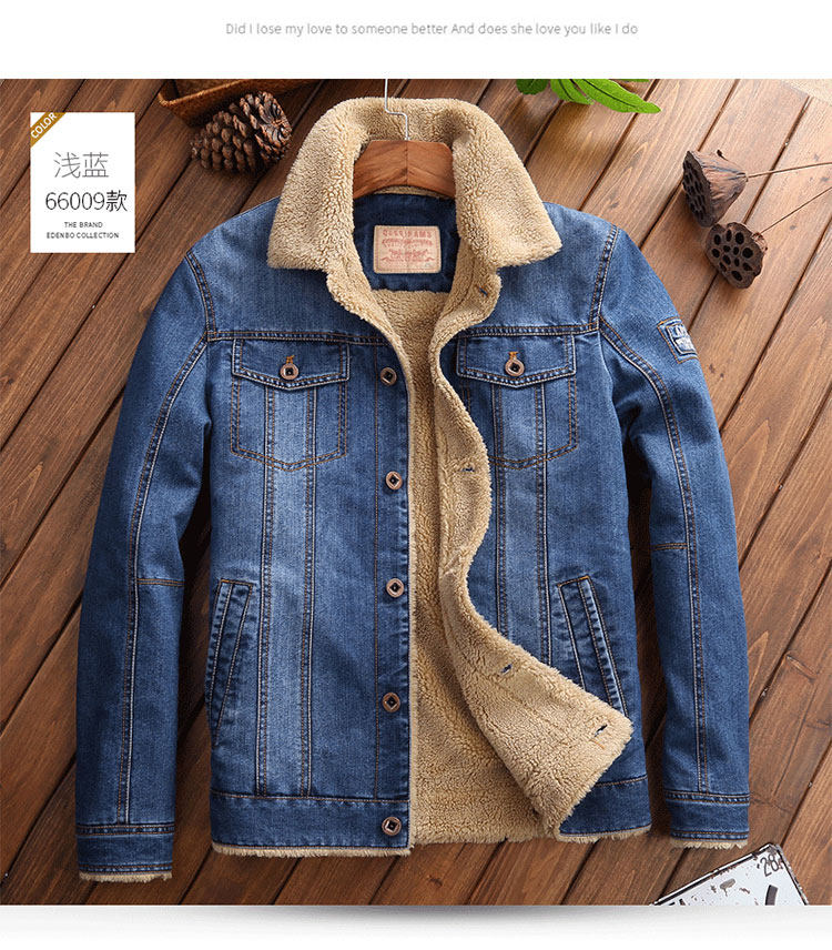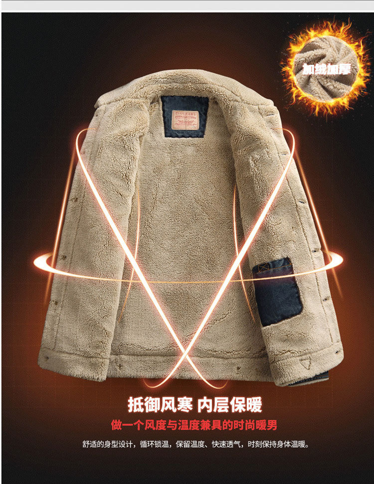 Trendy Lamb Wool Denim Jacket for Men, Winter Fleece-Lined, Thickened, Warm, Fur Collar, Cotton Coat, Slim Fit, Casual Workwear Jacket