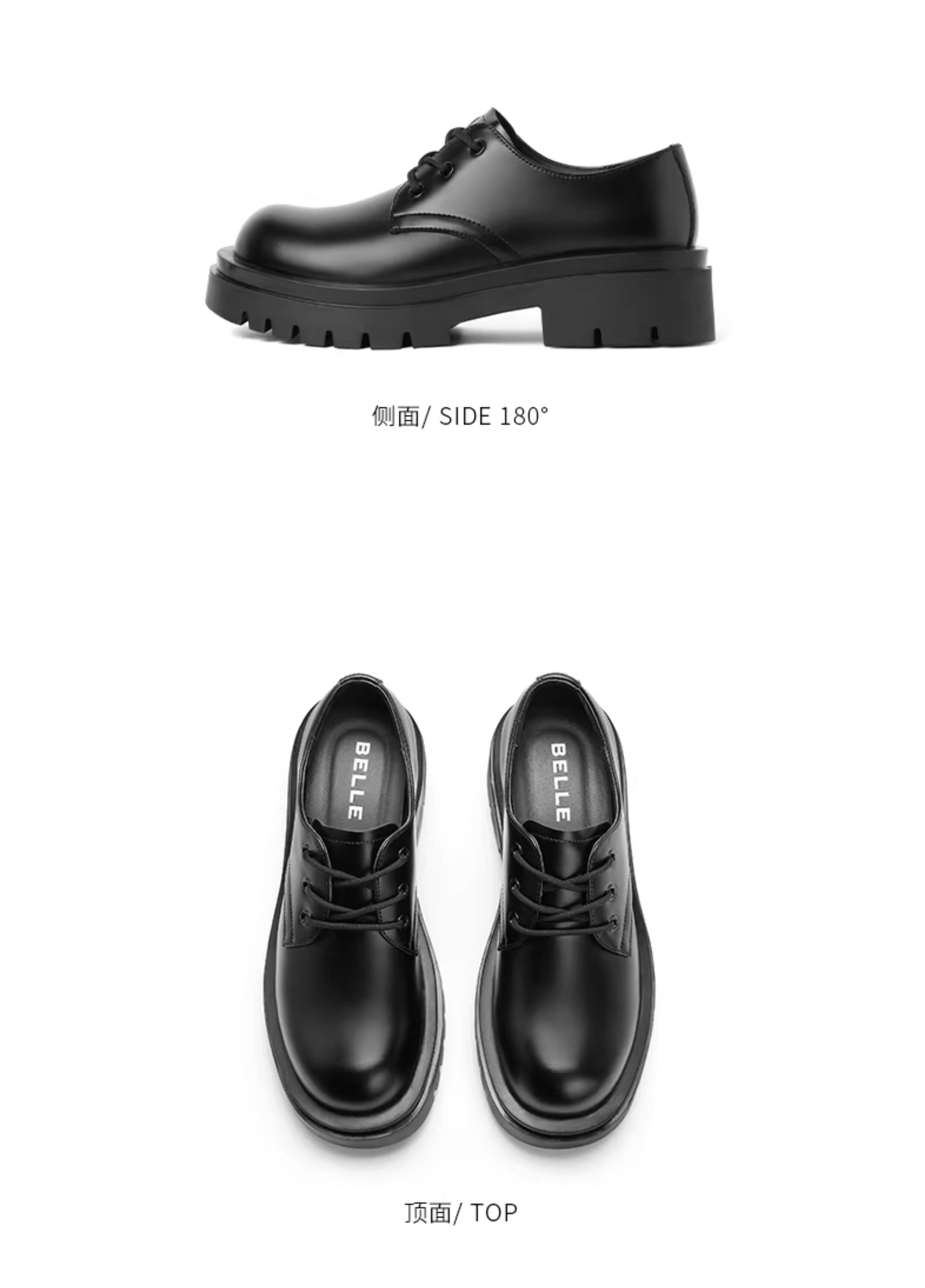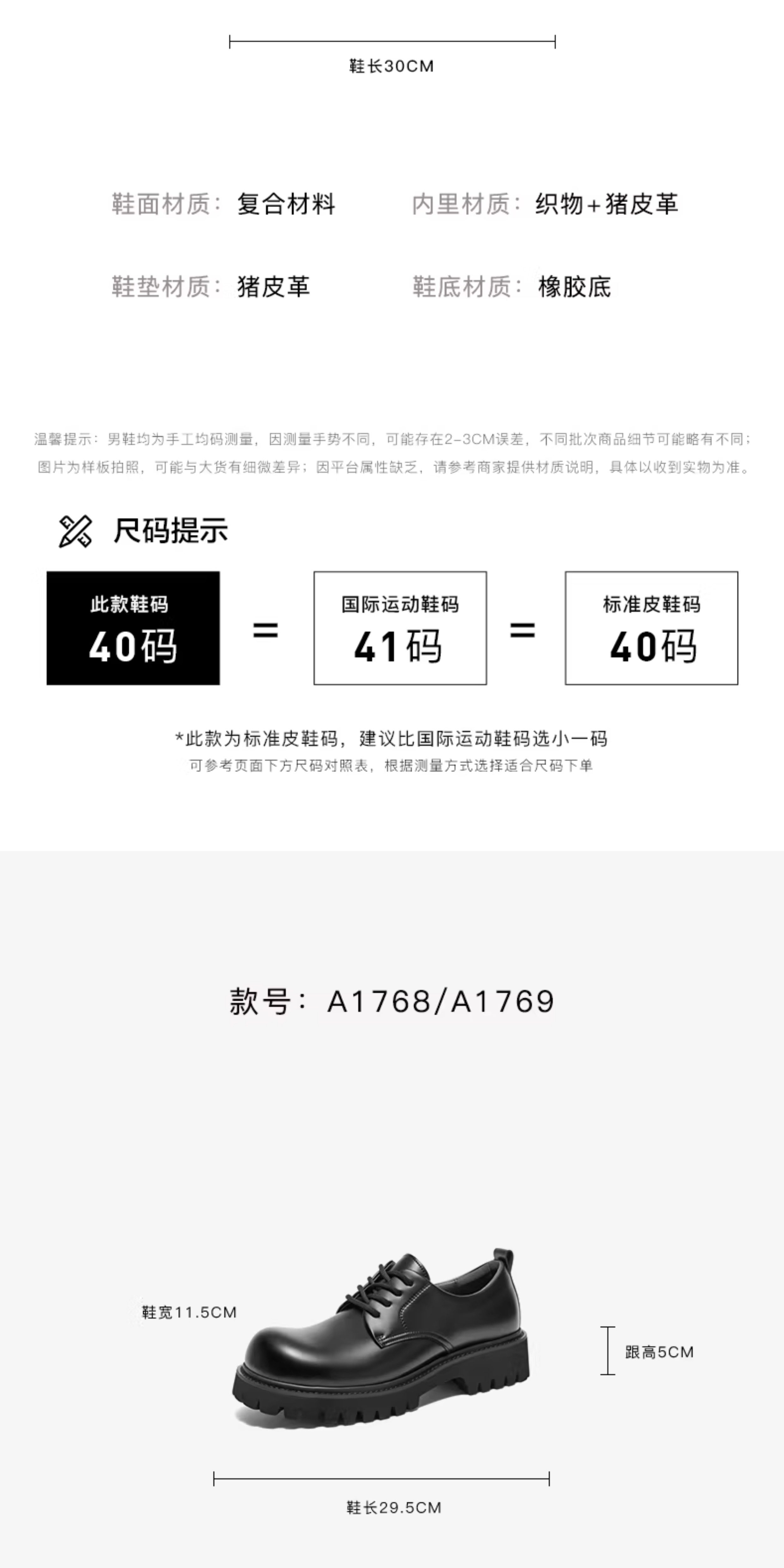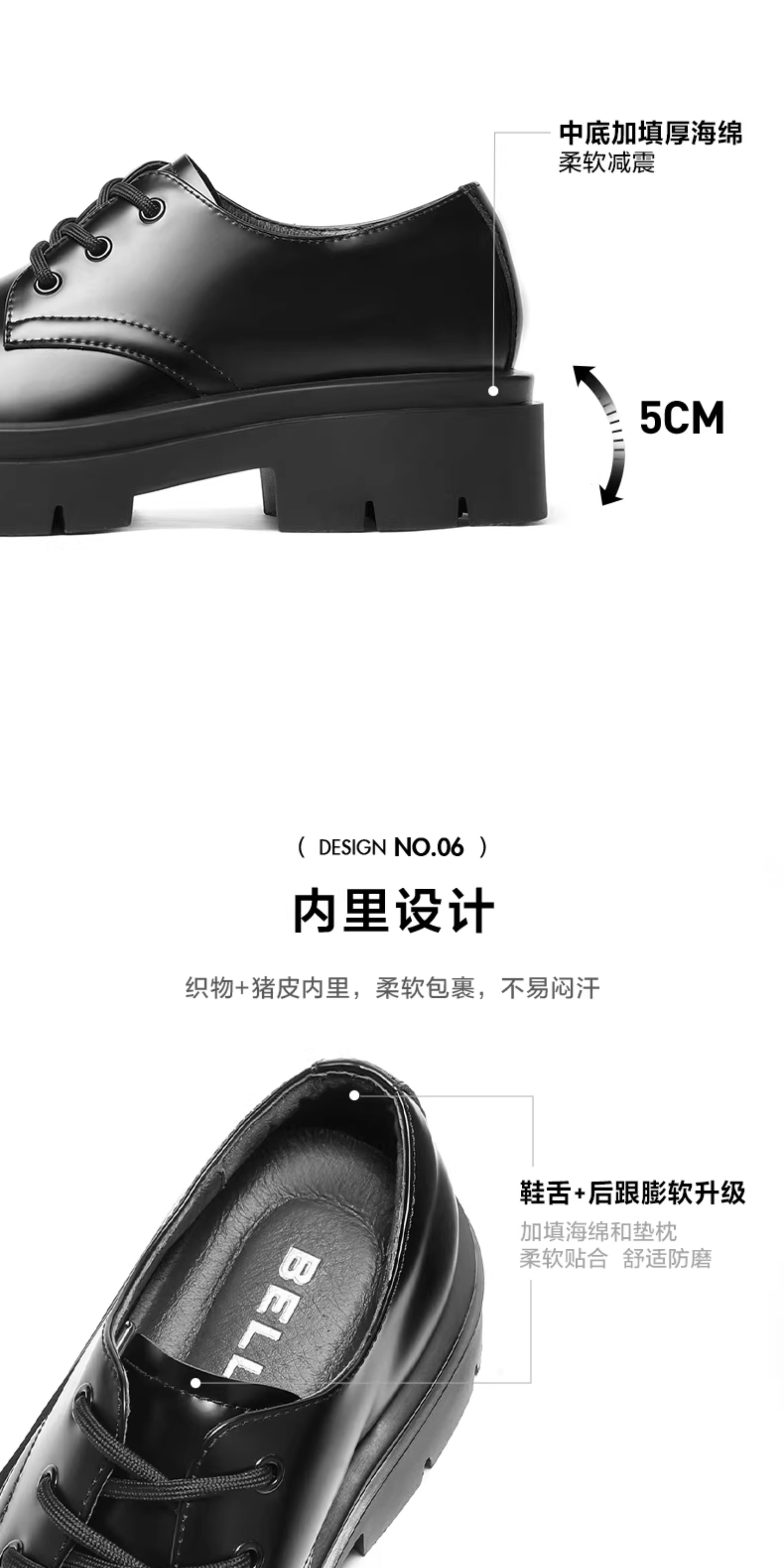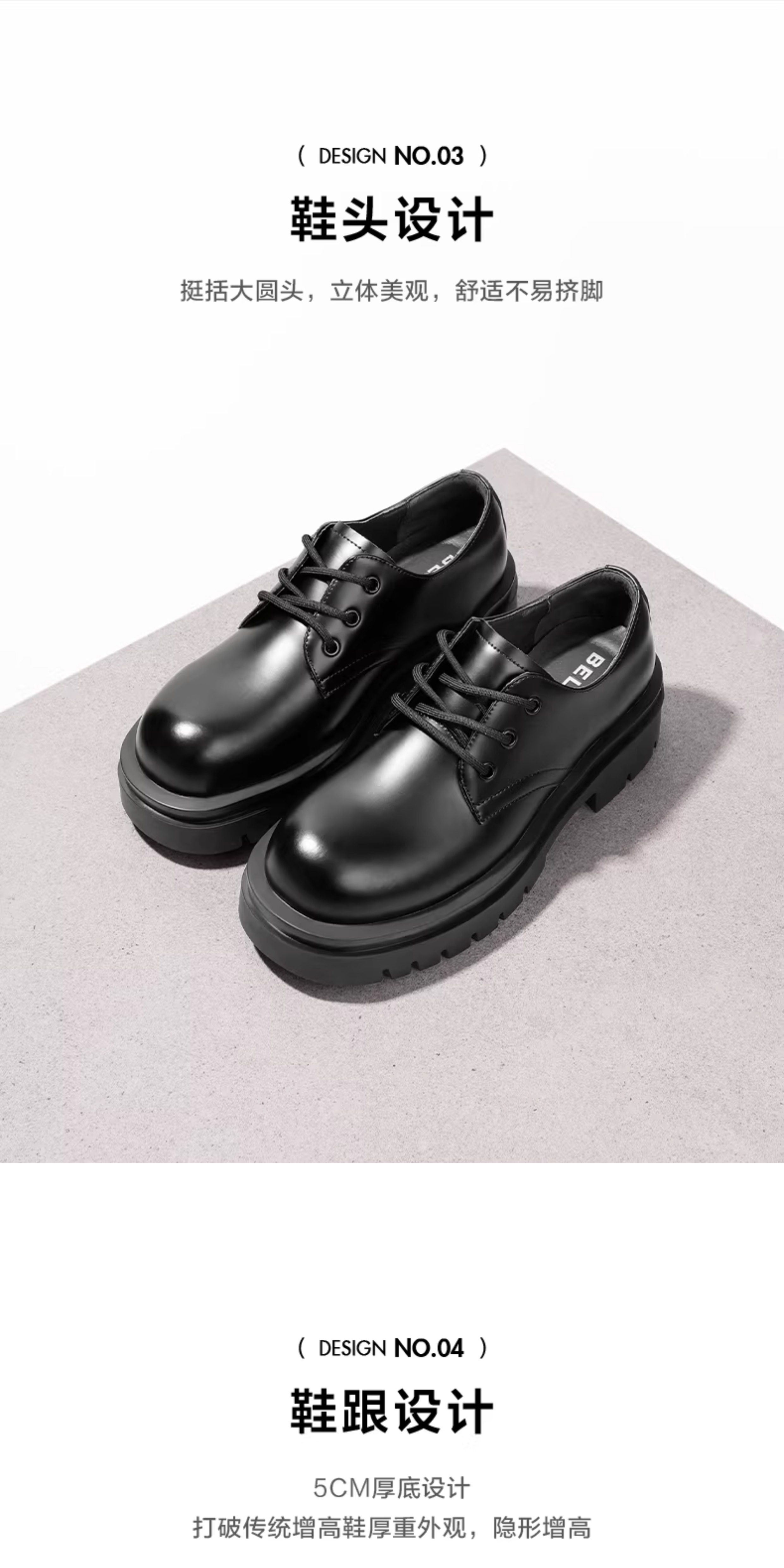 Zhang Linghe's Same Style Belle Men's Shoes, New Summer Thick-Soled Height-Increasing Leather Shoes, Large-Toe Casual Derby Shoes A1434Am4