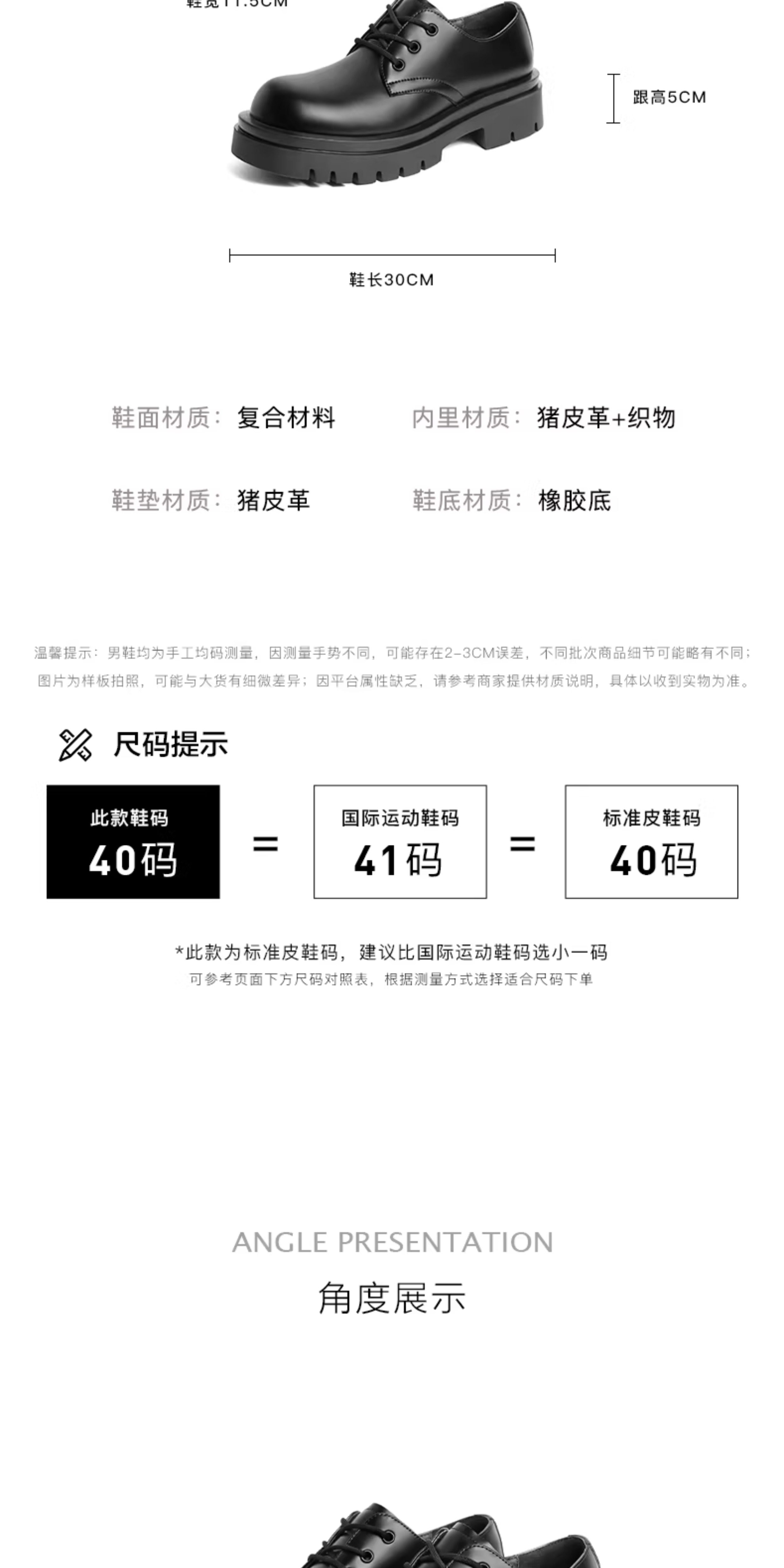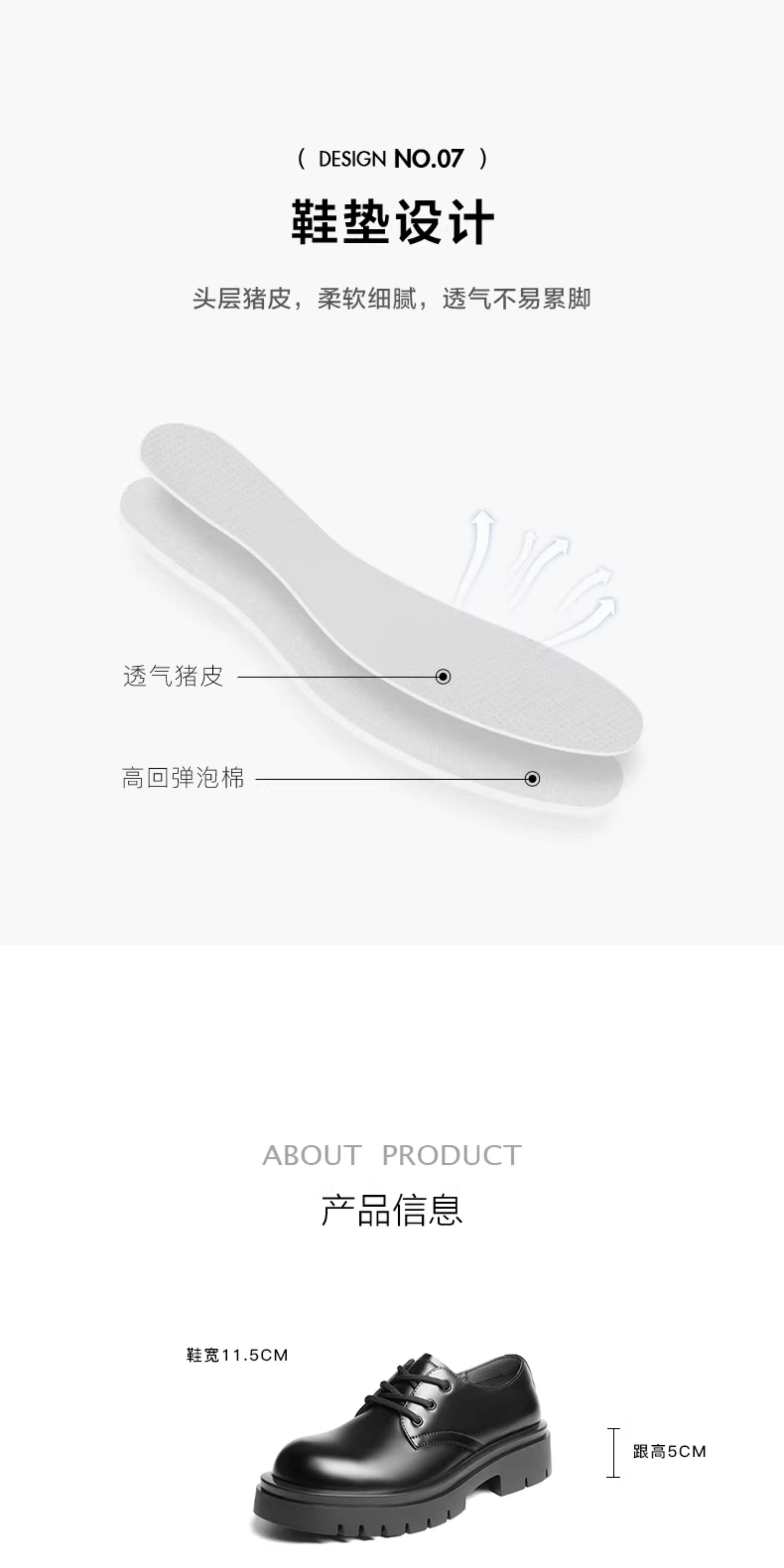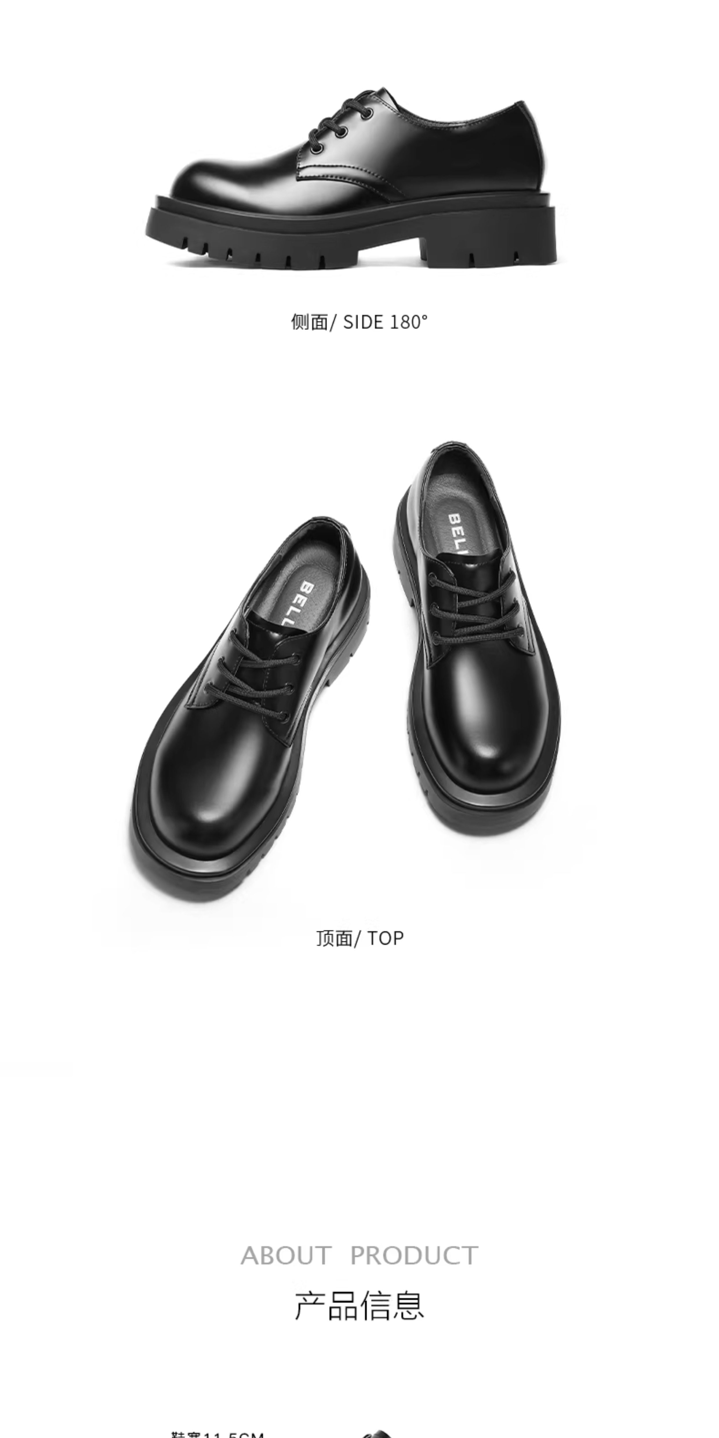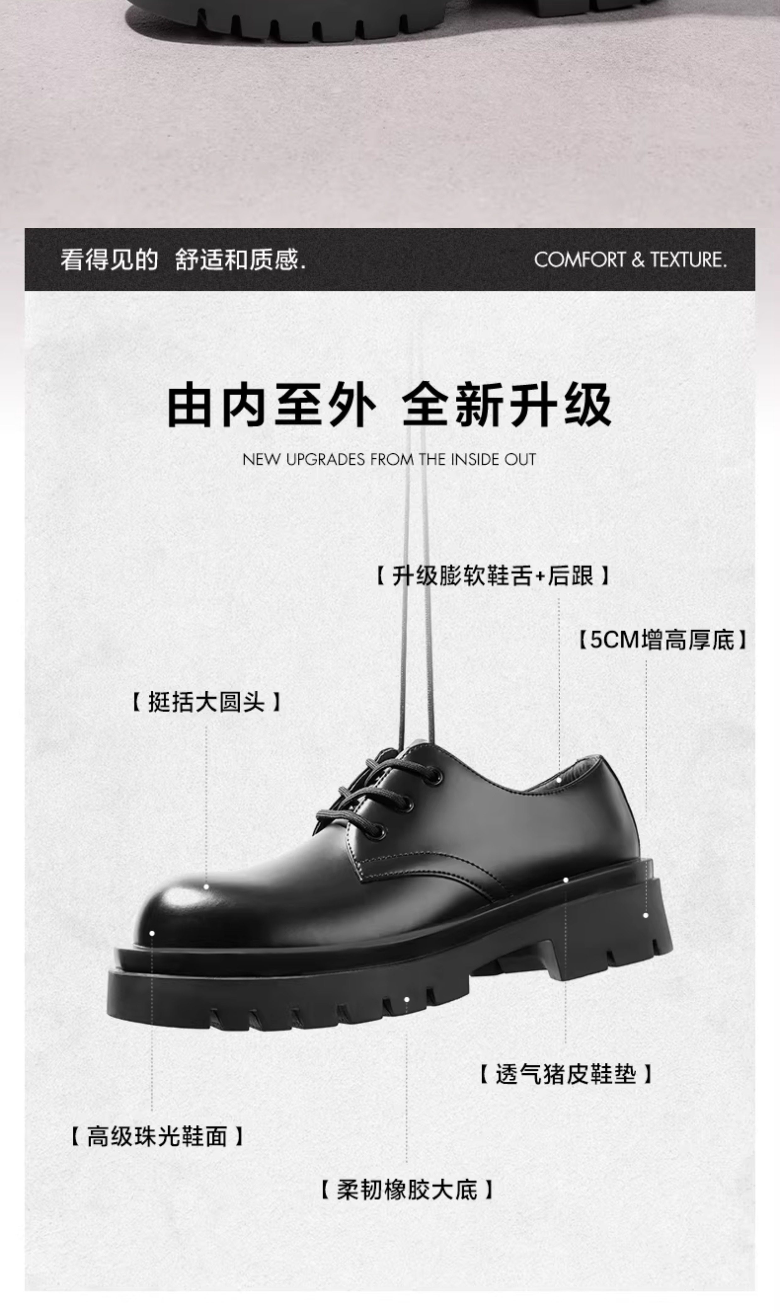 Zhang Linghe's Same Style Belle Men's Shoes, New Summer Thick-Soled Height-Increasing Leather Shoes, Large-Toe Casual Derby Shoes A1434Am4