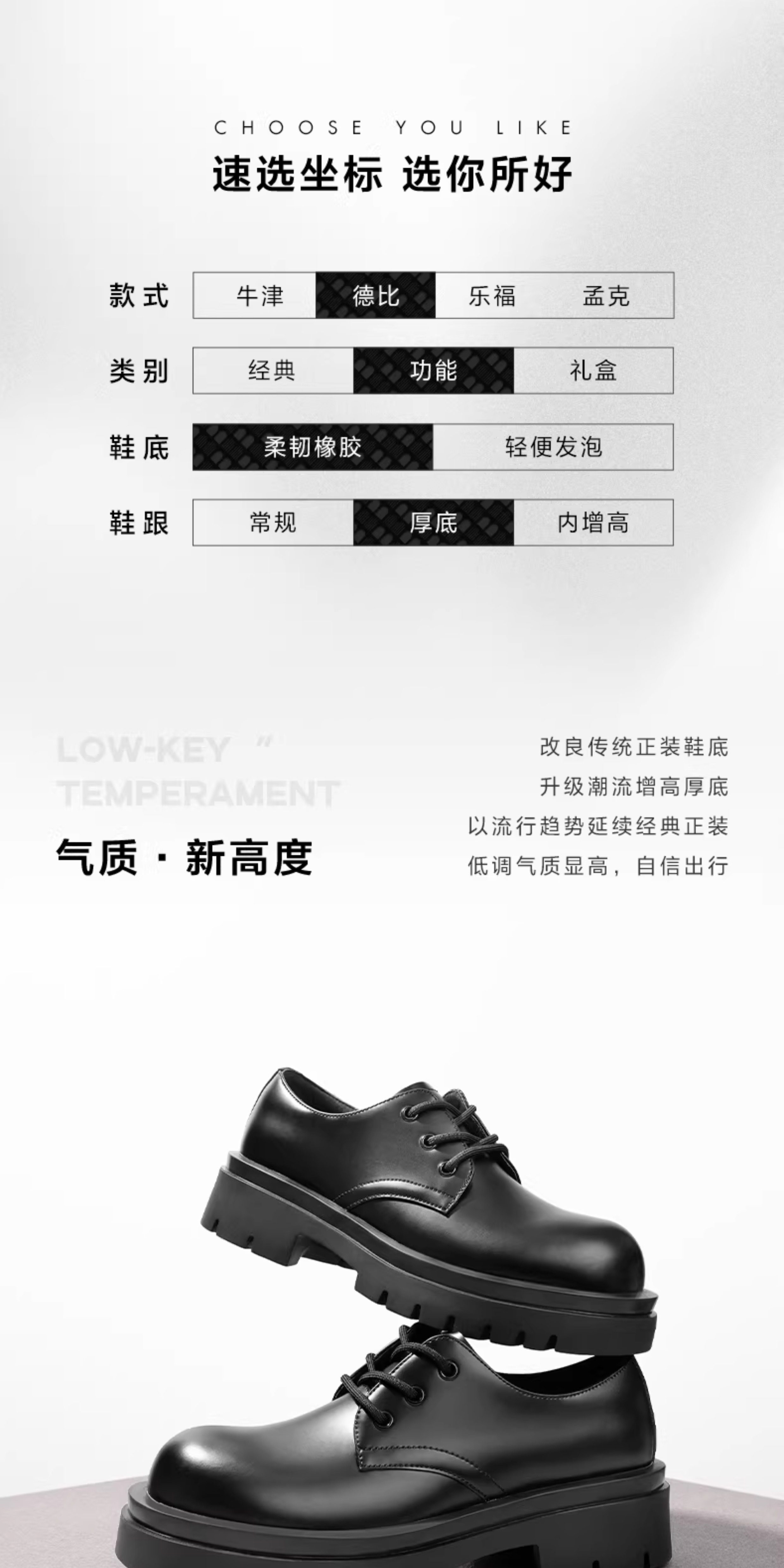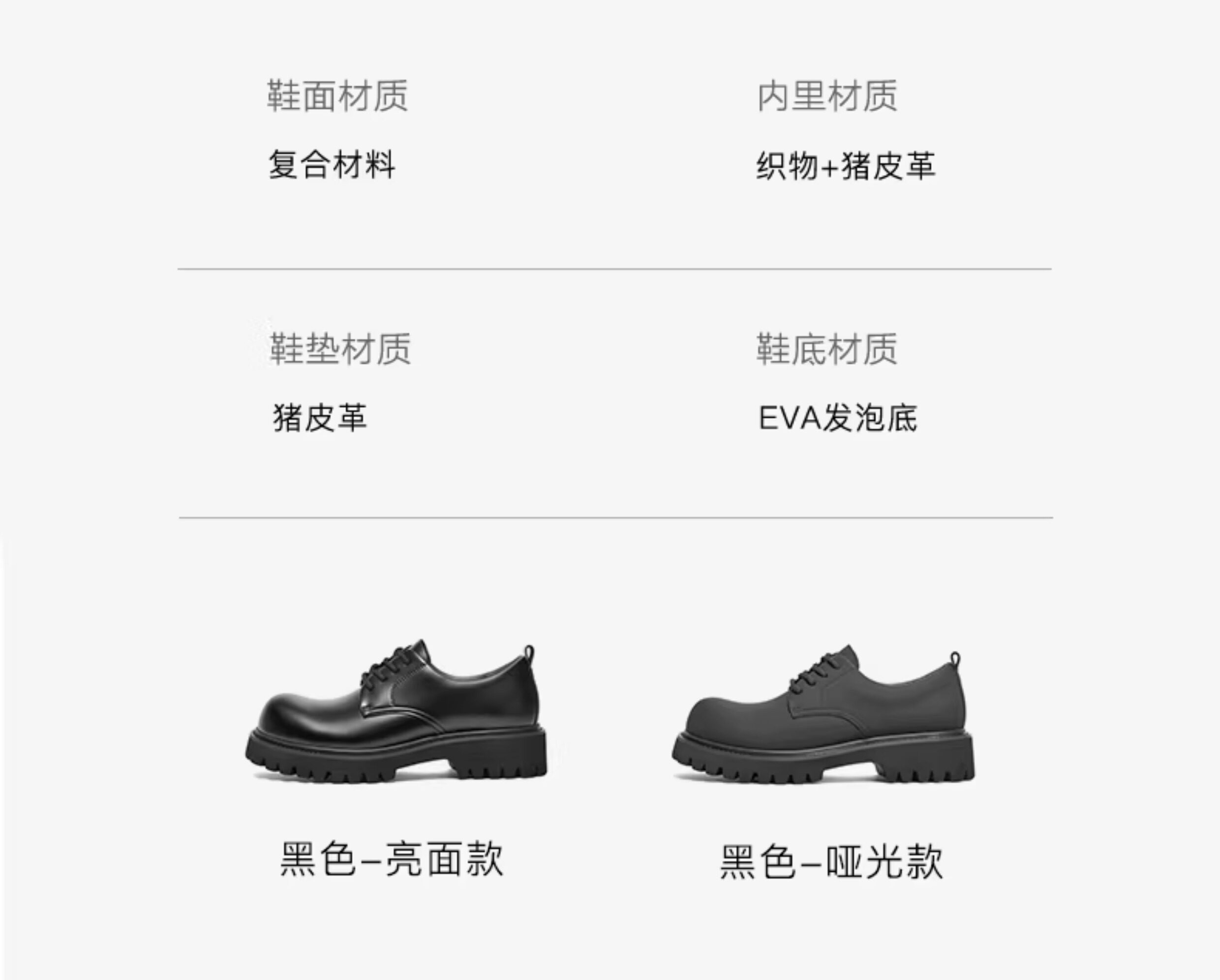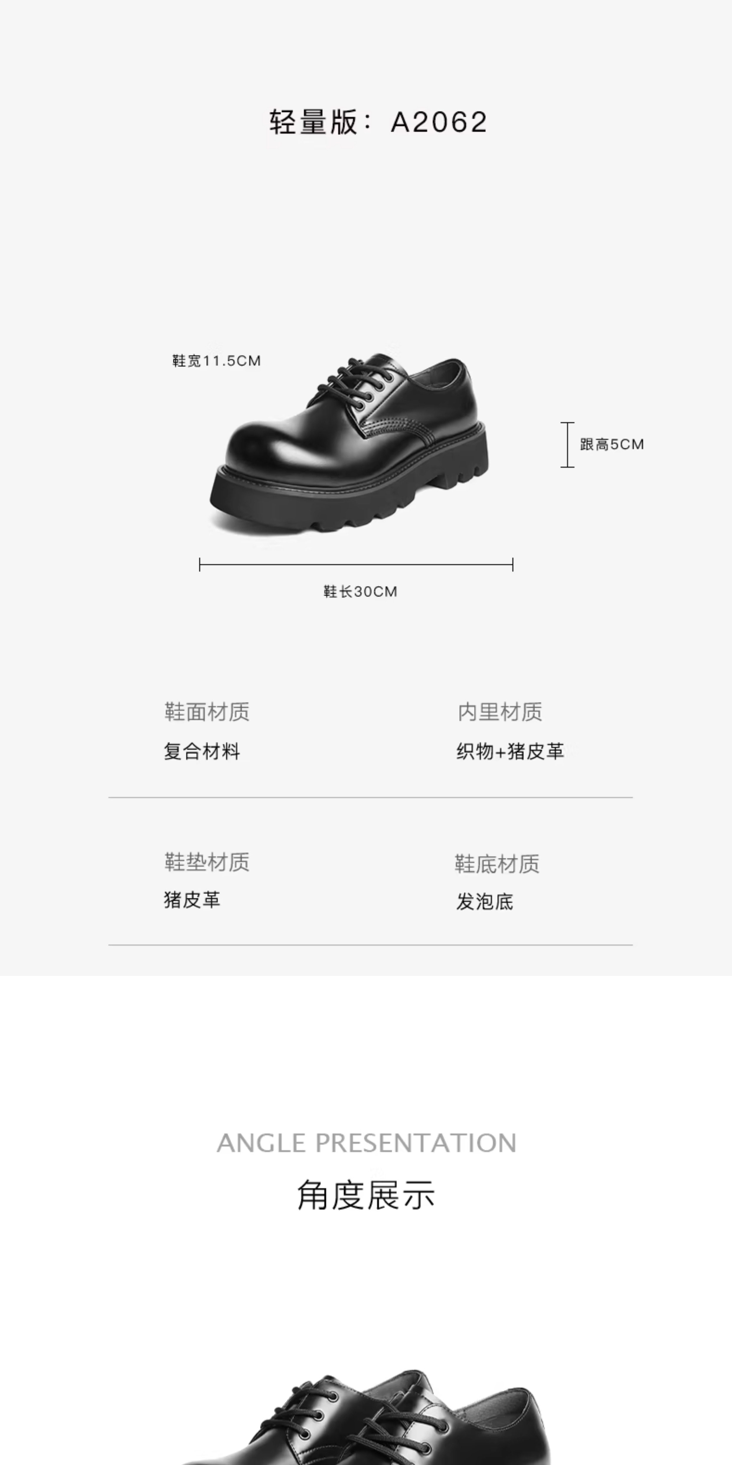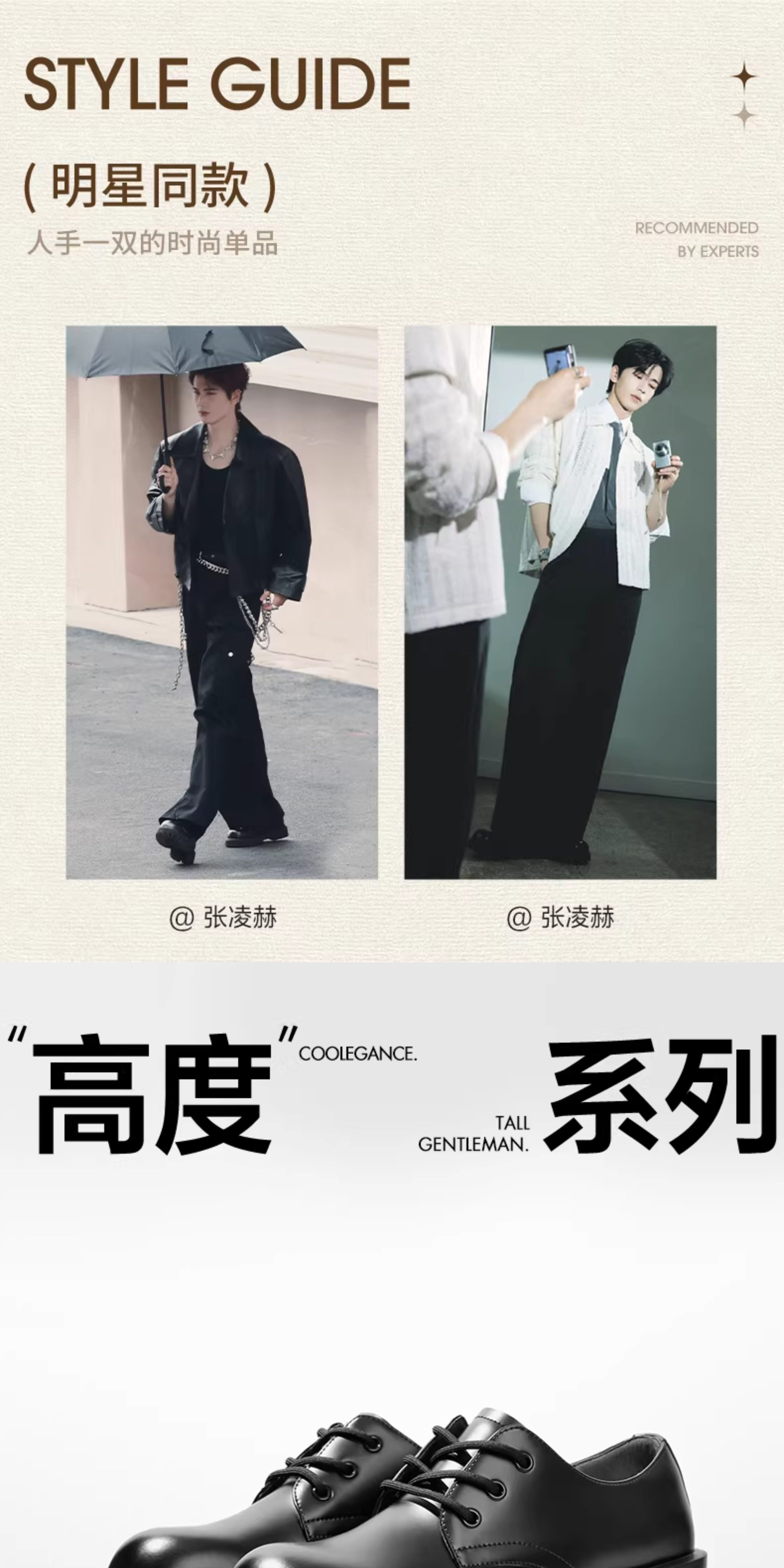 Zhang Linghe's Same Style Belle Men's Shoes, New Summer Thick-Soled Height-Increasing Leather Shoes, Large-Toe Casual Derby Shoes A1434Am4