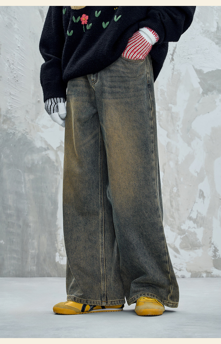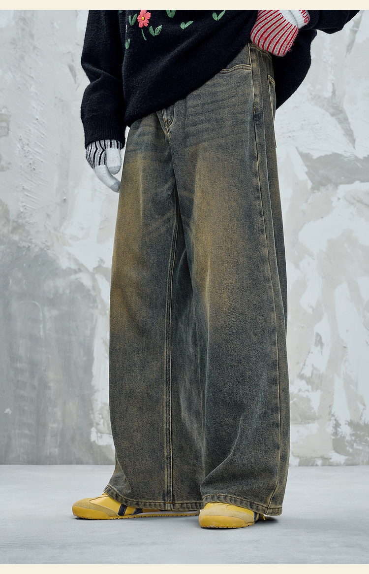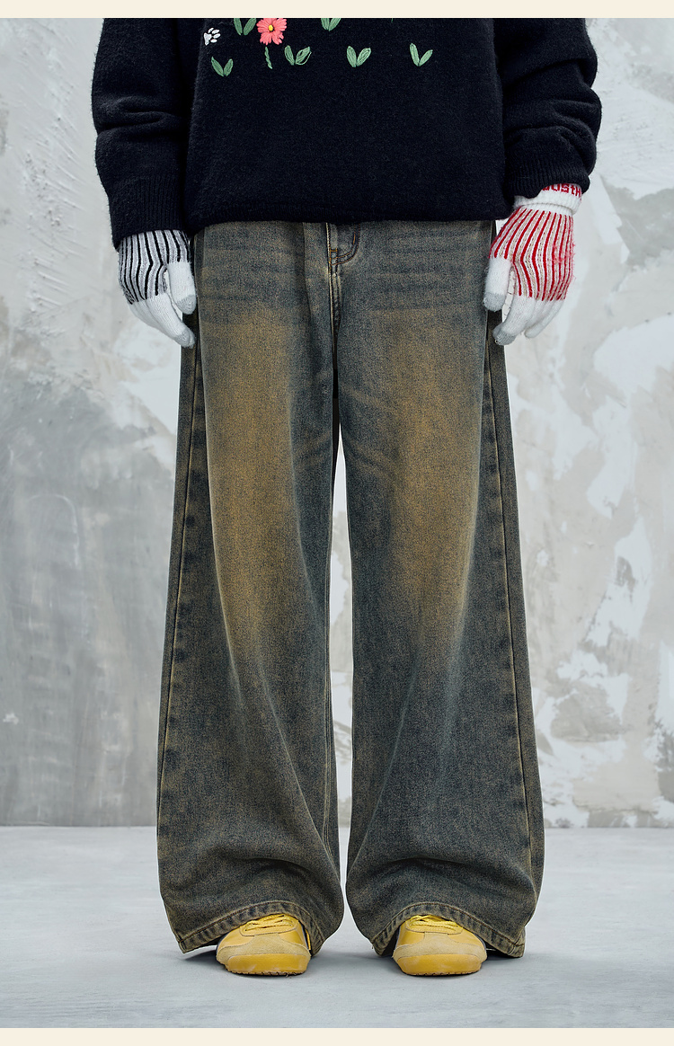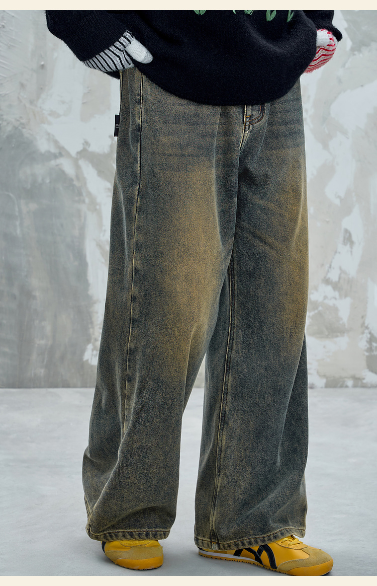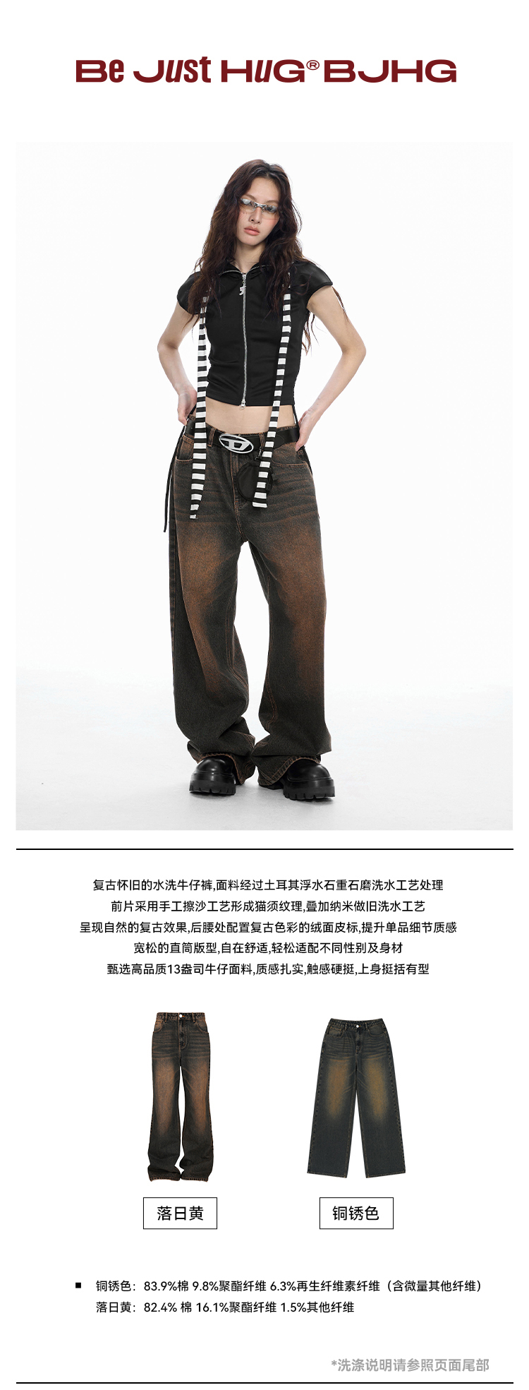 Bjhg Reckless Vintage Washed Denim Jeans for Men and Women, Autumn Straight-Leg Casual Jeans