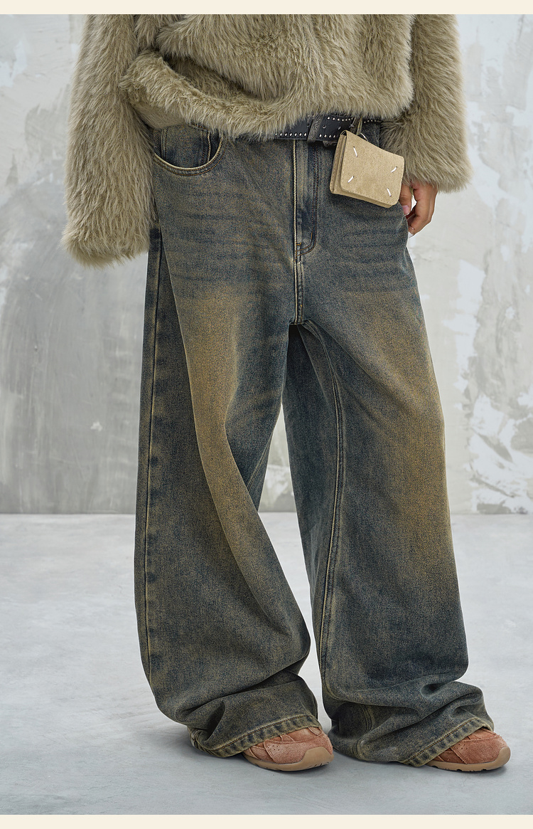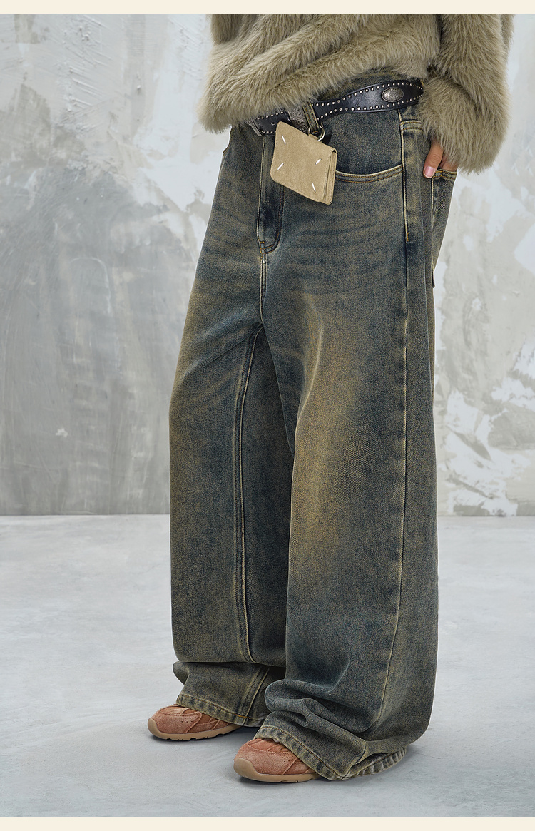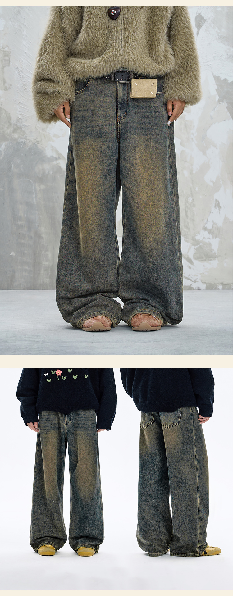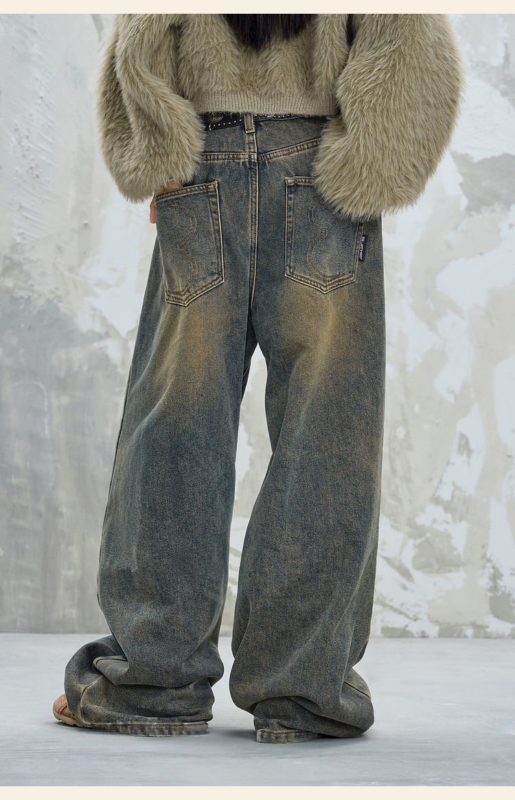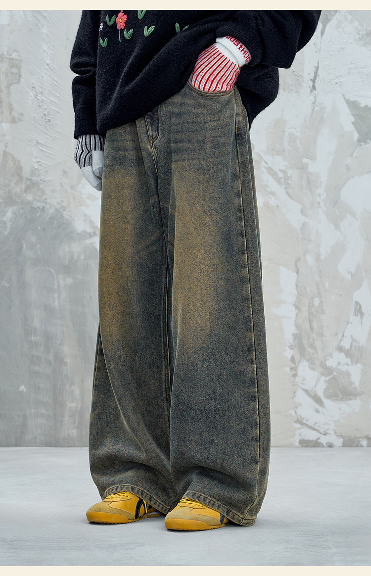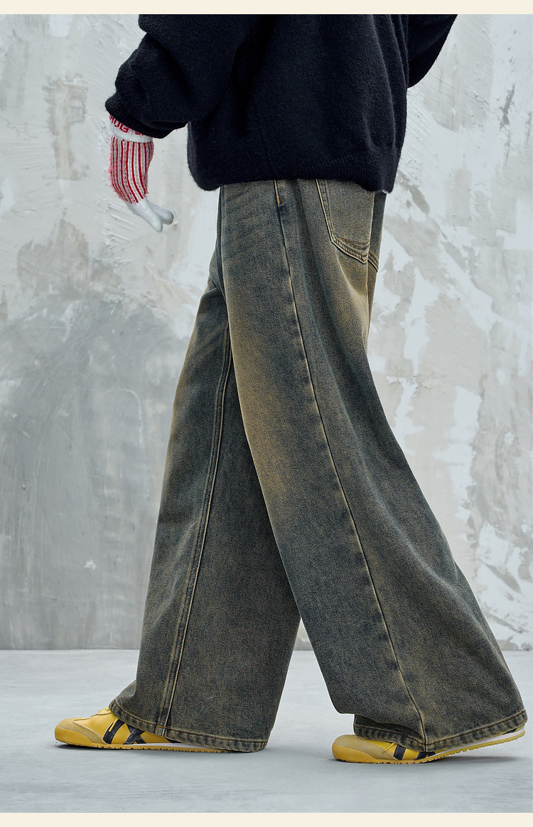 Bjhg Reckless Vintage Washed Denim Jeans for Men and Women, Autumn Straight-Leg Casual Jeans