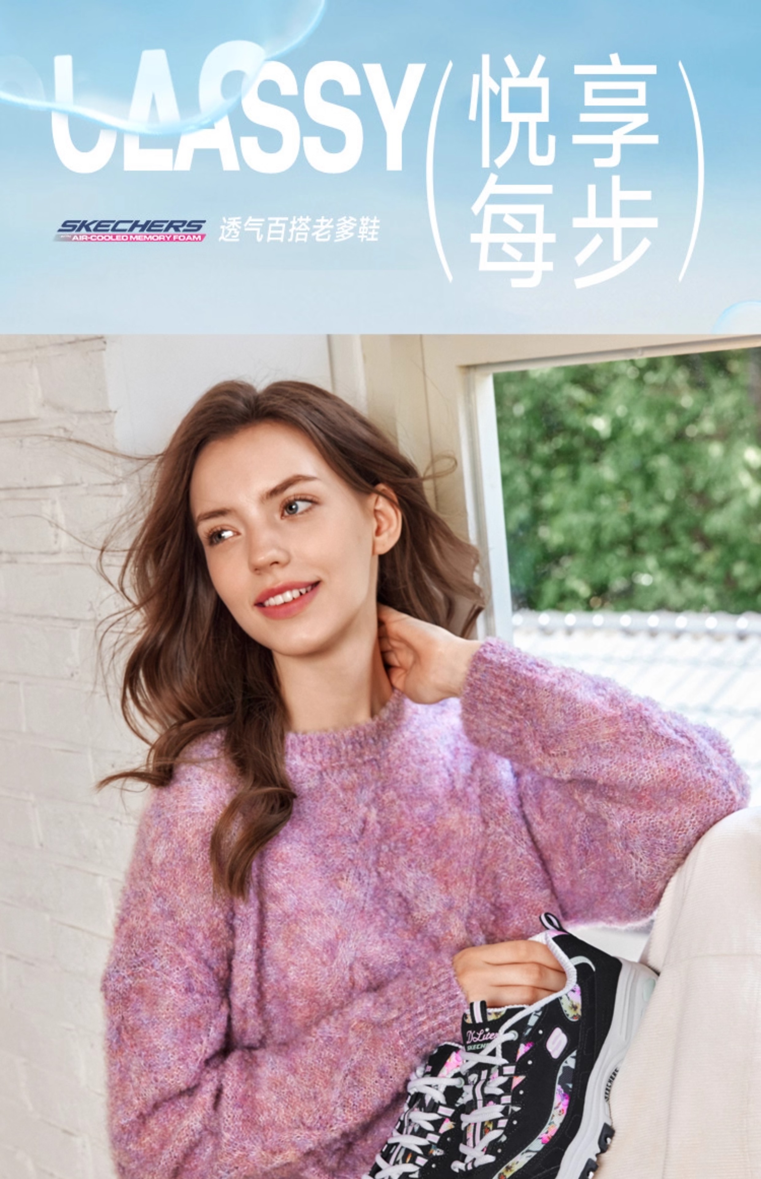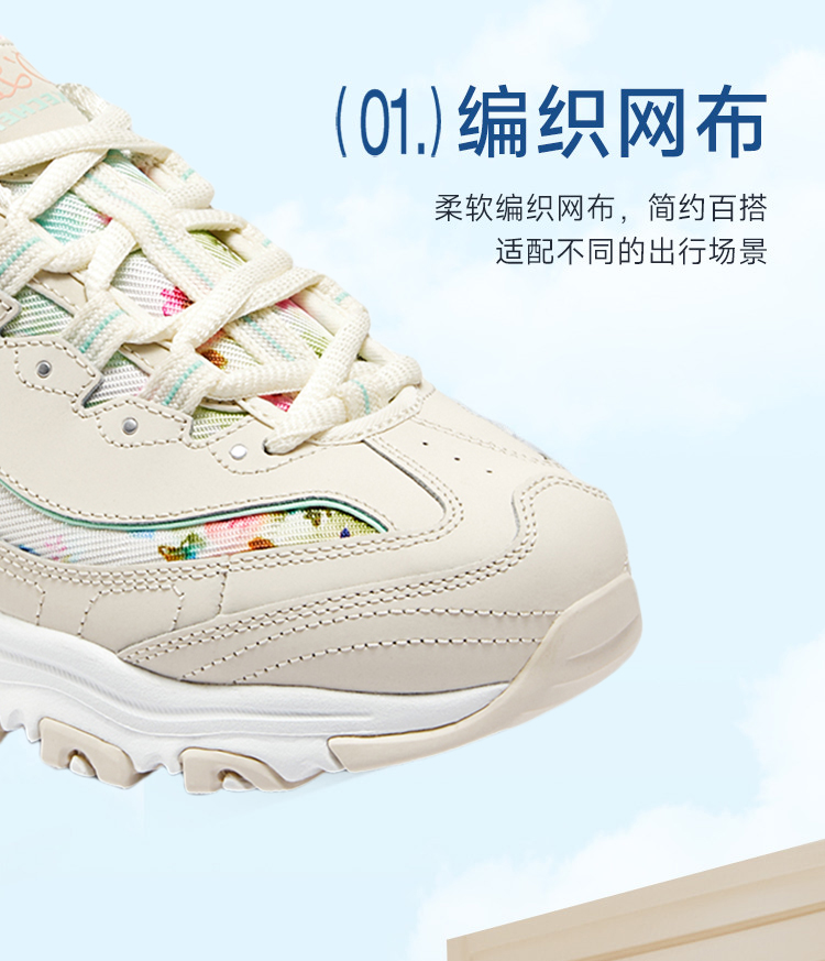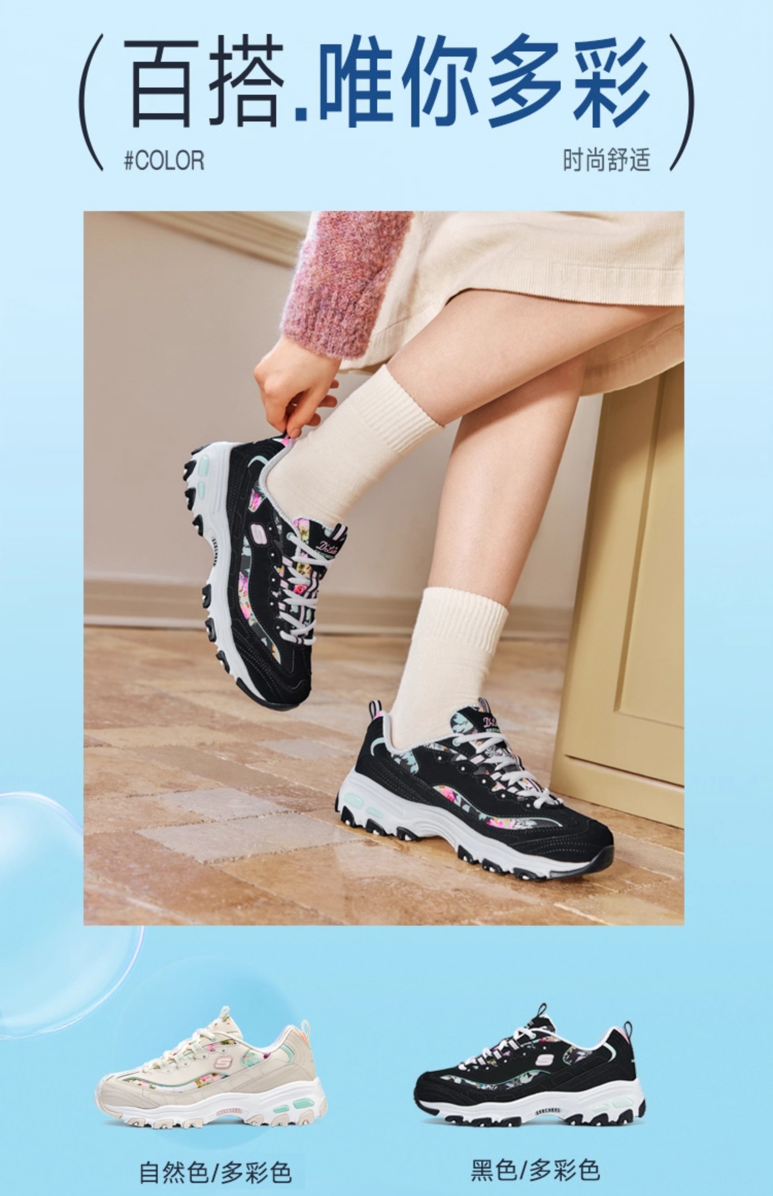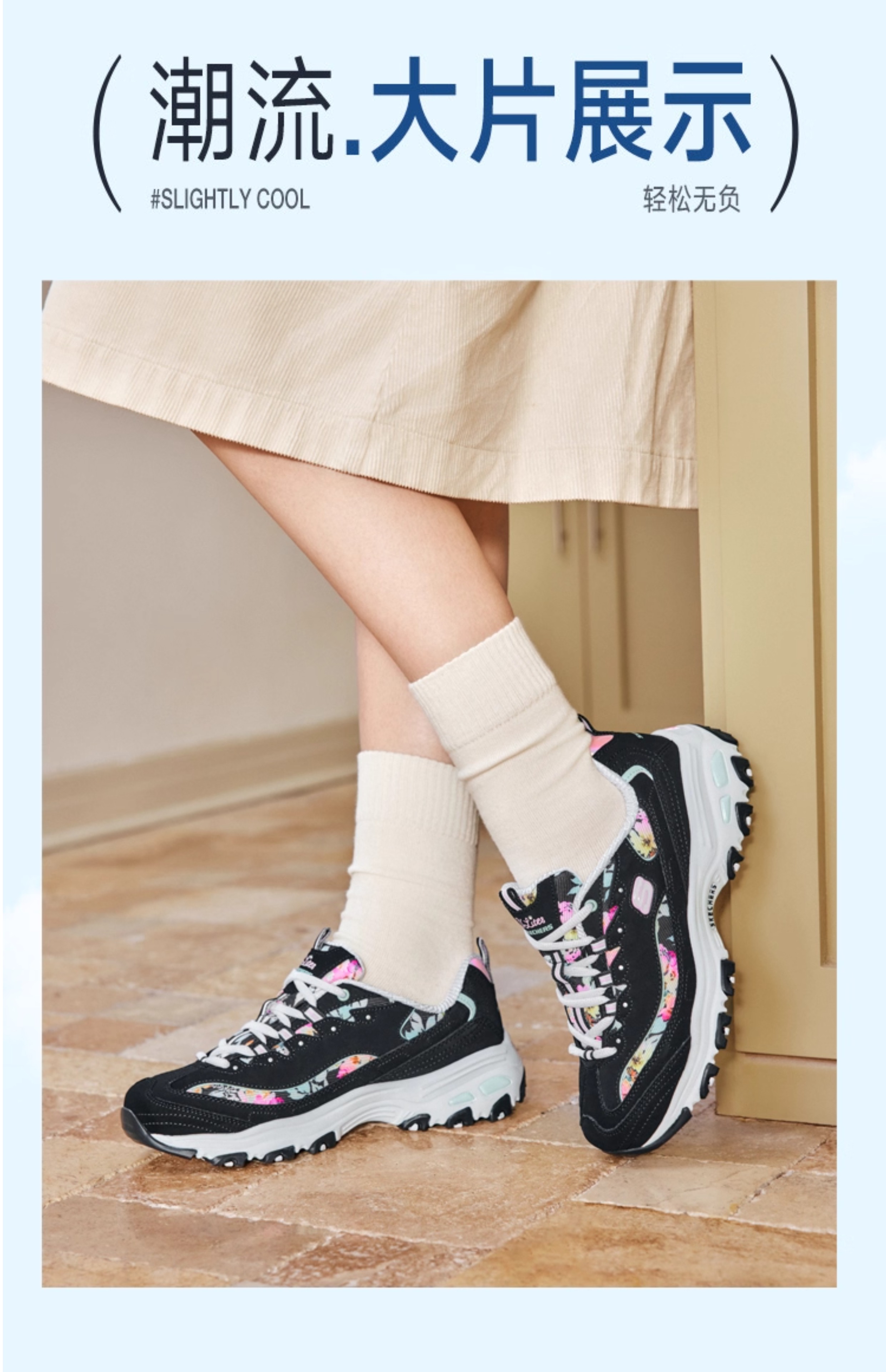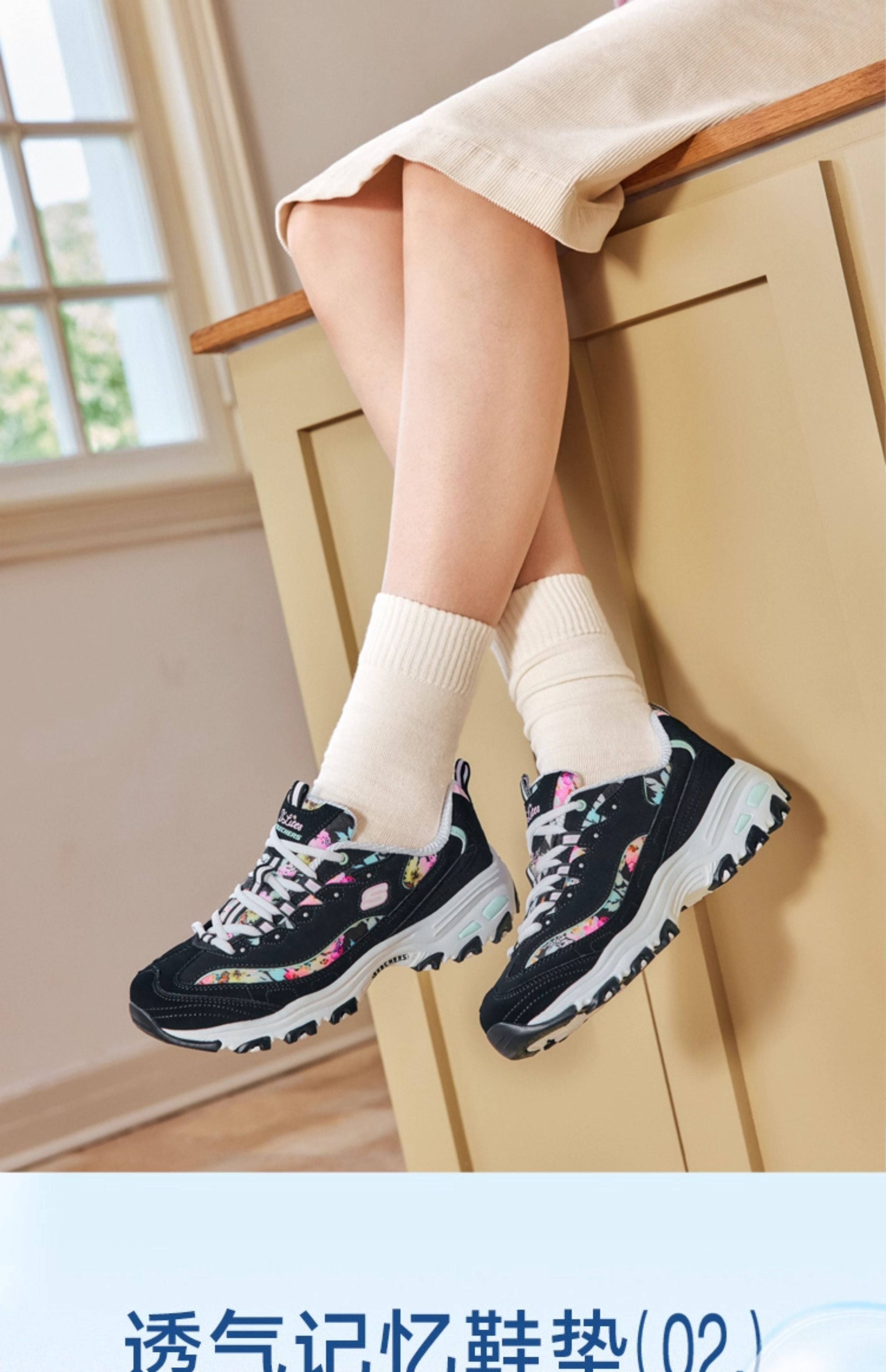Skechers Official outlets Women's Torre Shoes Embroider Print Black and White Classic Heightening Sports Casual Shoes Women