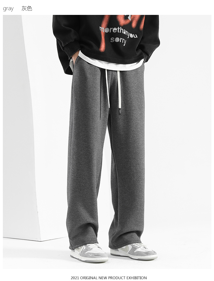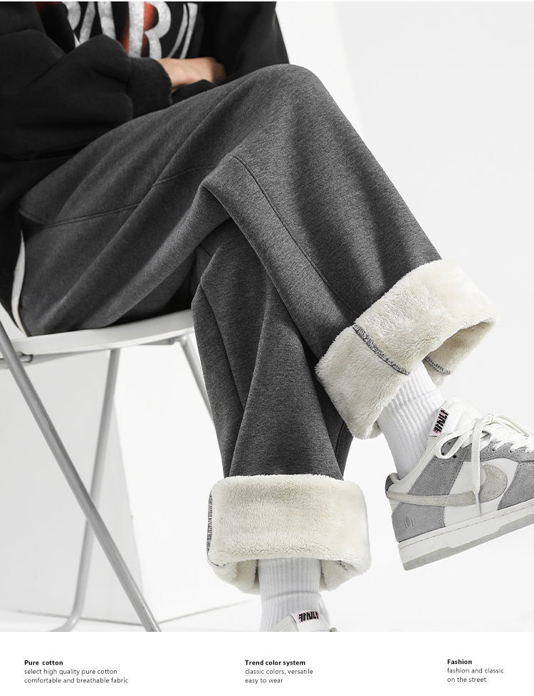 Men's Winter Thickened Lamb Fleece Straight-Leg Sweatpants, Fleece-Lined Sports Pants, Loose Casual Long Pants