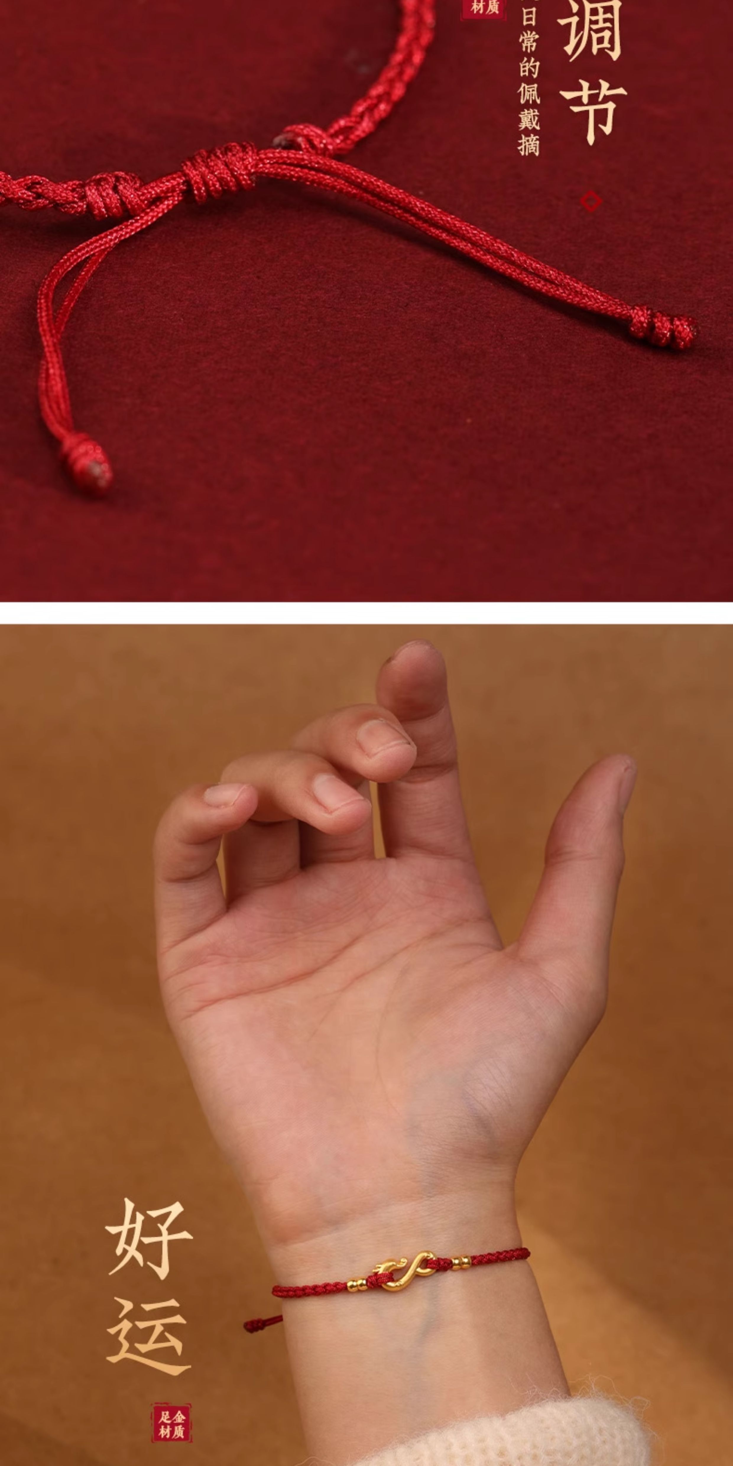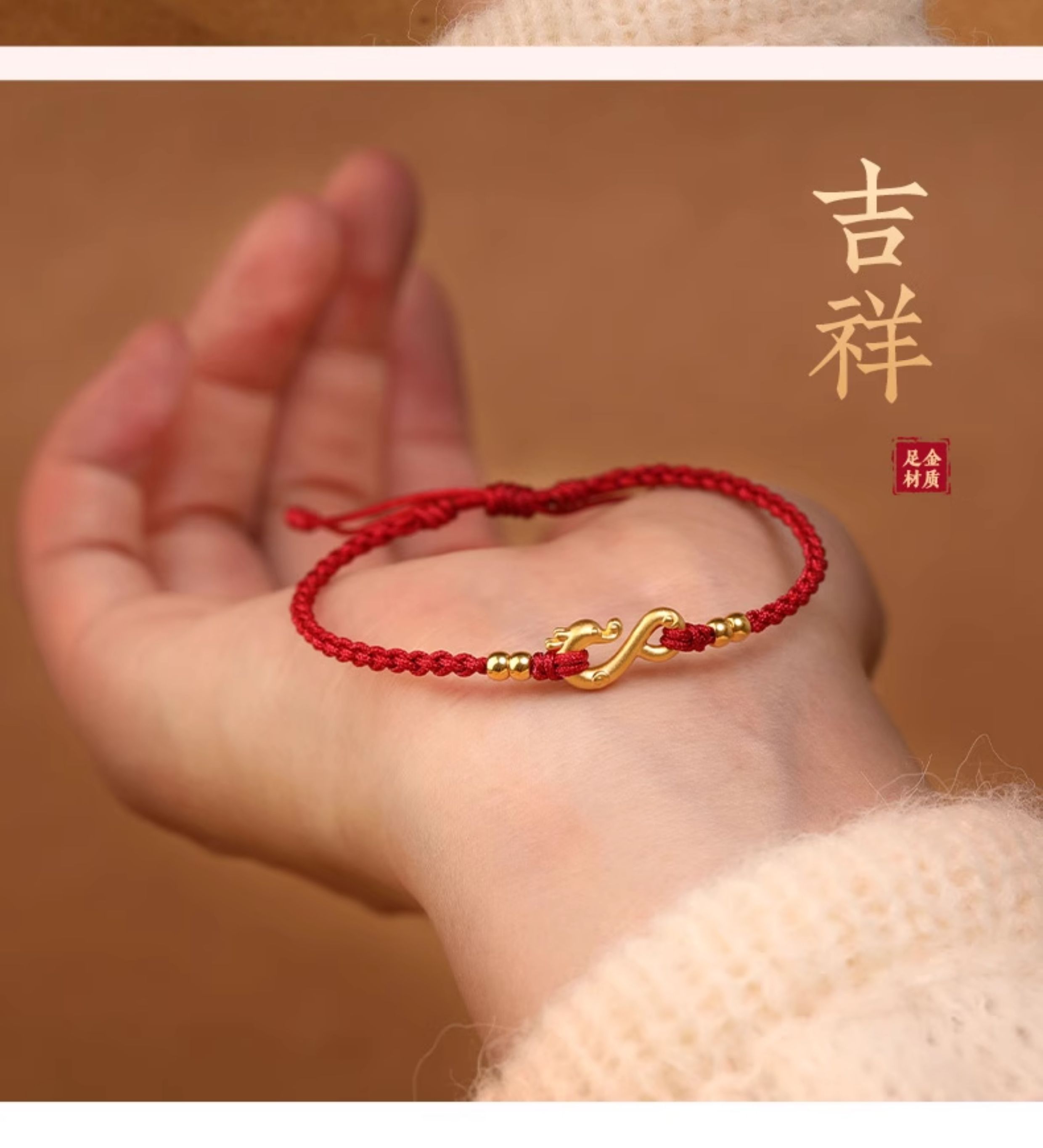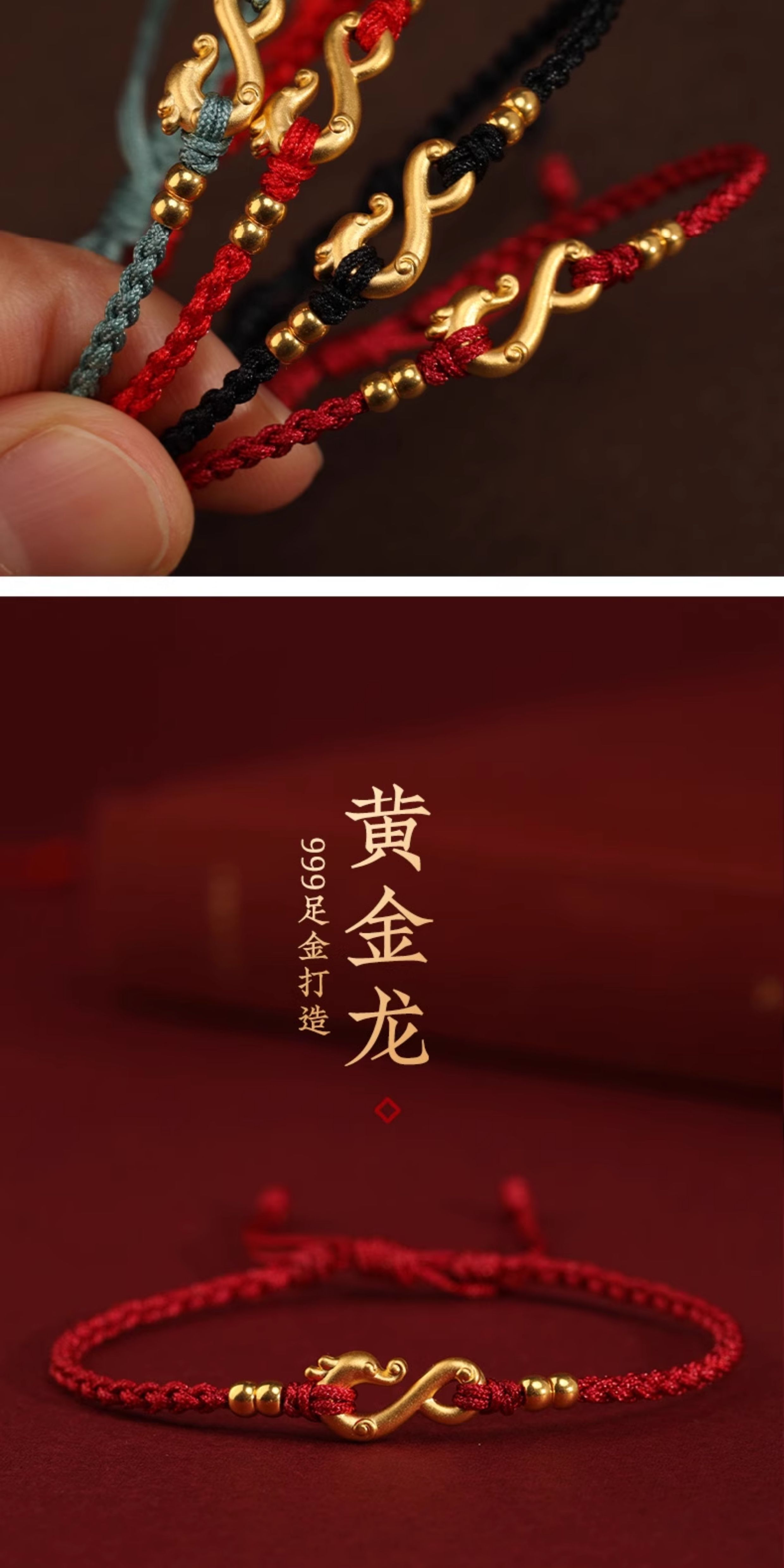 999 Pure Gold Dragon Hook Red String Bracelet 24K Gold Woven Fortune Bead Couple Small Bracelet for Men and Women in Their Zodiac Year