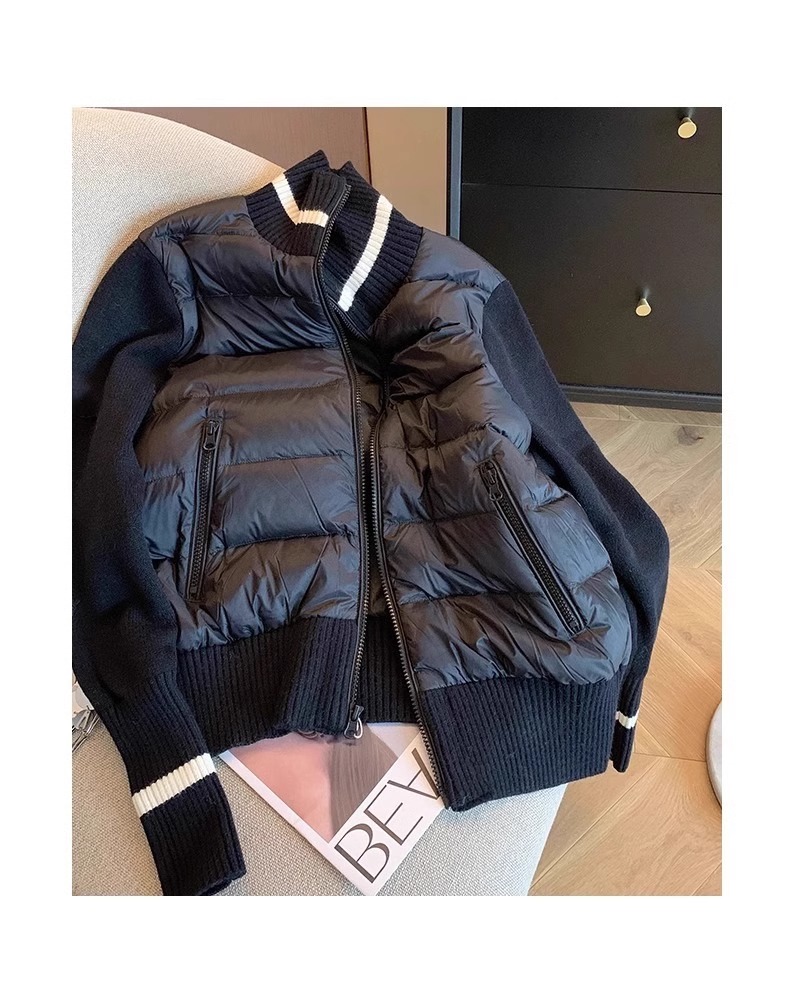 European Style Designer Knitted Patchwork Stand Collar Cotton Jacket for Men and Women, Autumn and Winter Trendy Retro Loose Warm Cotton Coat