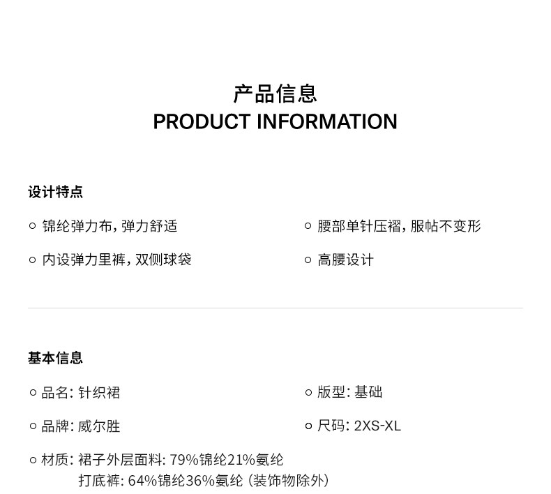 Wilson Official Summer Women's Pleated Classic Sports Tennis Elastic Skirt with Shorts