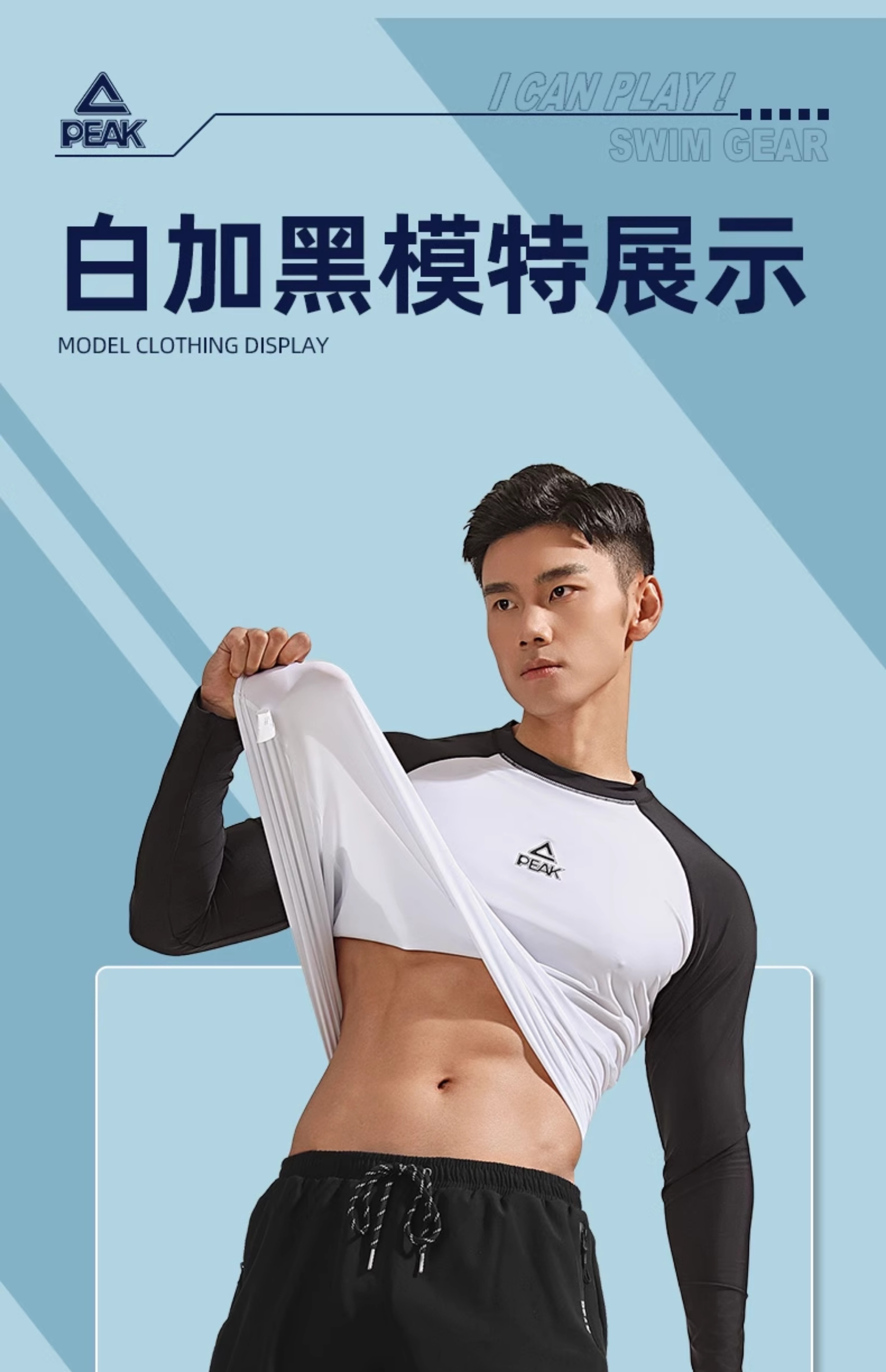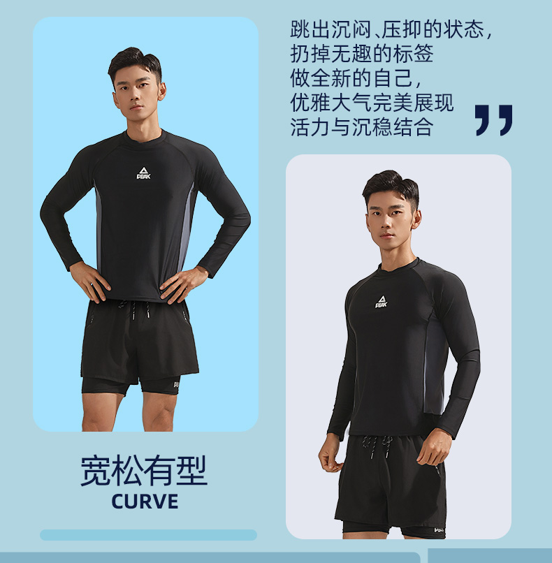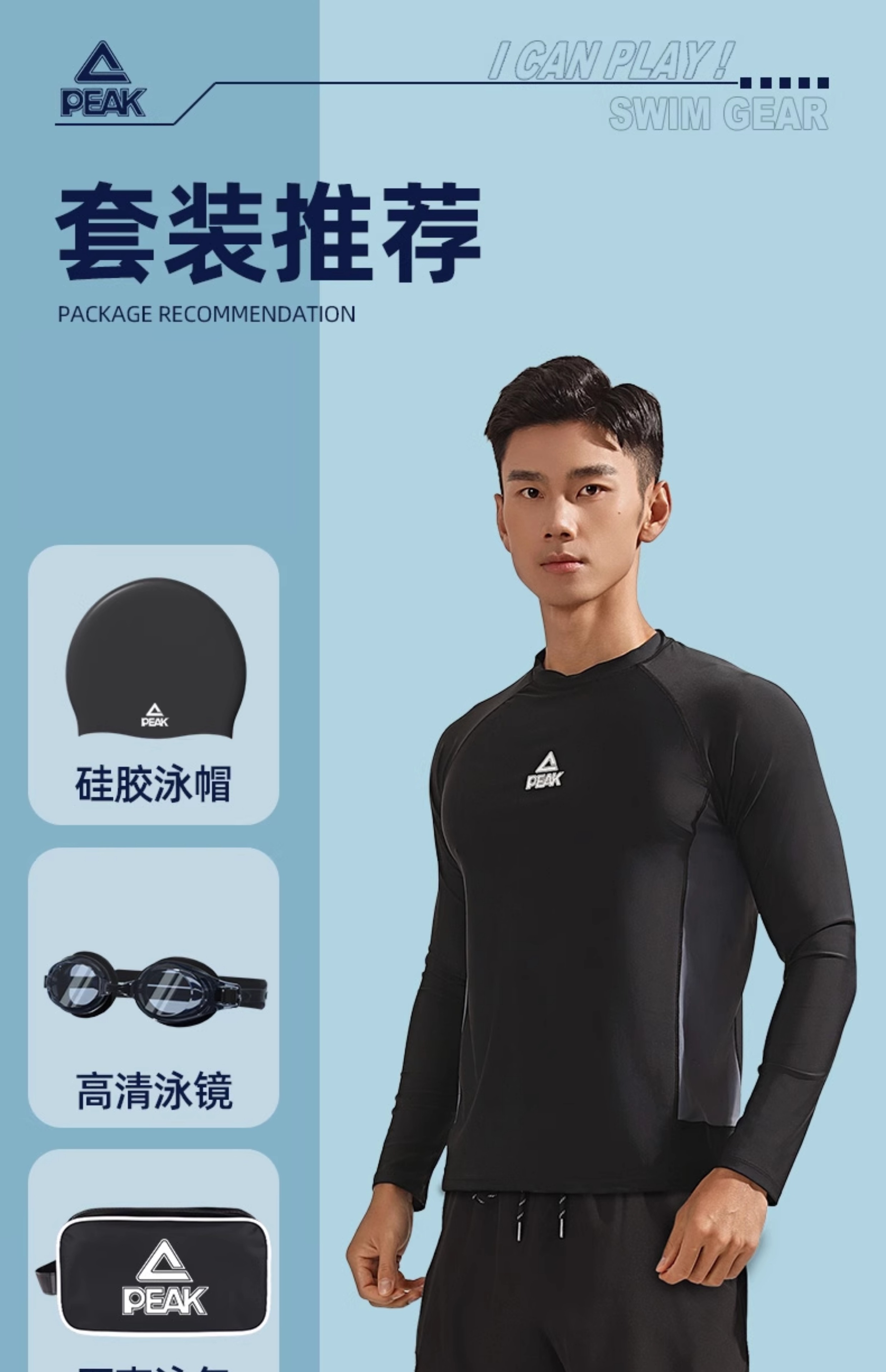 Peak Brand Men's Swimsuit Set, Long-Sleeved 2025 New Model, Anti-Embarrassment Swimming Trunks, Equipment Top, Hot Spring Men's Swimwear
