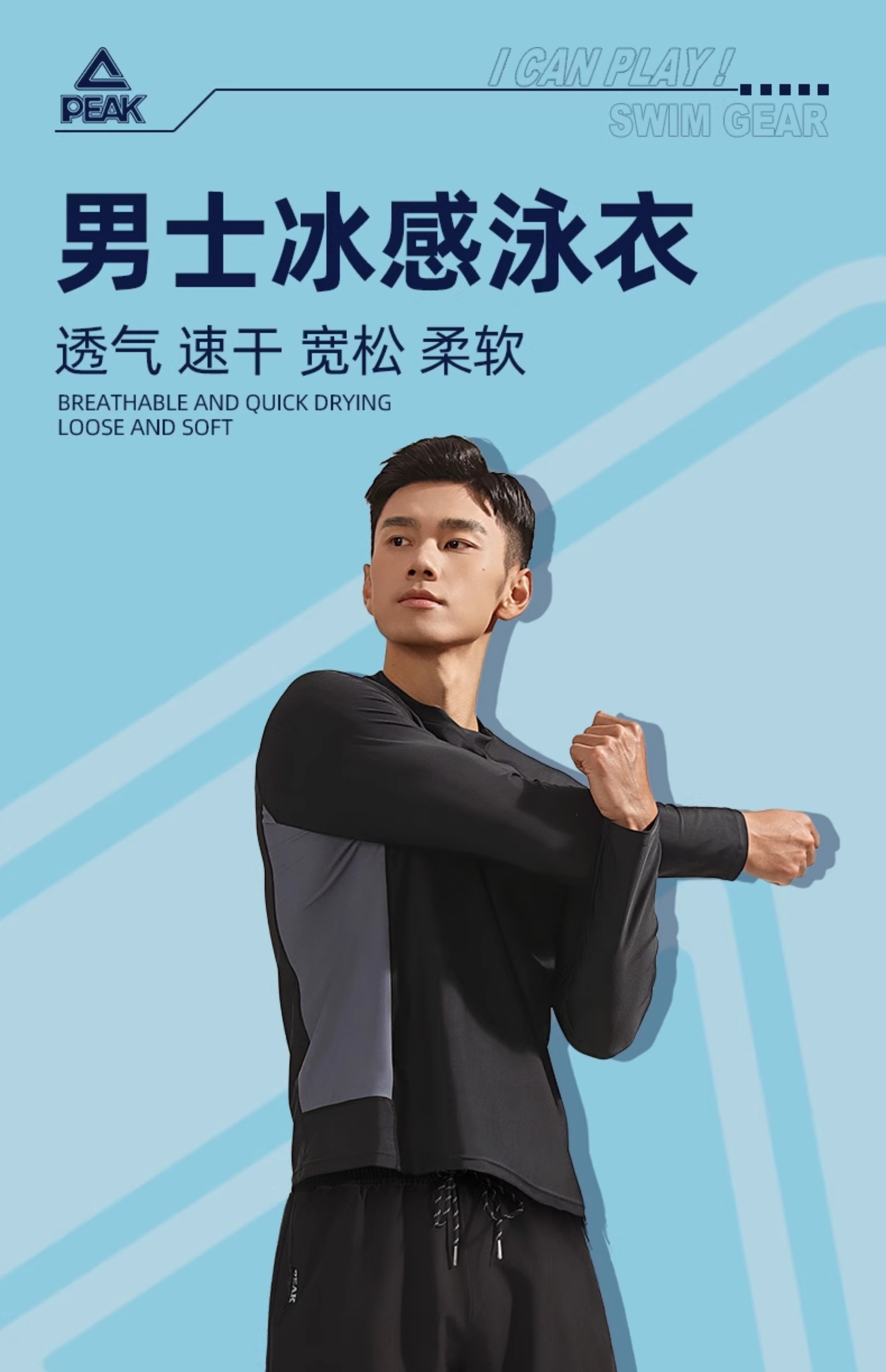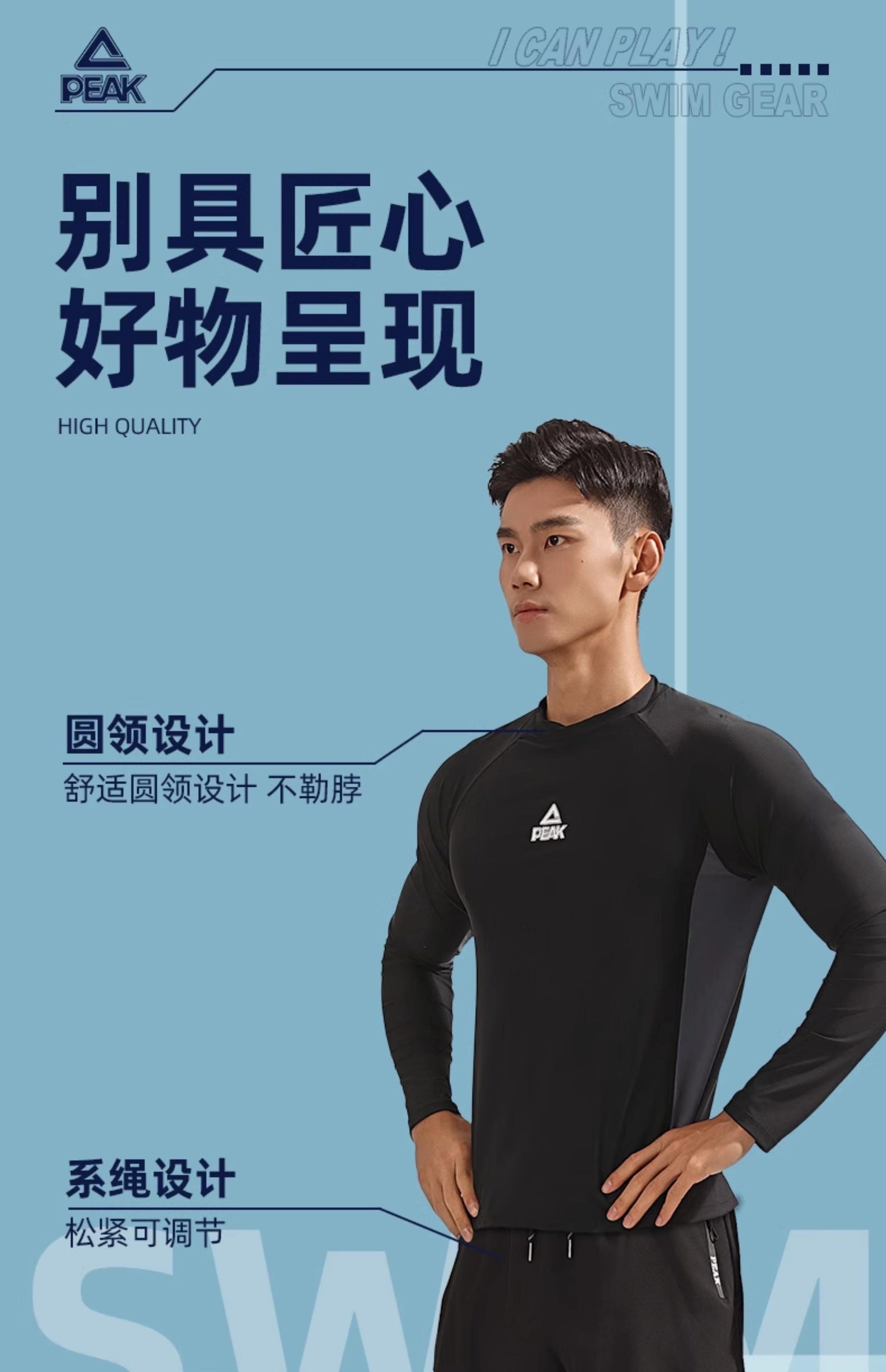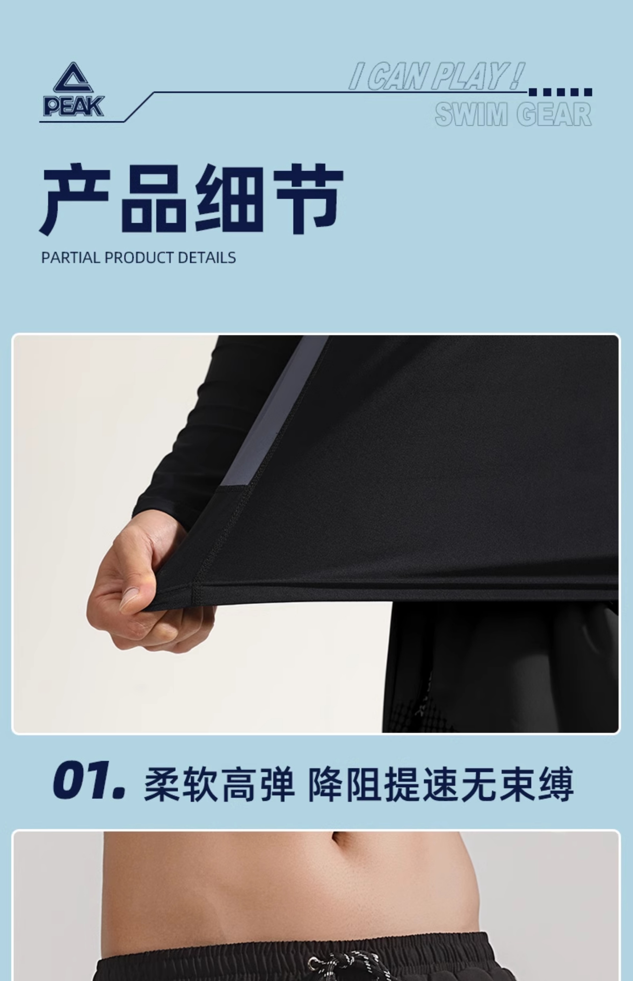 Peak Brand Men's Swimsuit Set, Long-Sleeved 2025 New Model, Anti-Embarrassment Swimming Trunks, Equipment Top, Hot Spring Men's Swimwear