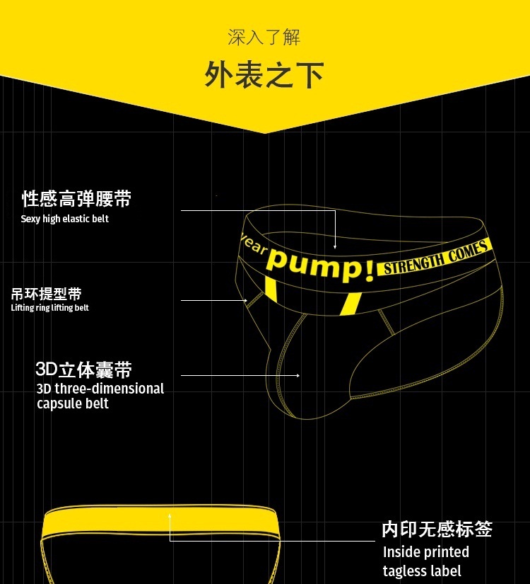 Men's Underwear Pump! Men's Triangle Briefs with Eyelets, Hollow Modal, Sexy Low-Rise, Sporty, for Young Men