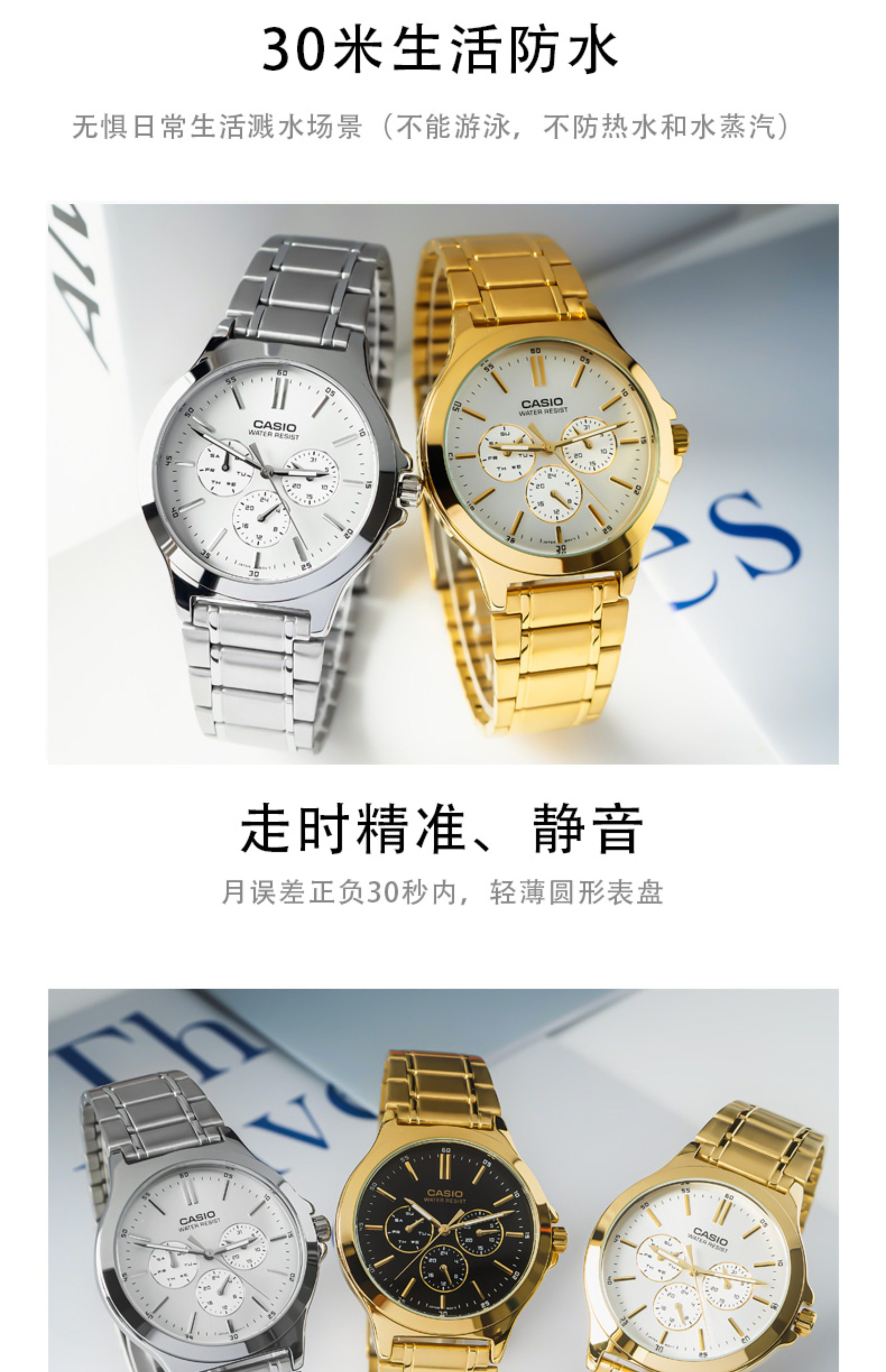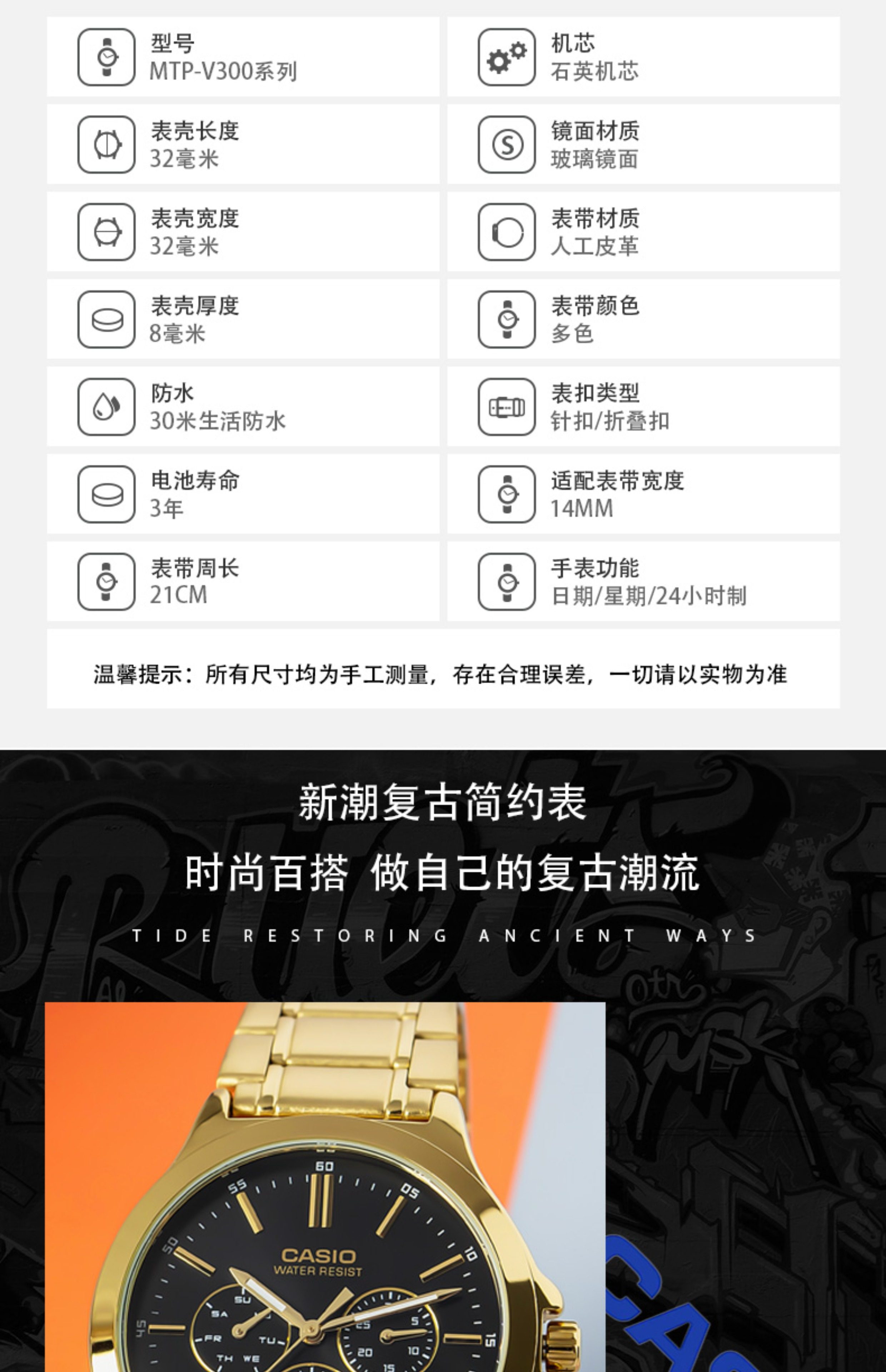 Casio (Casio) Men's Simple Waterproof Belt Three-Eye Casual Quartz Watch Mtp-V300G-7A