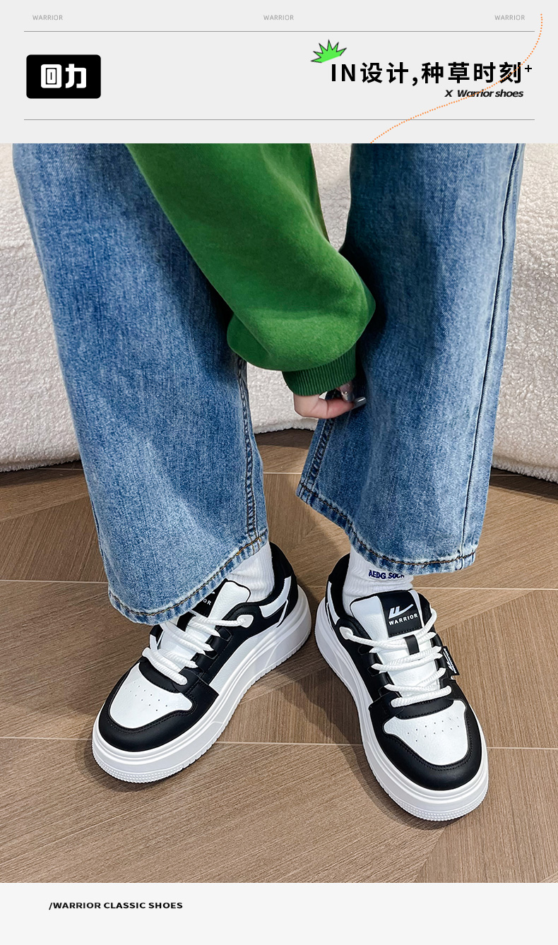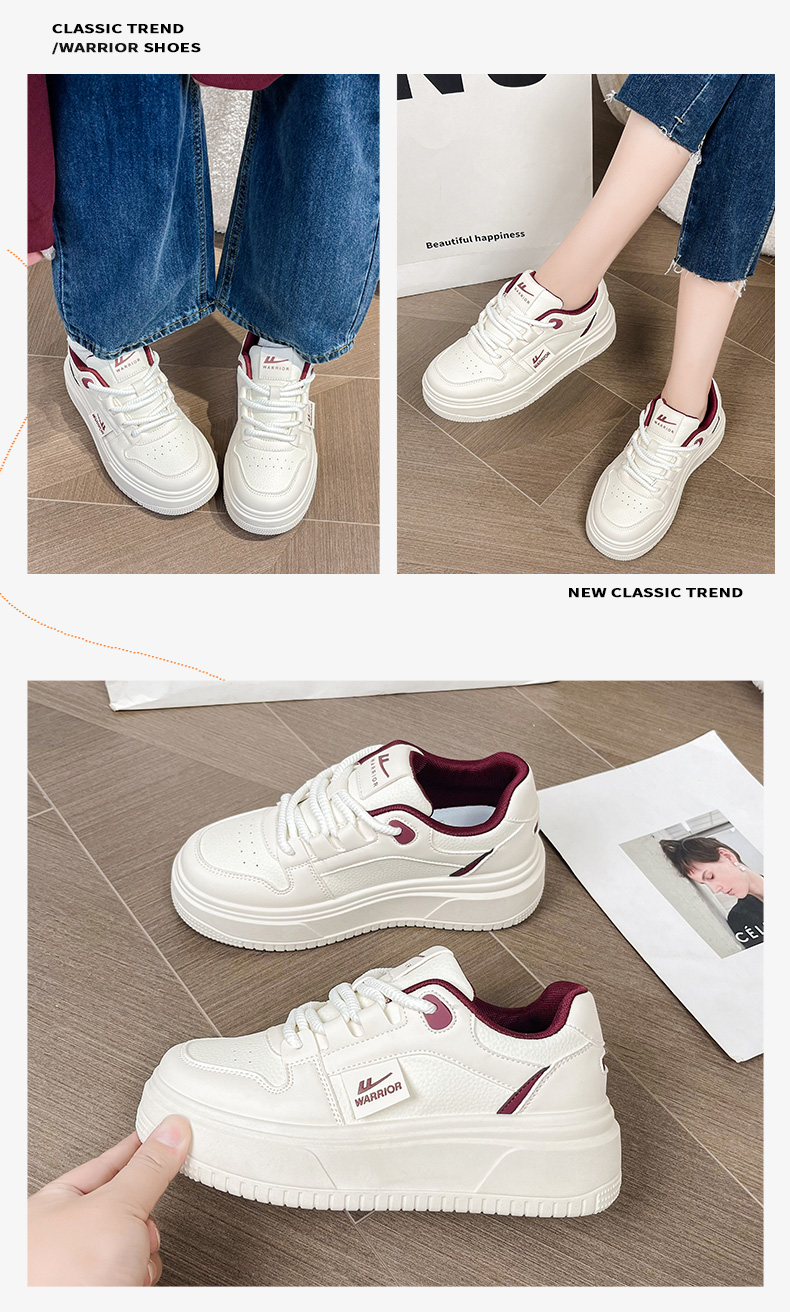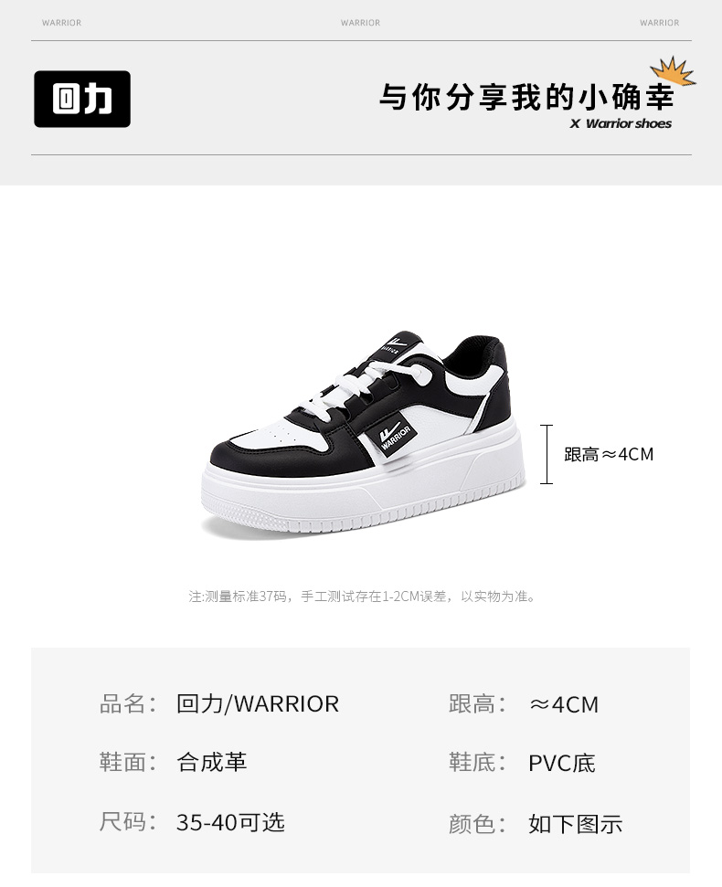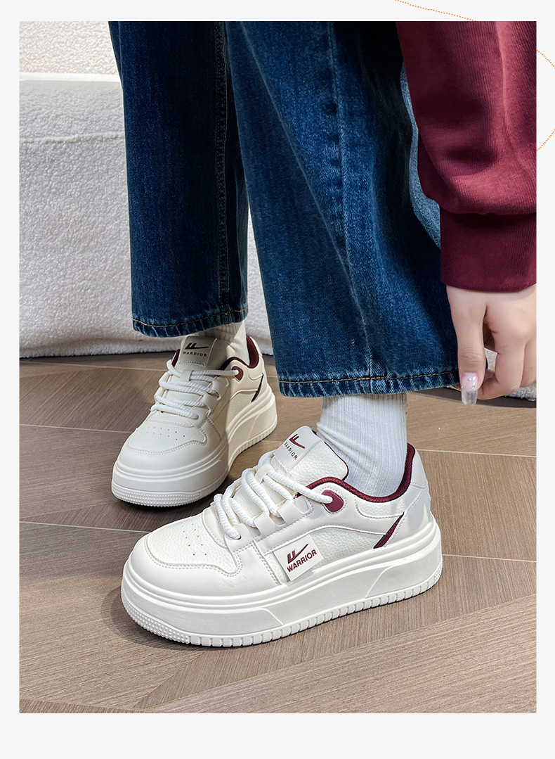 Warrior Women's Shoes 2025 New Autumn Hot-Selling White Shoes Women's Leather Waterproof Casual Shoes Thick-Soled Height-Increasing Sneakers for Women