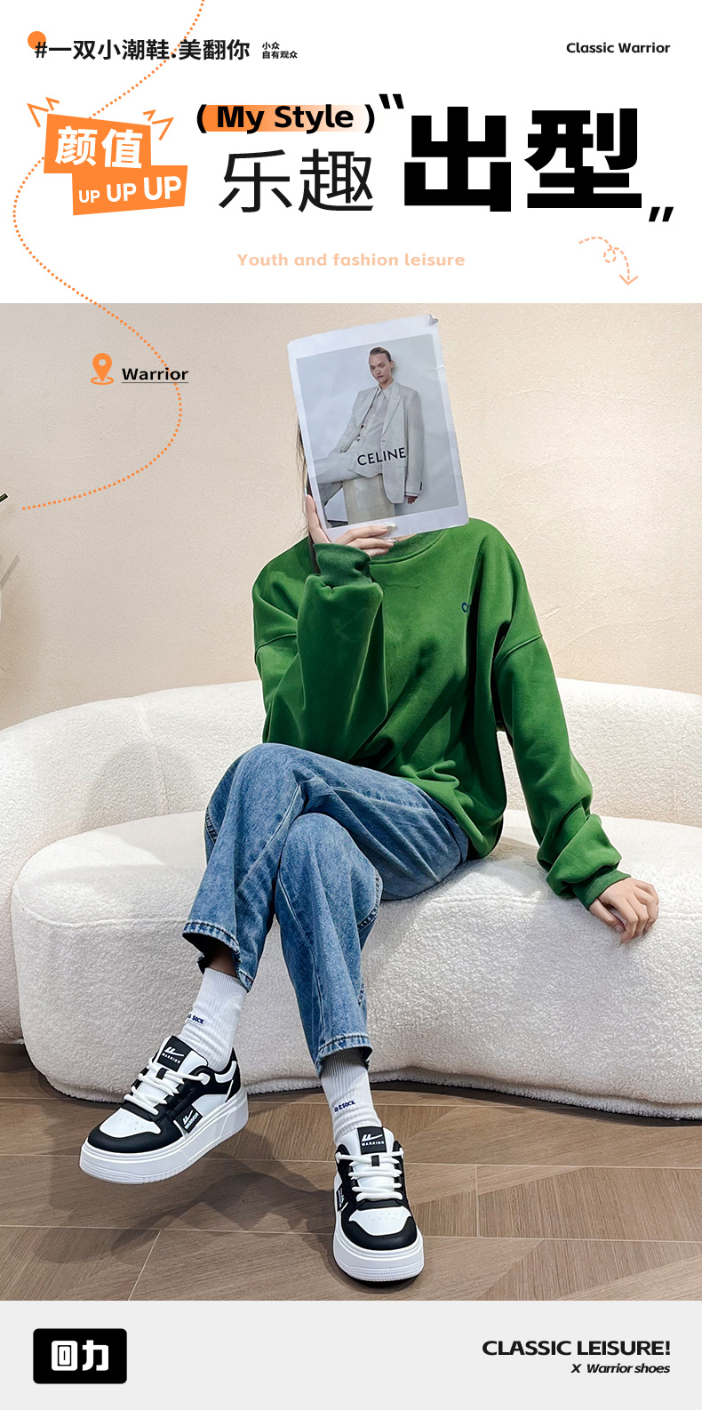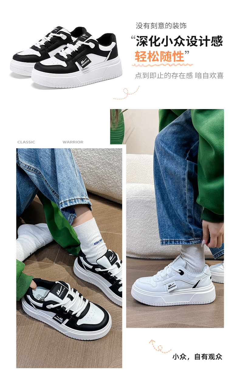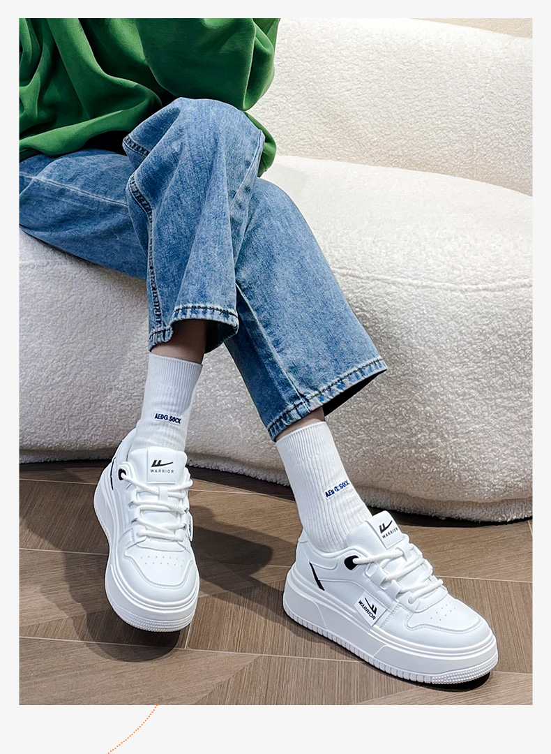 Warrior Women's Shoes 2025 New Autumn Hot-Selling White Shoes Women's Leather Waterproof Casual Shoes Thick-Soled Height-Increasing Sneakers for Women