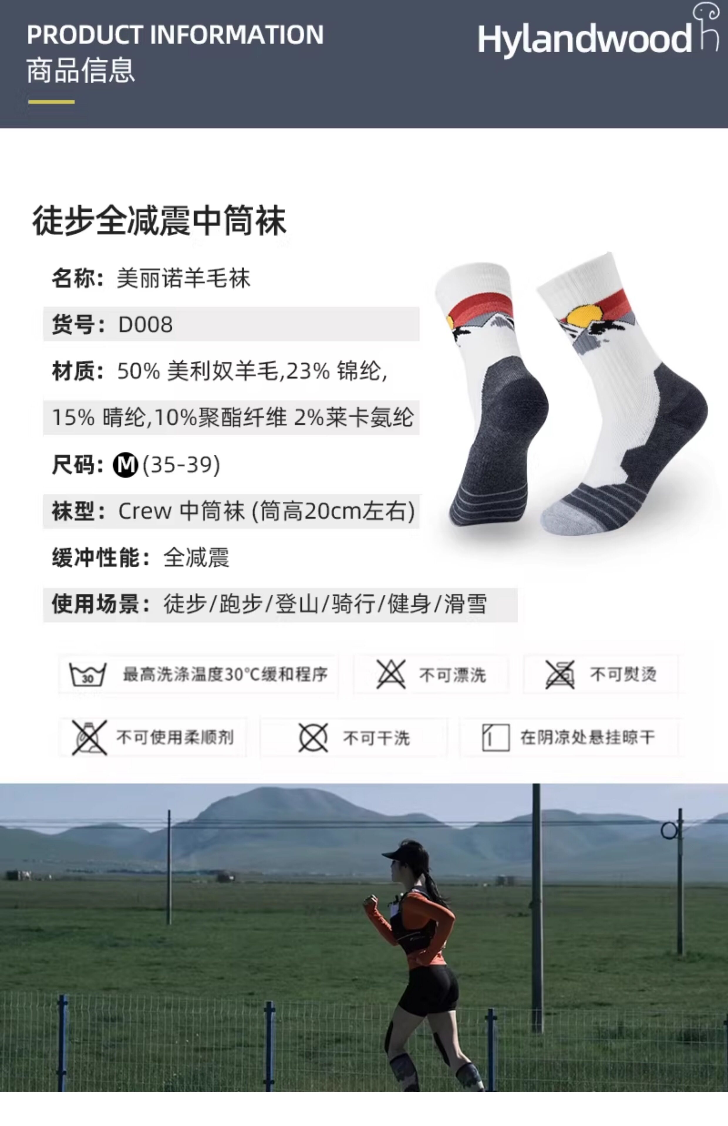 Merino Wool Hiking, Skiing, Professional Outdoor Sports Women's Mid-Calf Anti-Odor Warm Socks