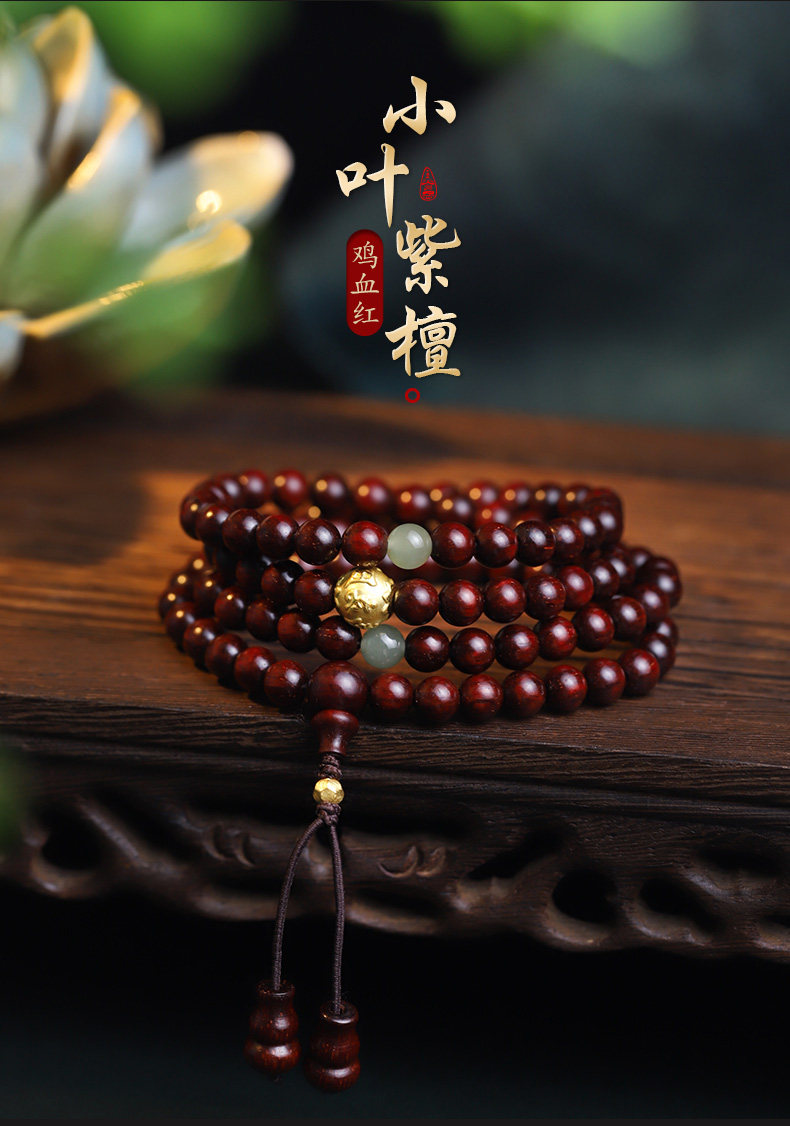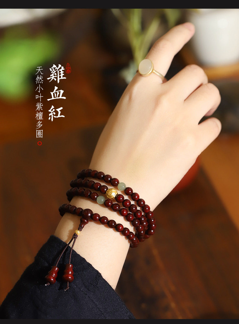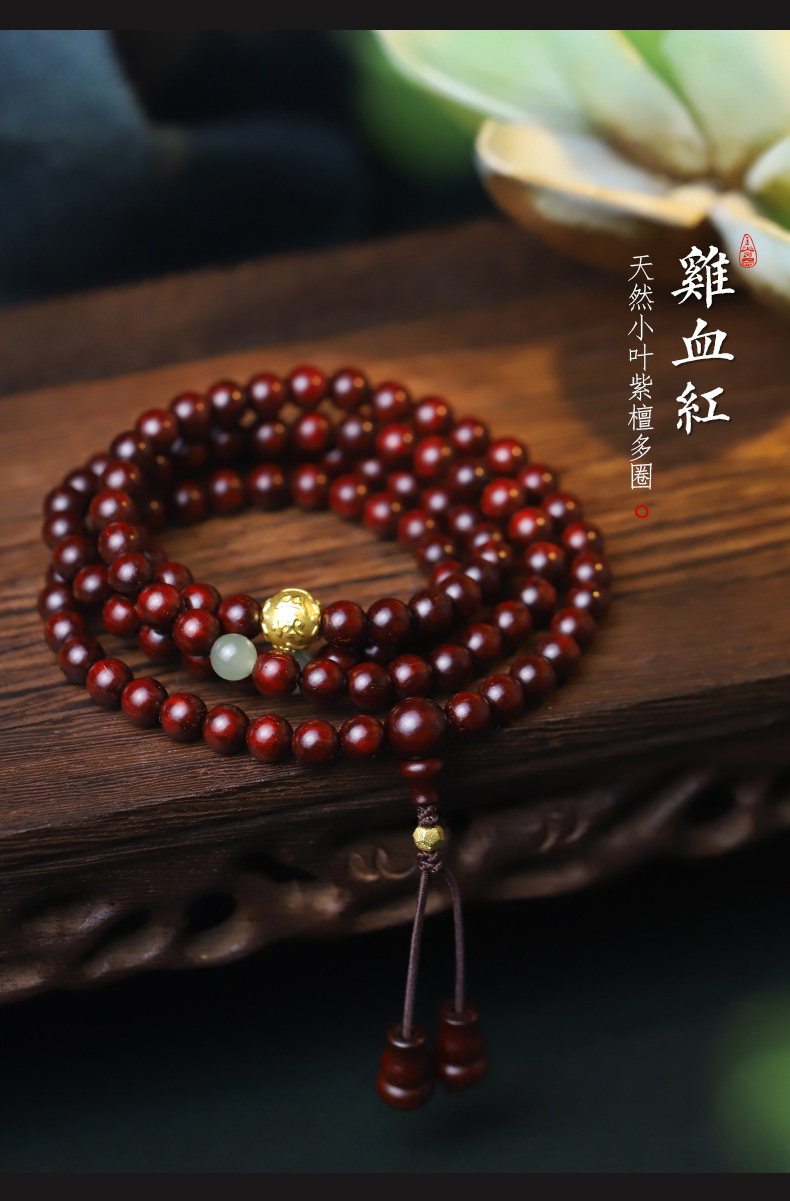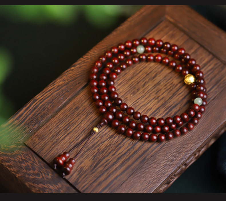 Xinzaitang [Jingtan] Natural Bloodwood Red Sandalwood Bracelet 108 Beads Prayer Beads Unisex Gold Bracelet Wood