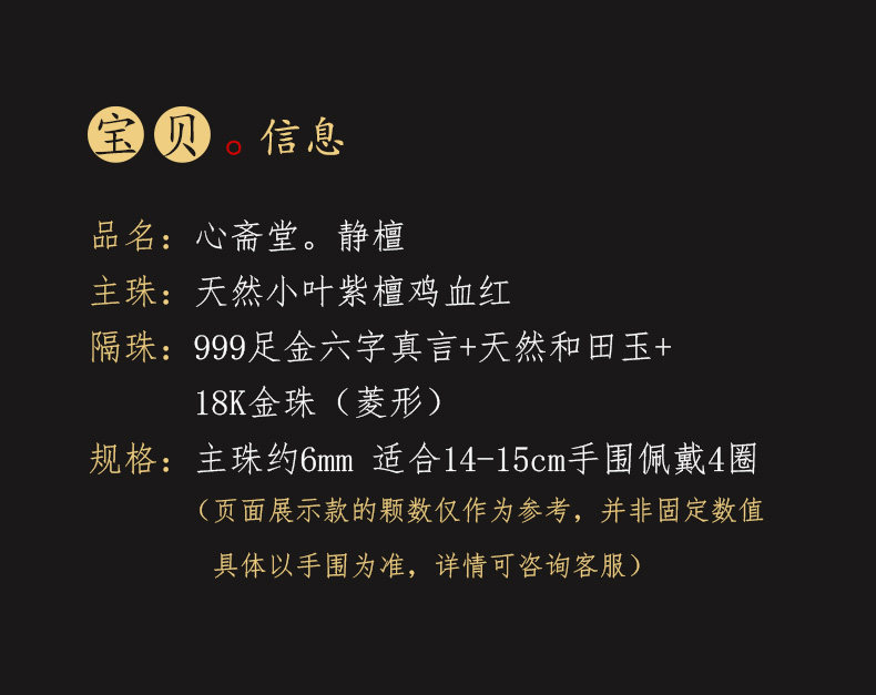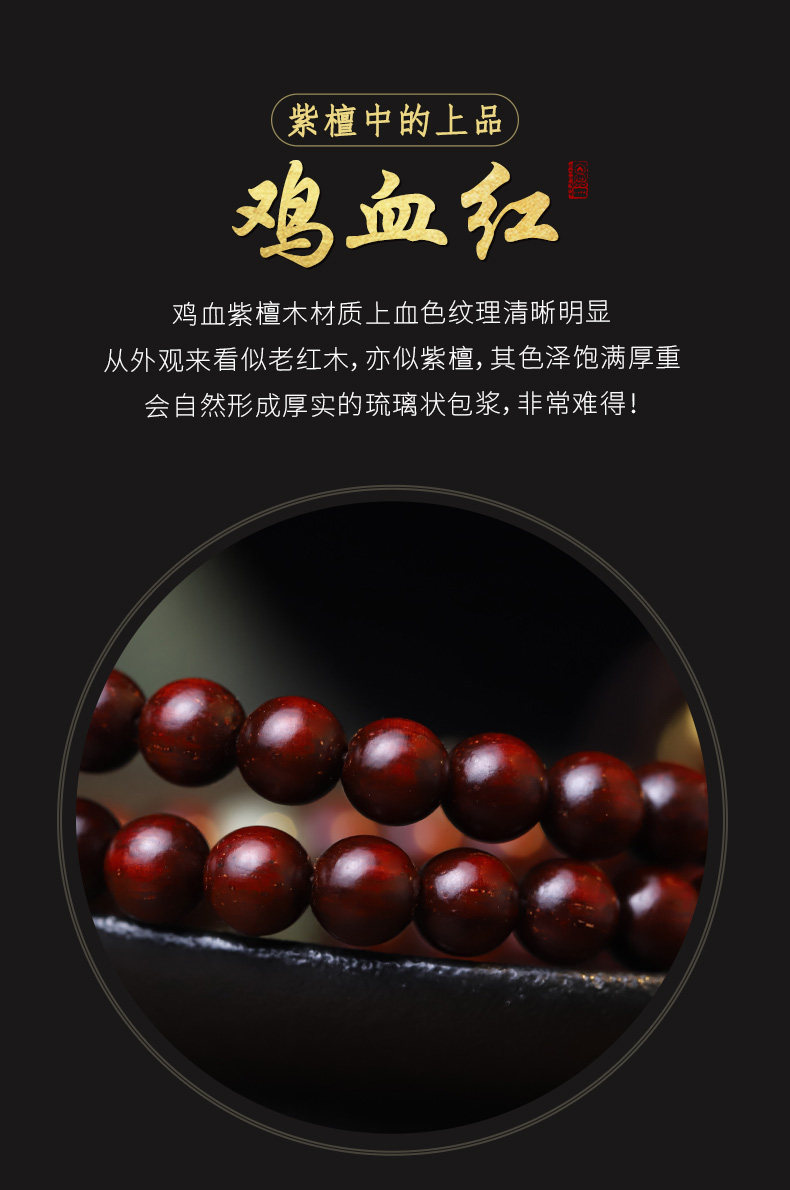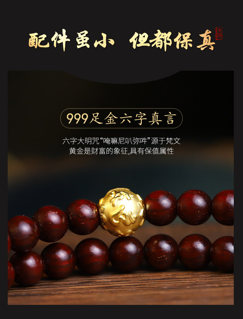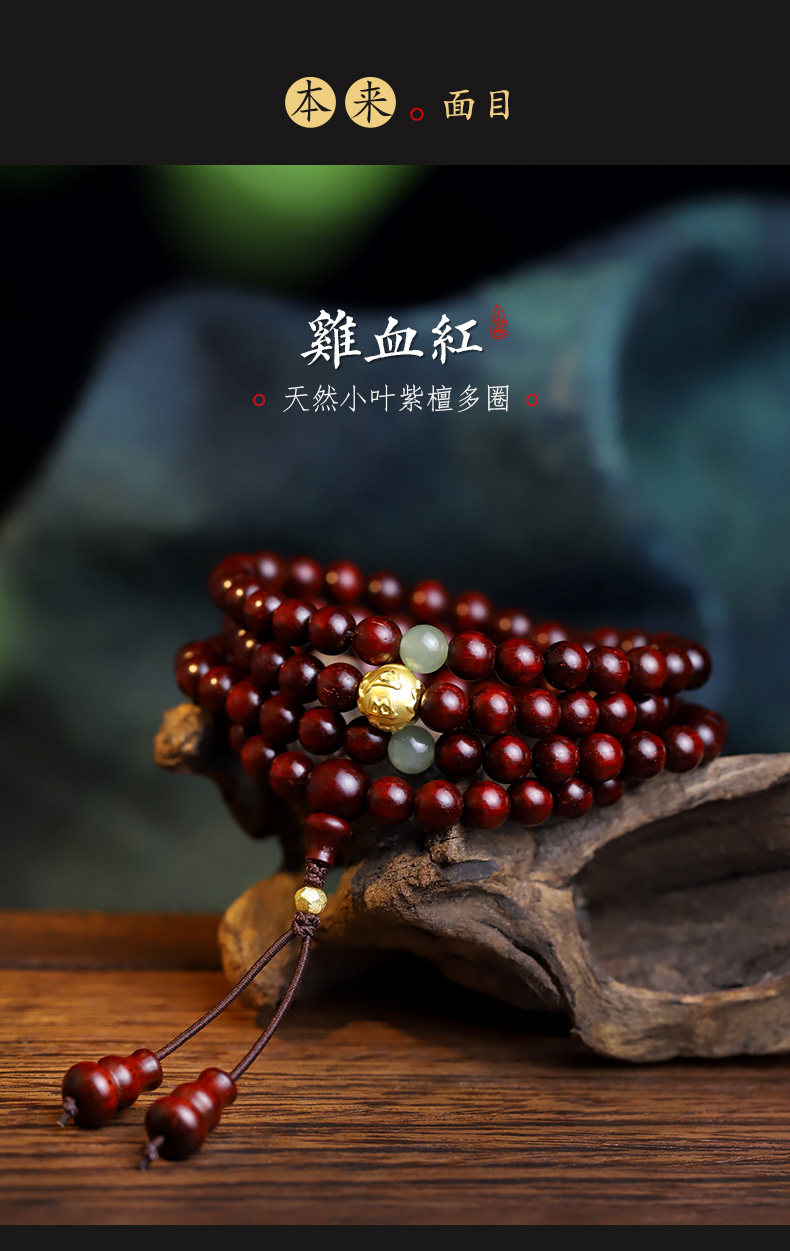 Xinzaitang [Jingtan] Natural Bloodwood Red Sandalwood Bracelet 108 Beads Prayer Beads Unisex Gold Bracelet Wood