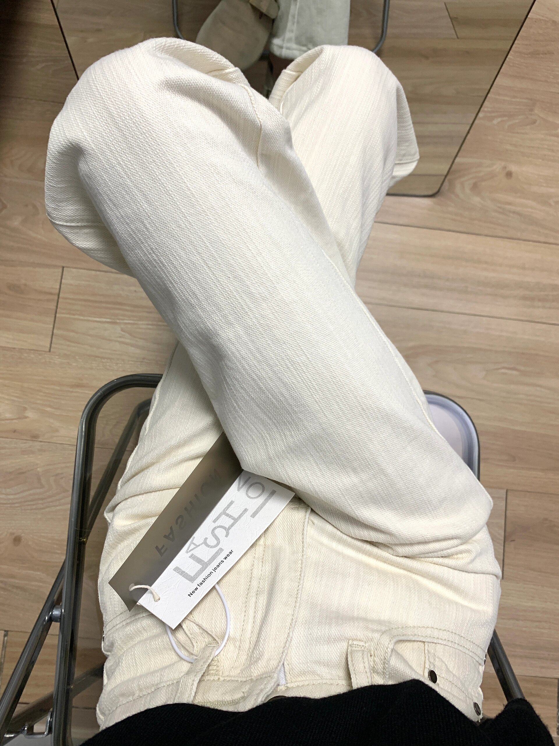 Light Apricot Textured Straight-Leg Jeans for Women, New Summer Design, Petite High-Waisted Slim-Fit Narrow Wide-Leg Pants