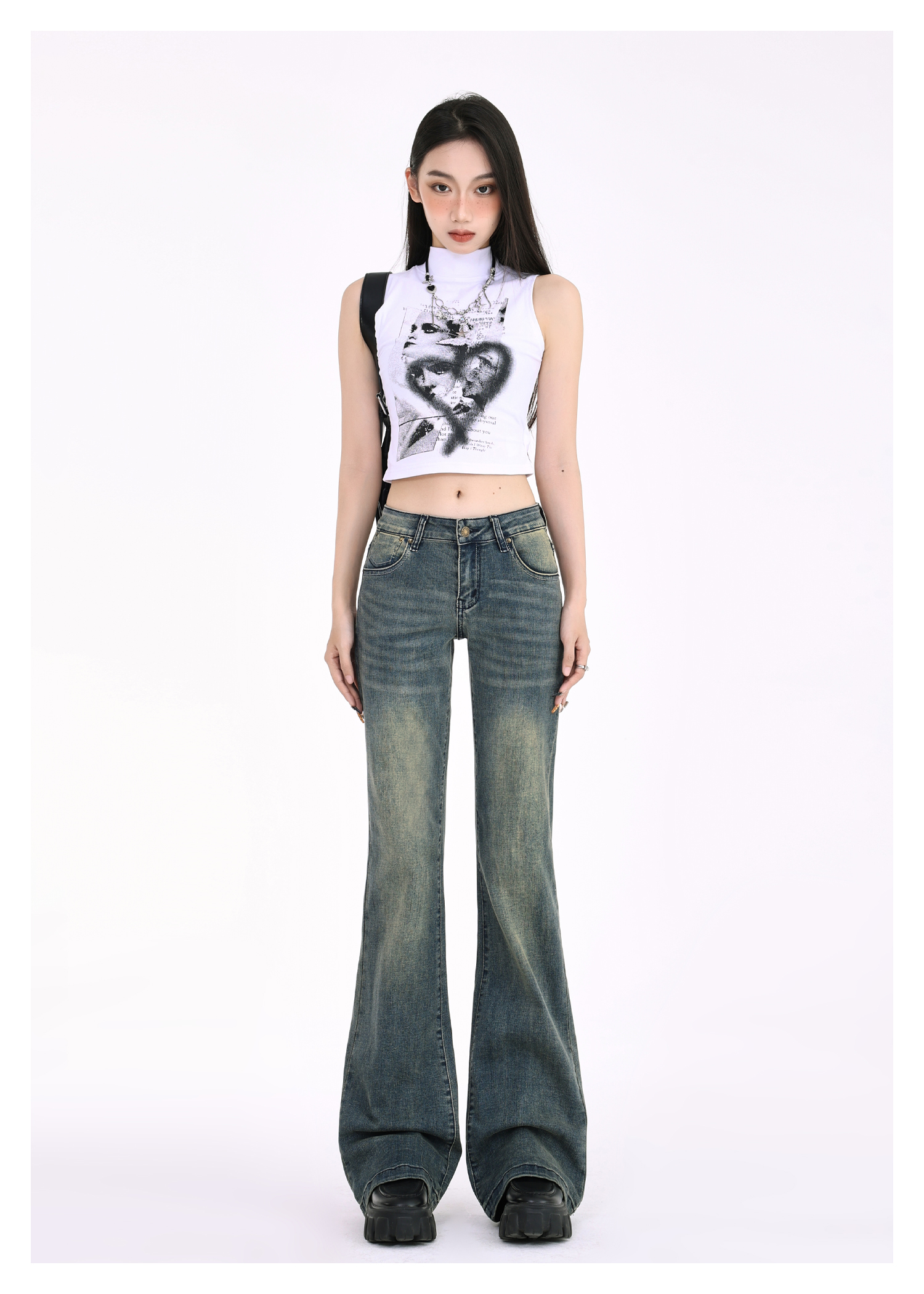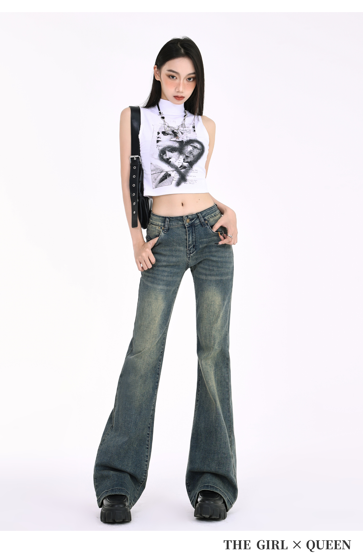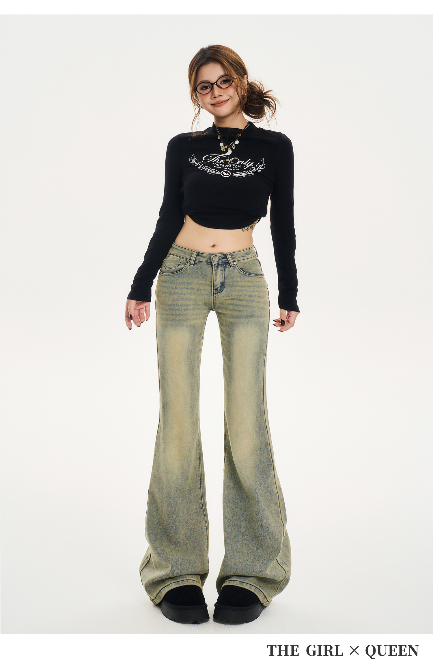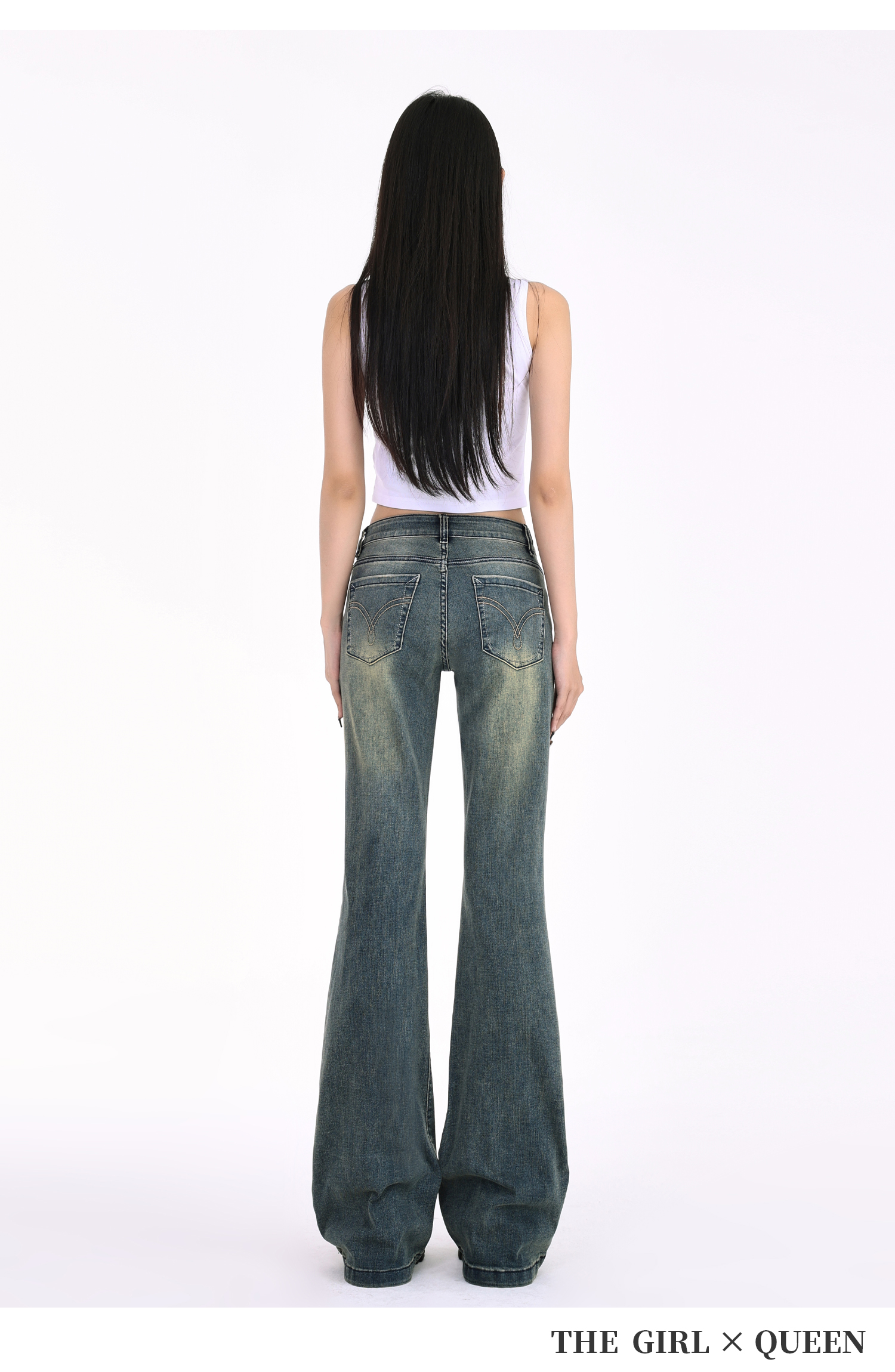 Tgxq Retro Flared Jeans for Women 2025 New American Style Spicy Girl Elastic Petite Low-Waist Bell-Bottom Pants