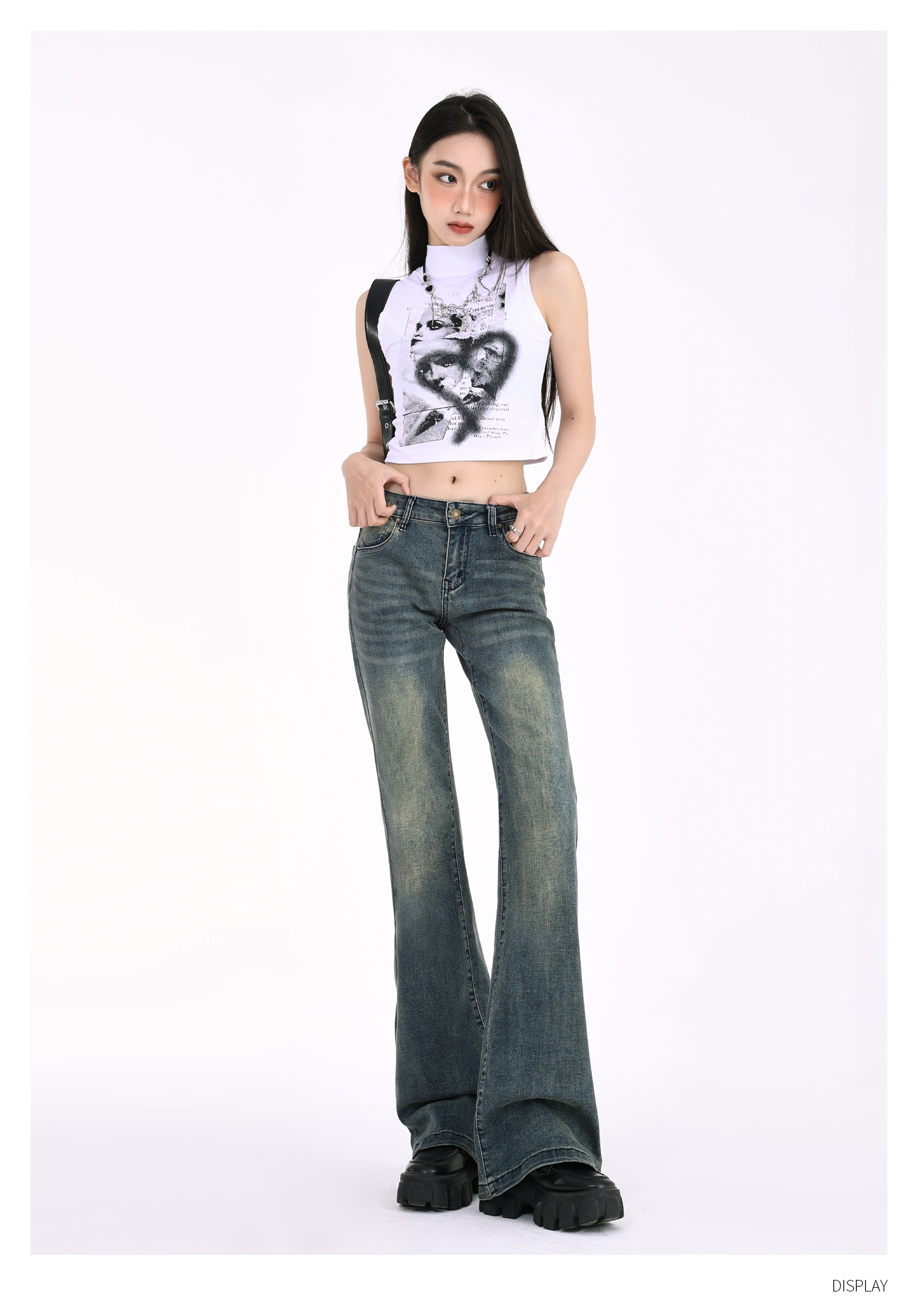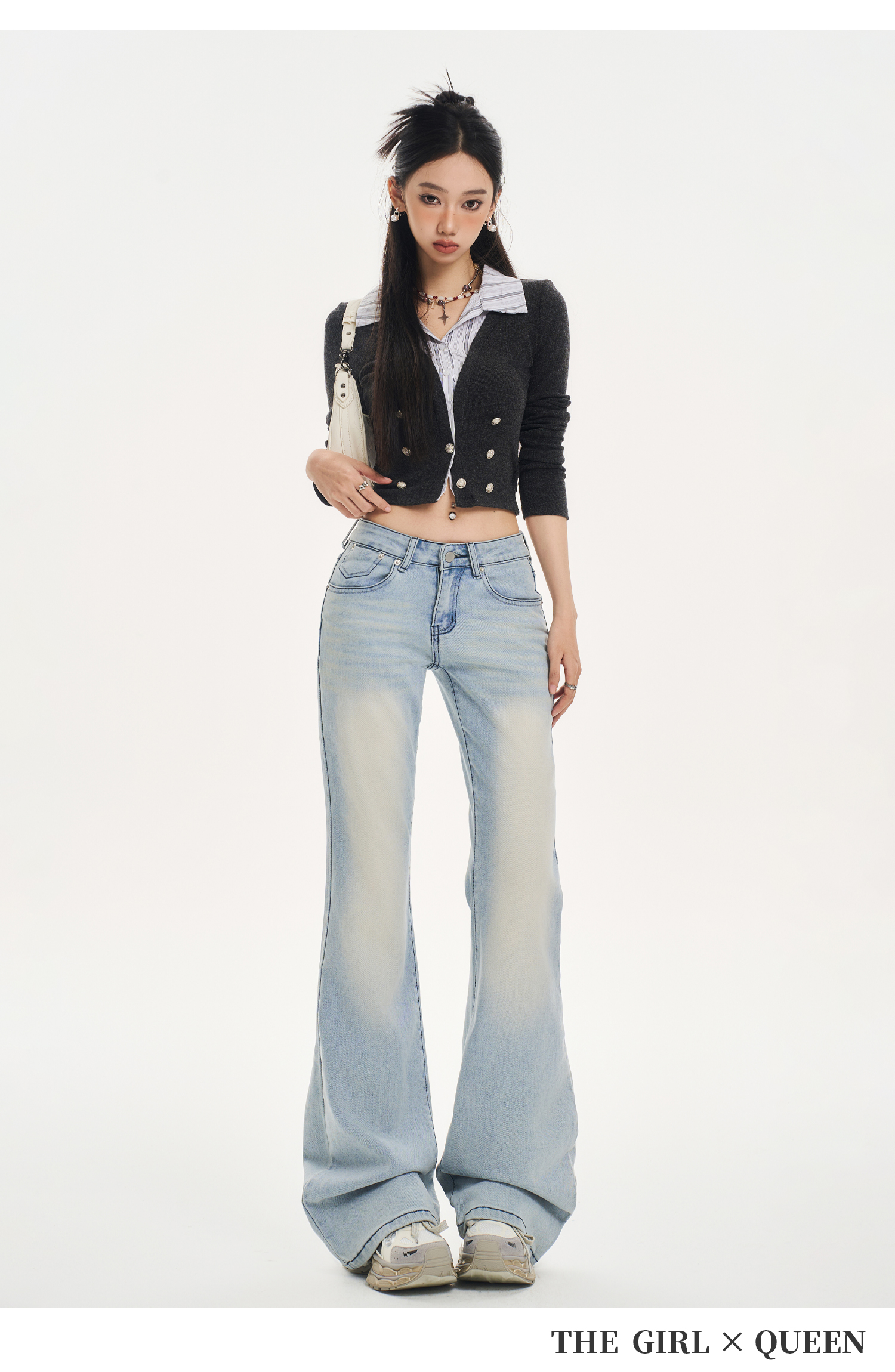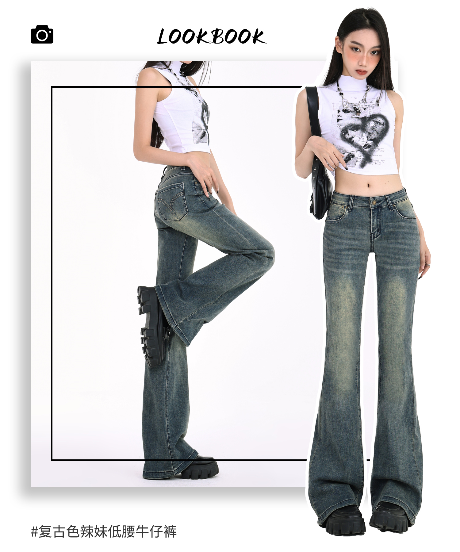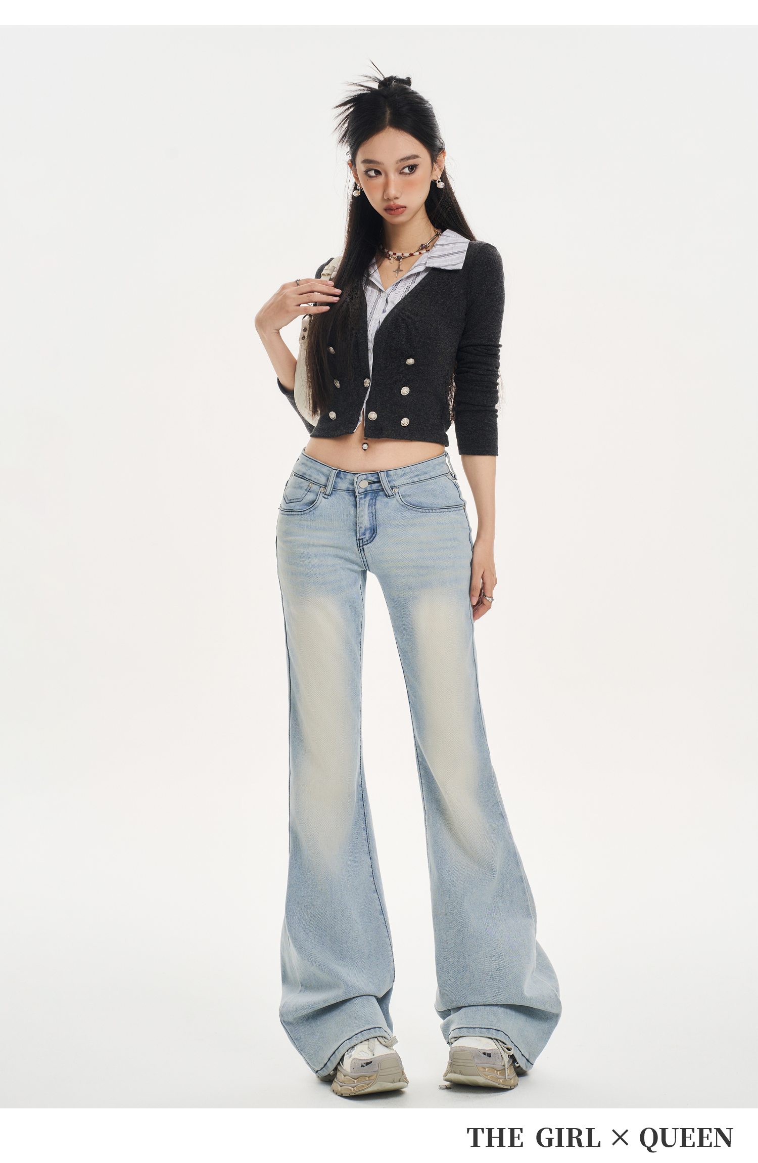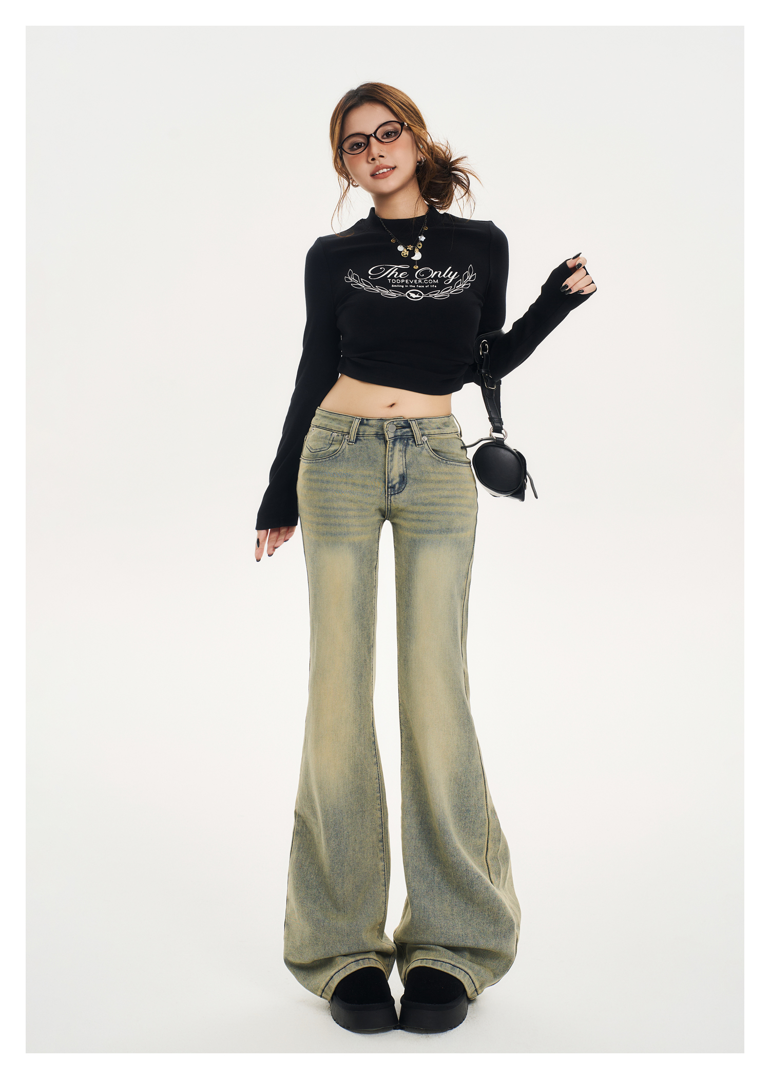 Tgxq Retro Flared Jeans for Women 2025 New American Style Spicy Girl Elastic Petite Low-Waist Bell-Bottom Pants