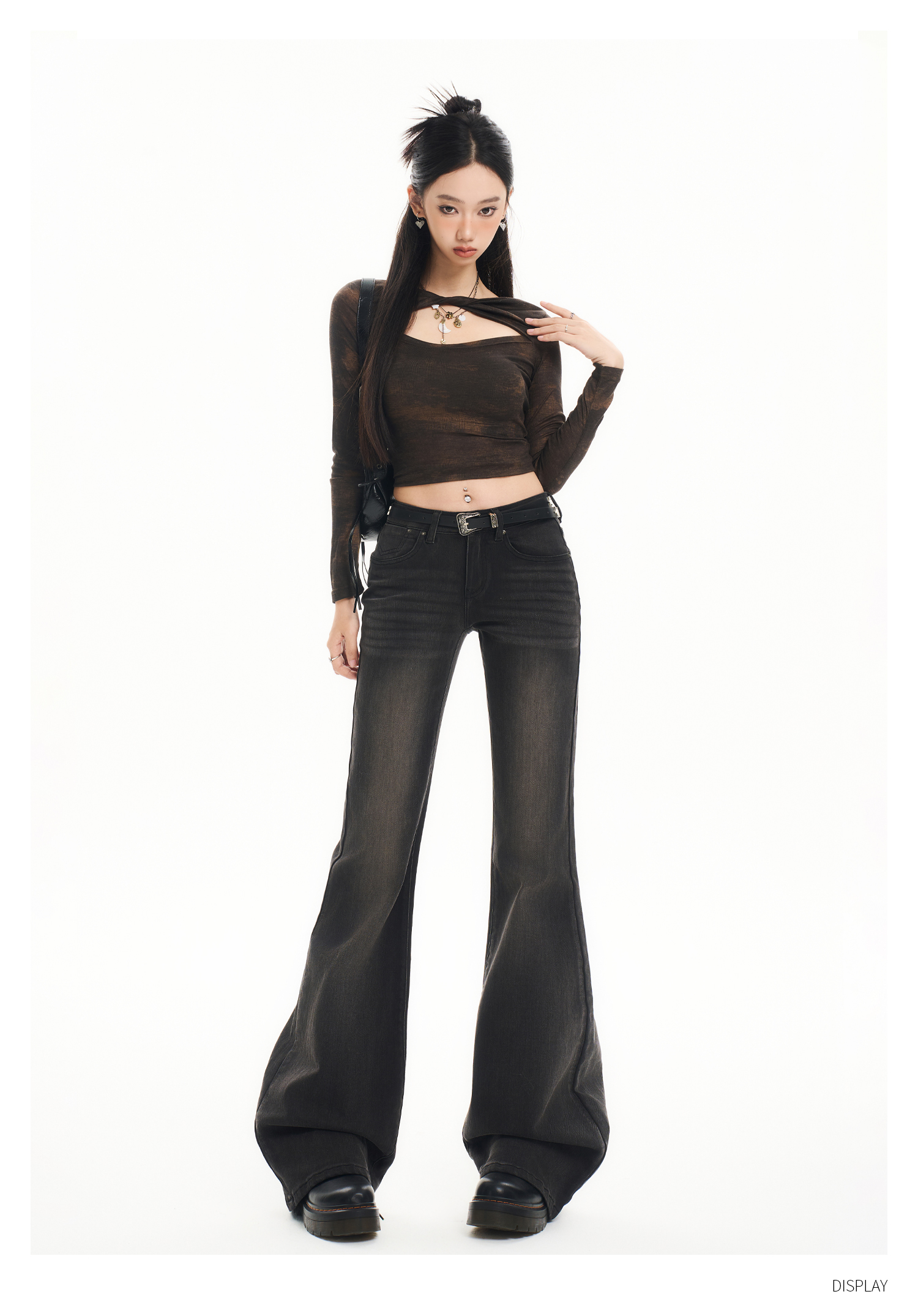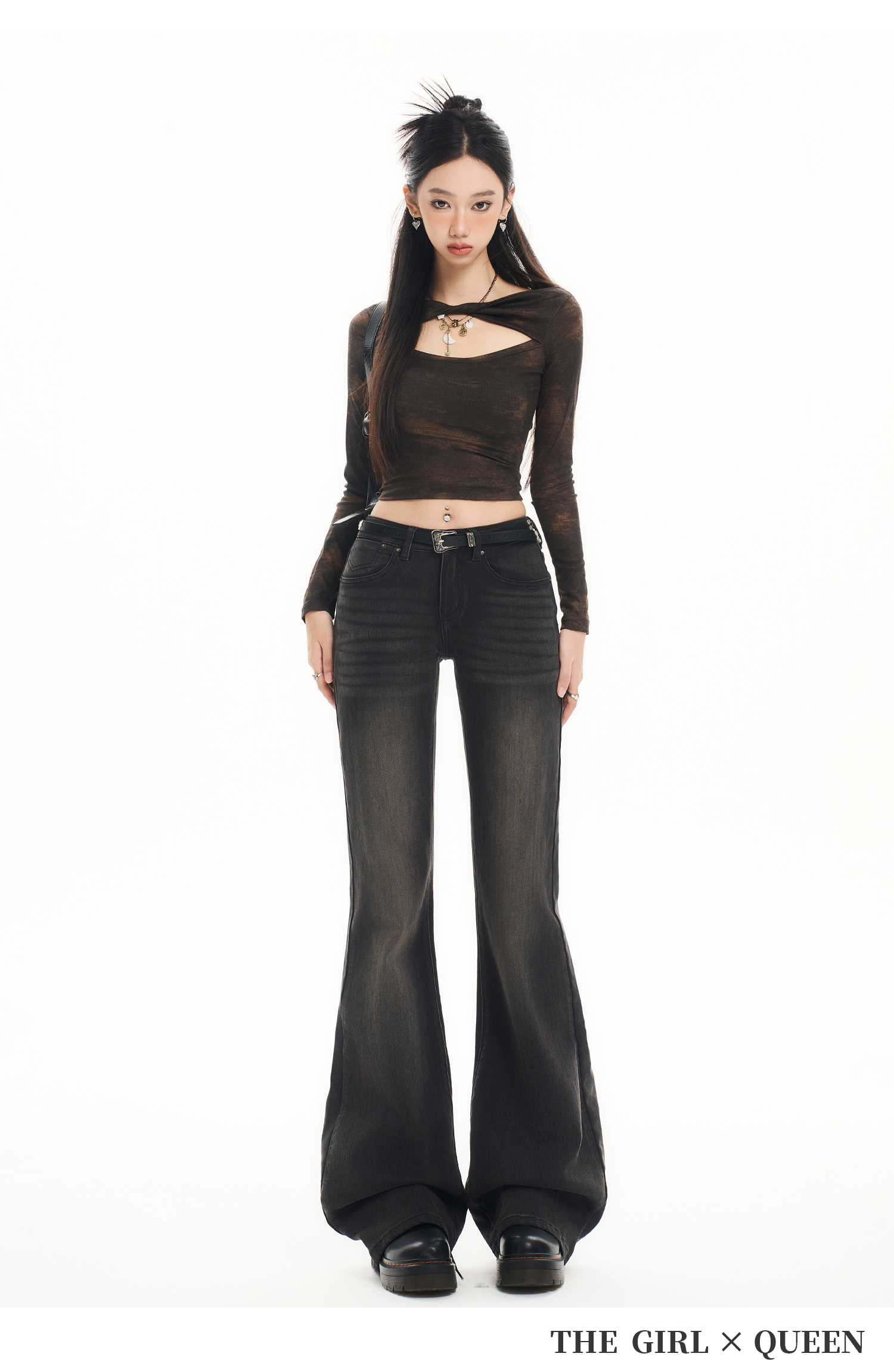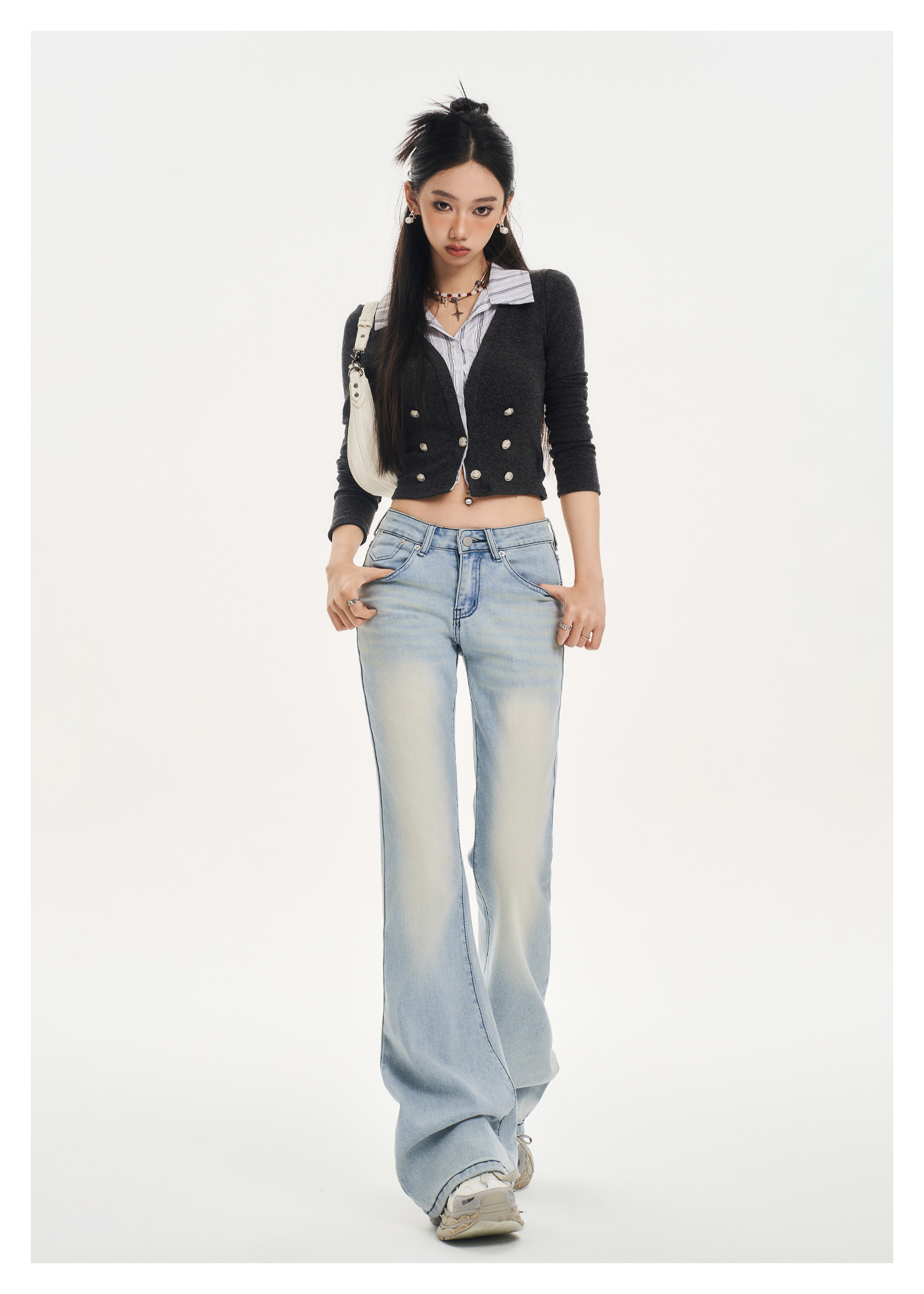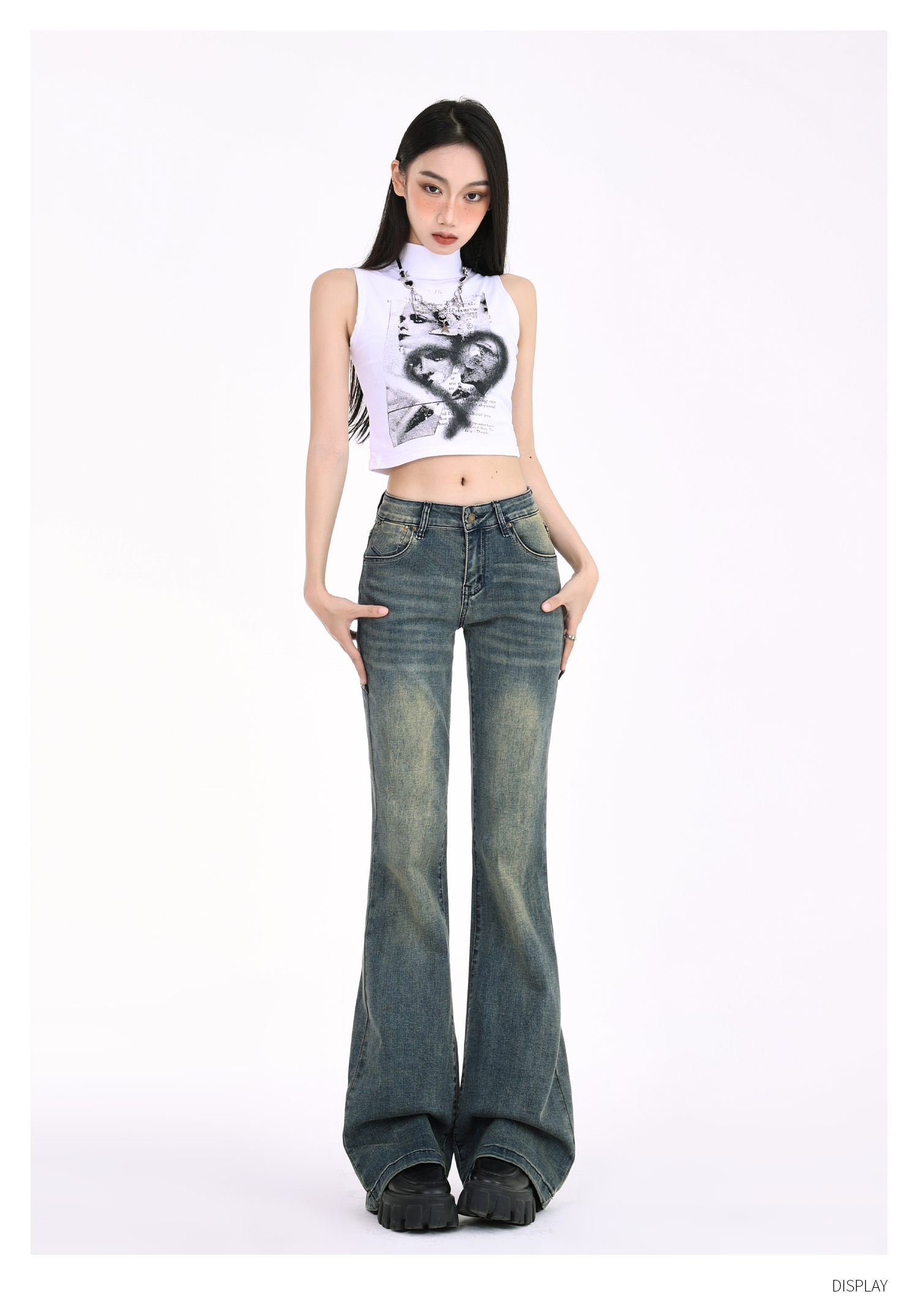 Tgxq Retro Flared Jeans for Women 2025 New American Style Spicy Girl Elastic Petite Low-Waist Bell-Bottom Pants