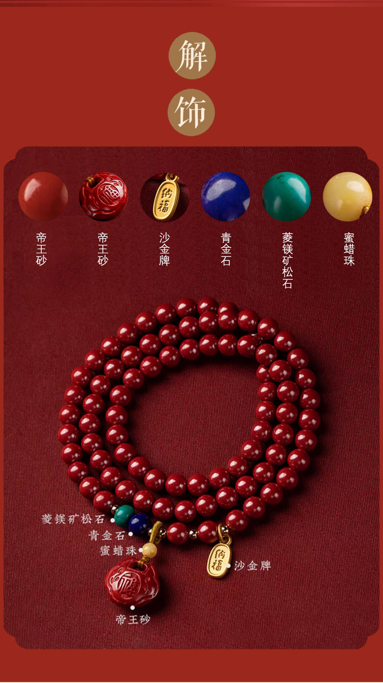 Imperial Cinnabar Bracelet Official Flagship Store Genuine Natural Raw Mineral Multi-Layer Bracelet for the Year of the Zodiac, Portable New Year Gift