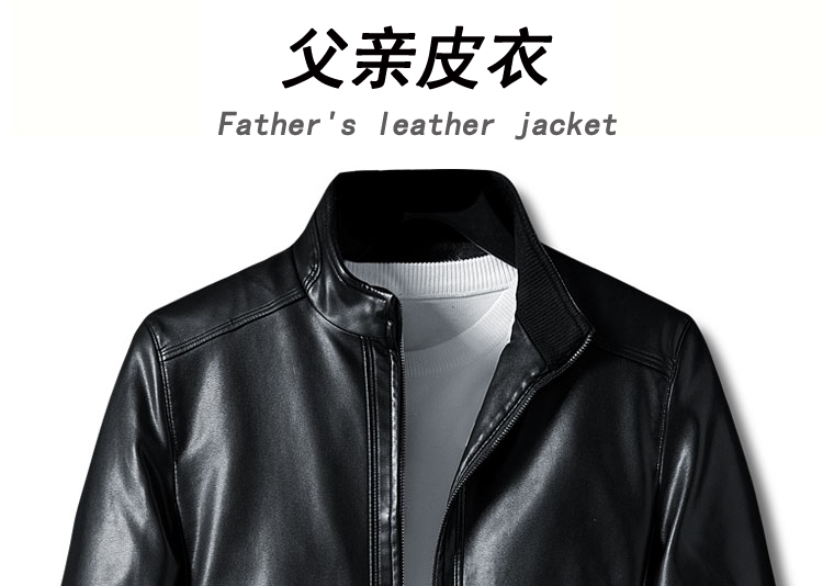 Haining Genuine Leather Jacket for Men, Autumn and Winter Fleece-Lined Warm Coat, Stand Collar, Loose Fit, Dad Style, Casual, Plus Size Men's Clothing