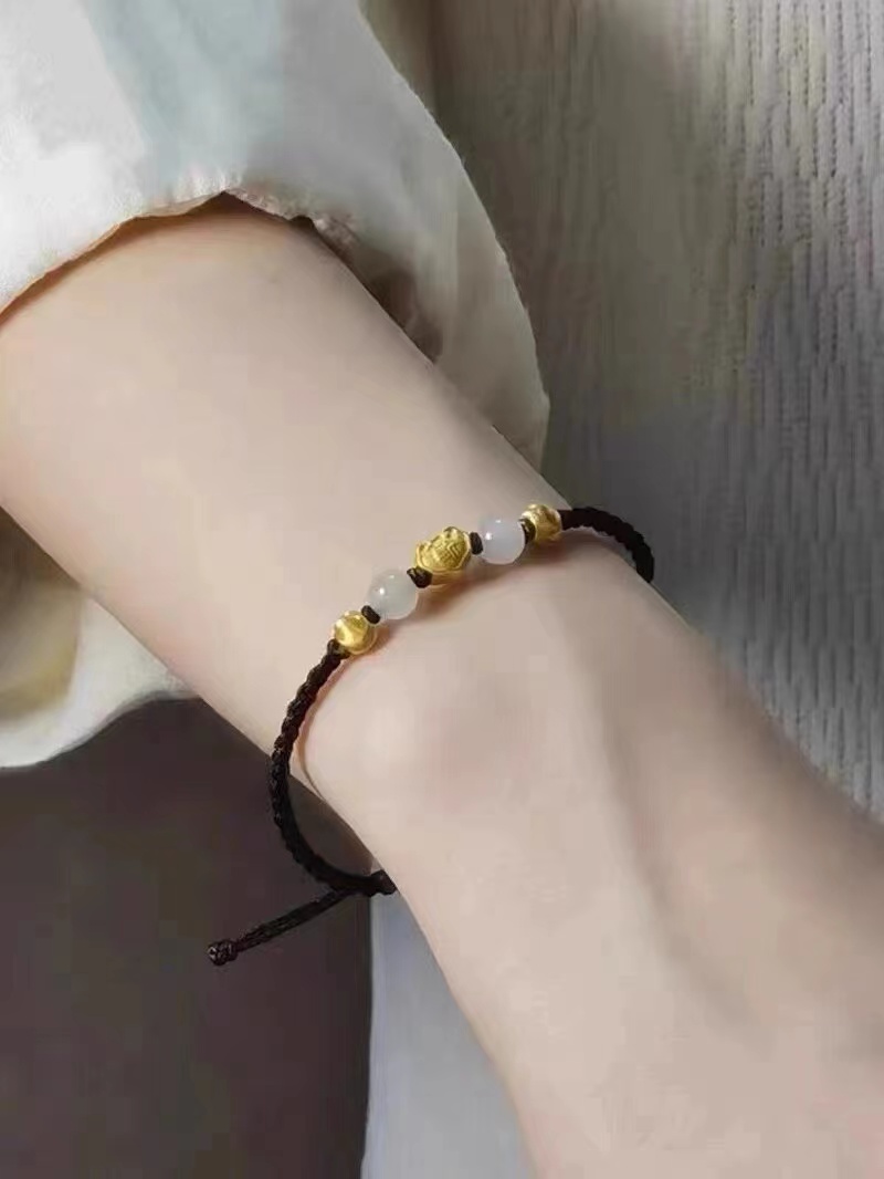 999 Pure Gold Ruyi Peace Lock Bracelet for Women, Birth Year Gift, Gold Fortune Bead, Blessing Lock, Red String Braided Bracelet