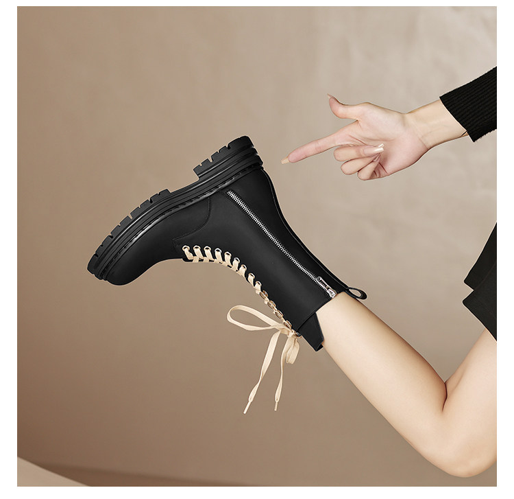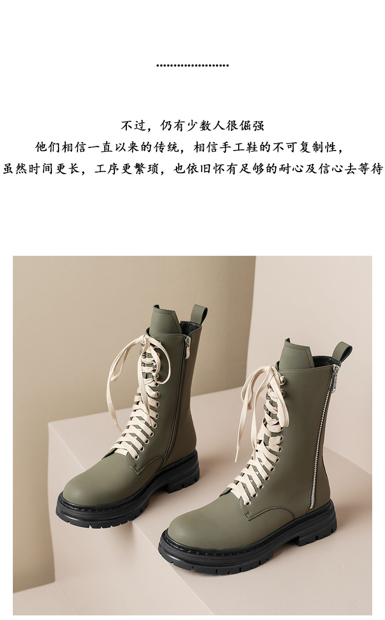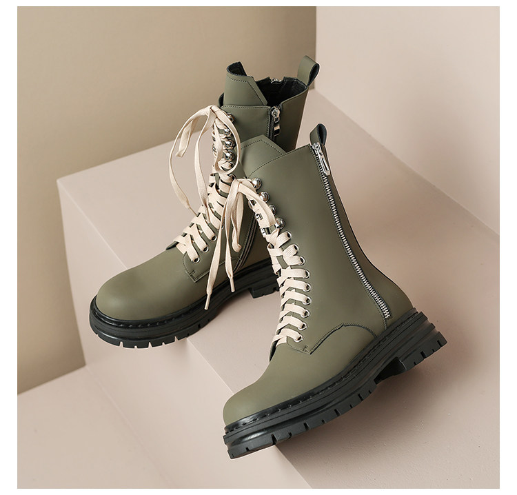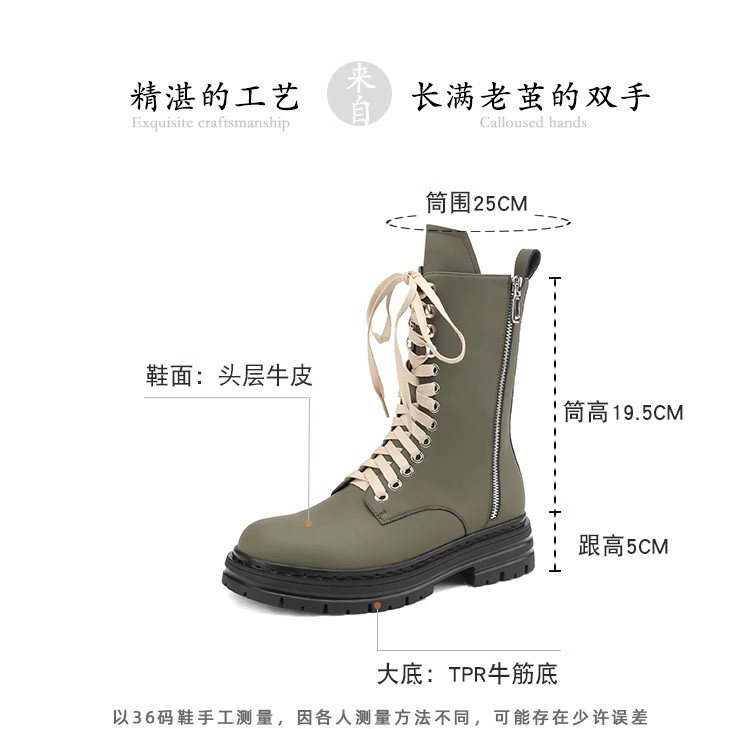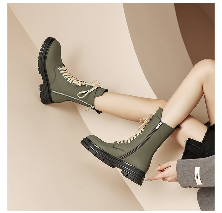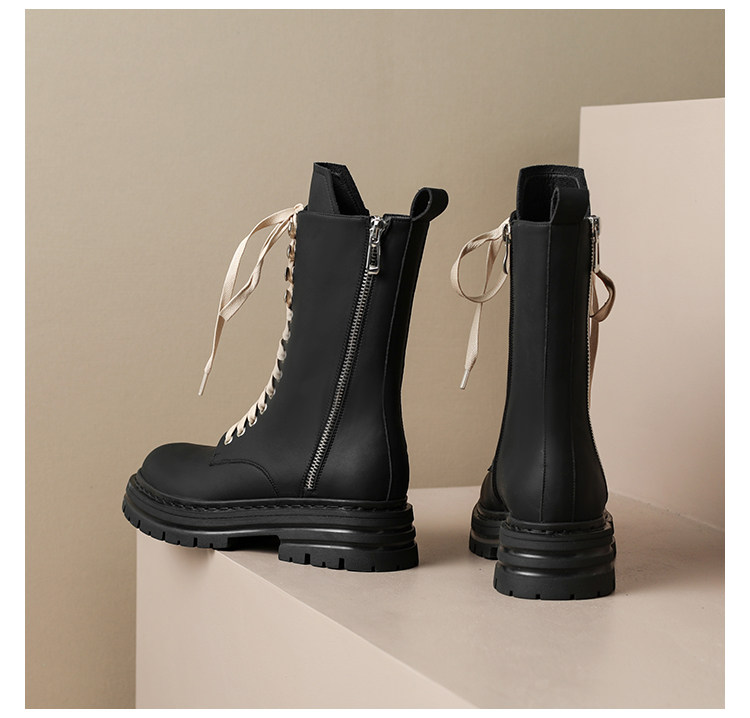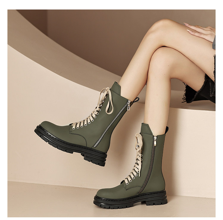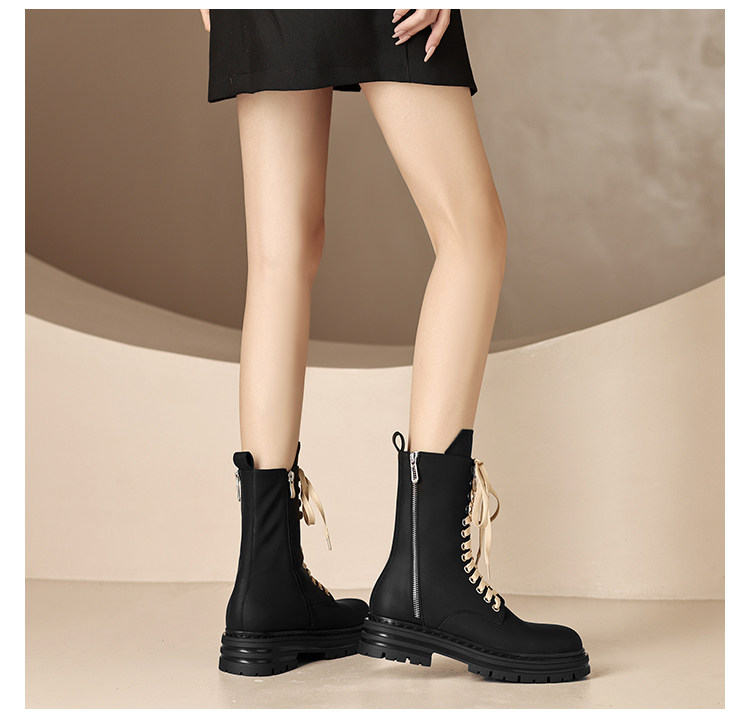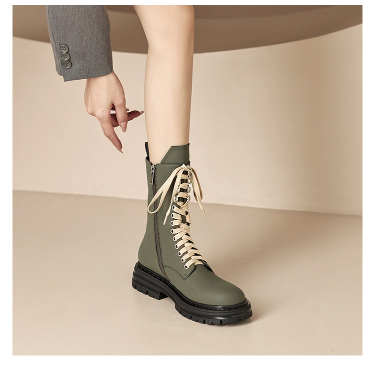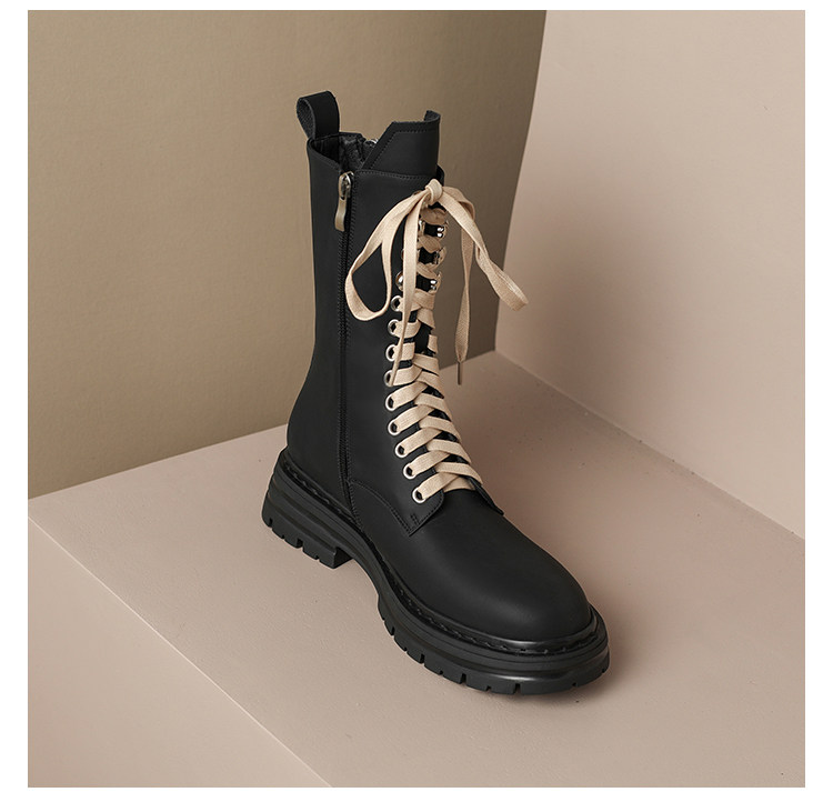 Super Slimming~ Corso Venezia Genuine Leather Round-Toe Lace-Up Martin Boots for Women, 2025 Autumn and Winter Mid-Calf Boots for Petite Women