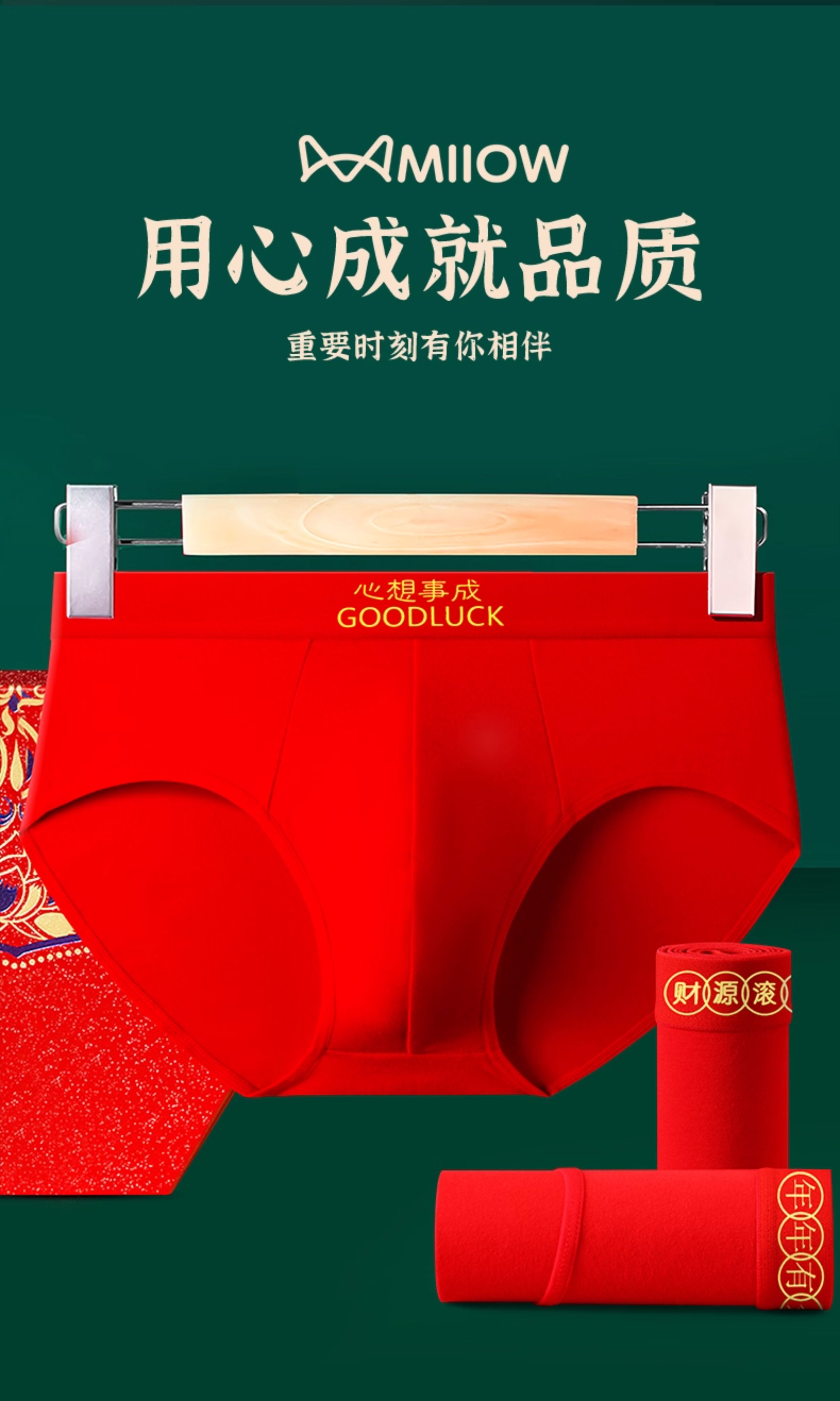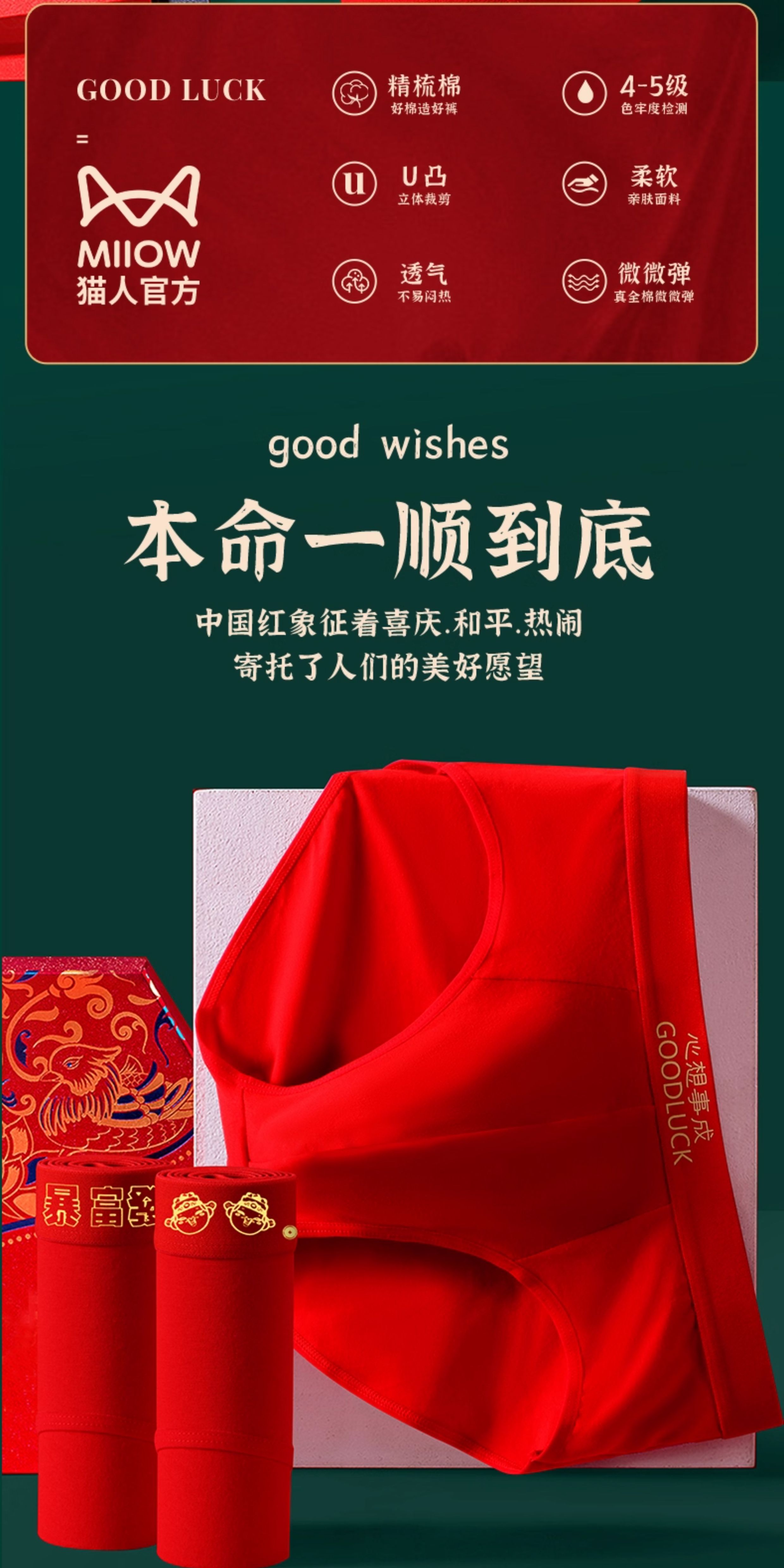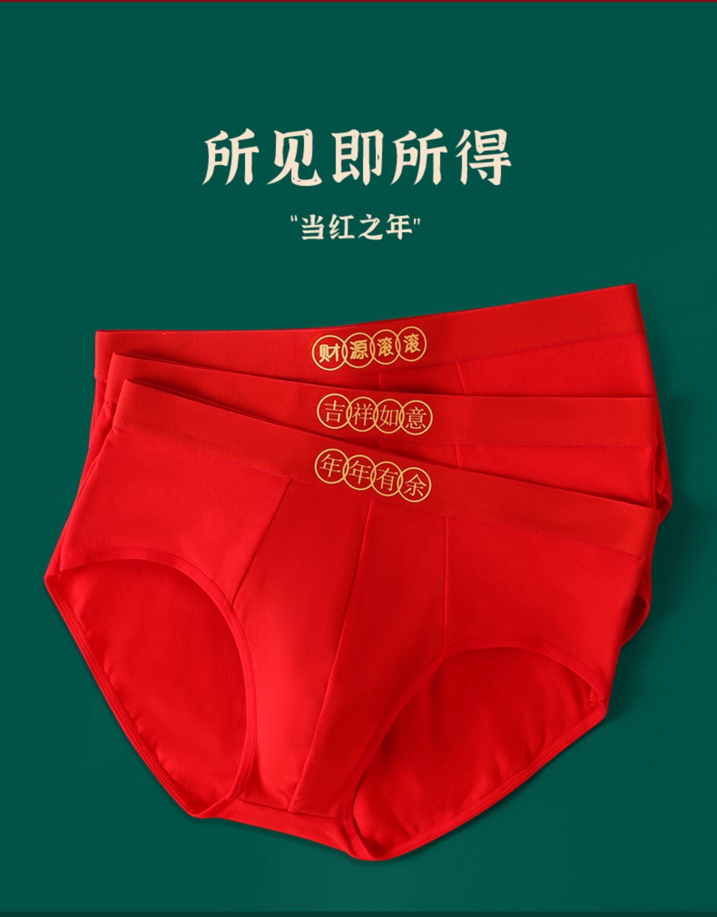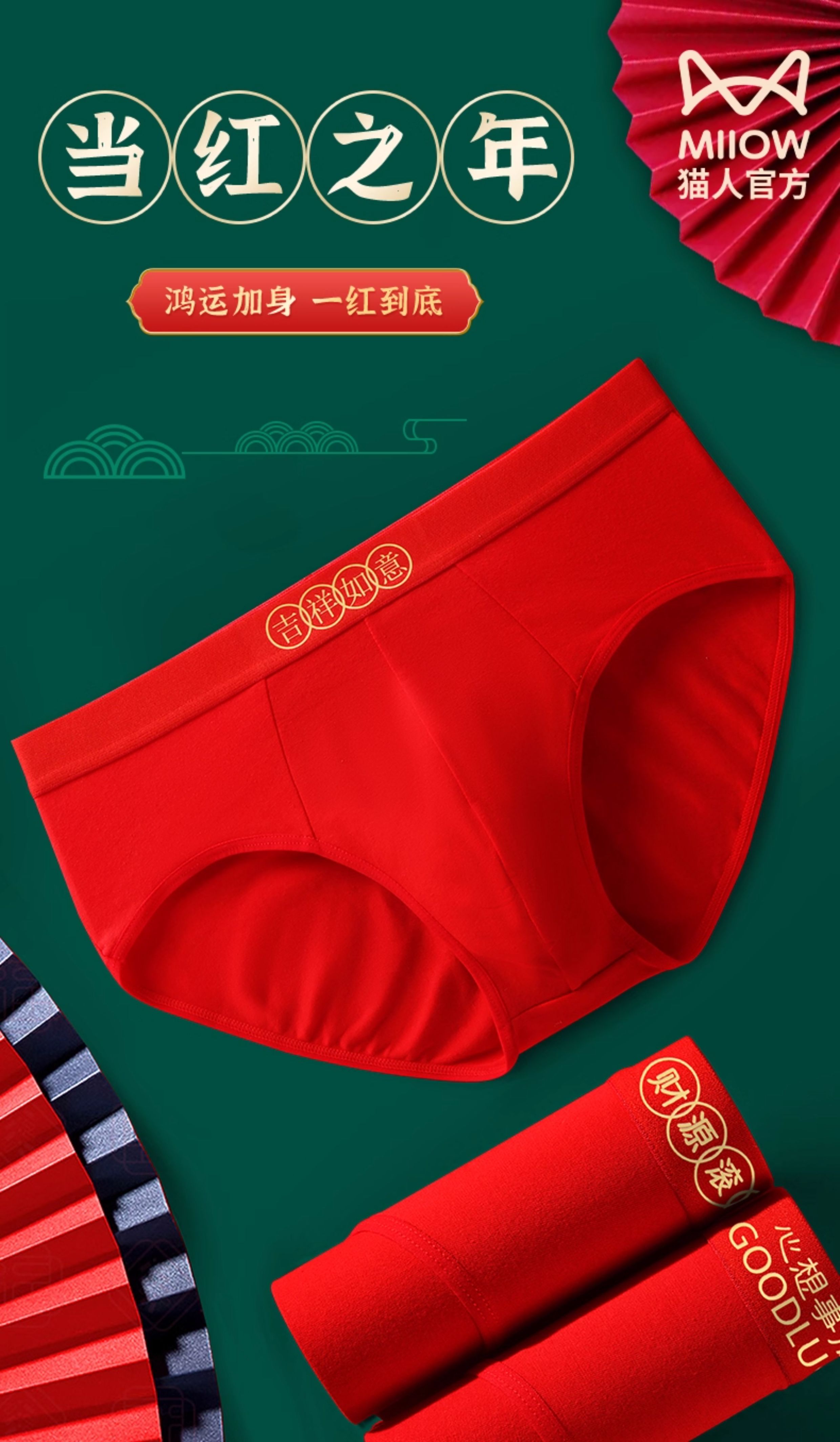 Cat-Themed Red Underwear for Men, Triangle Pure Cotton Shorts, Men's New Year Wedding Gift, 2025 Year of the Snake Gift Box