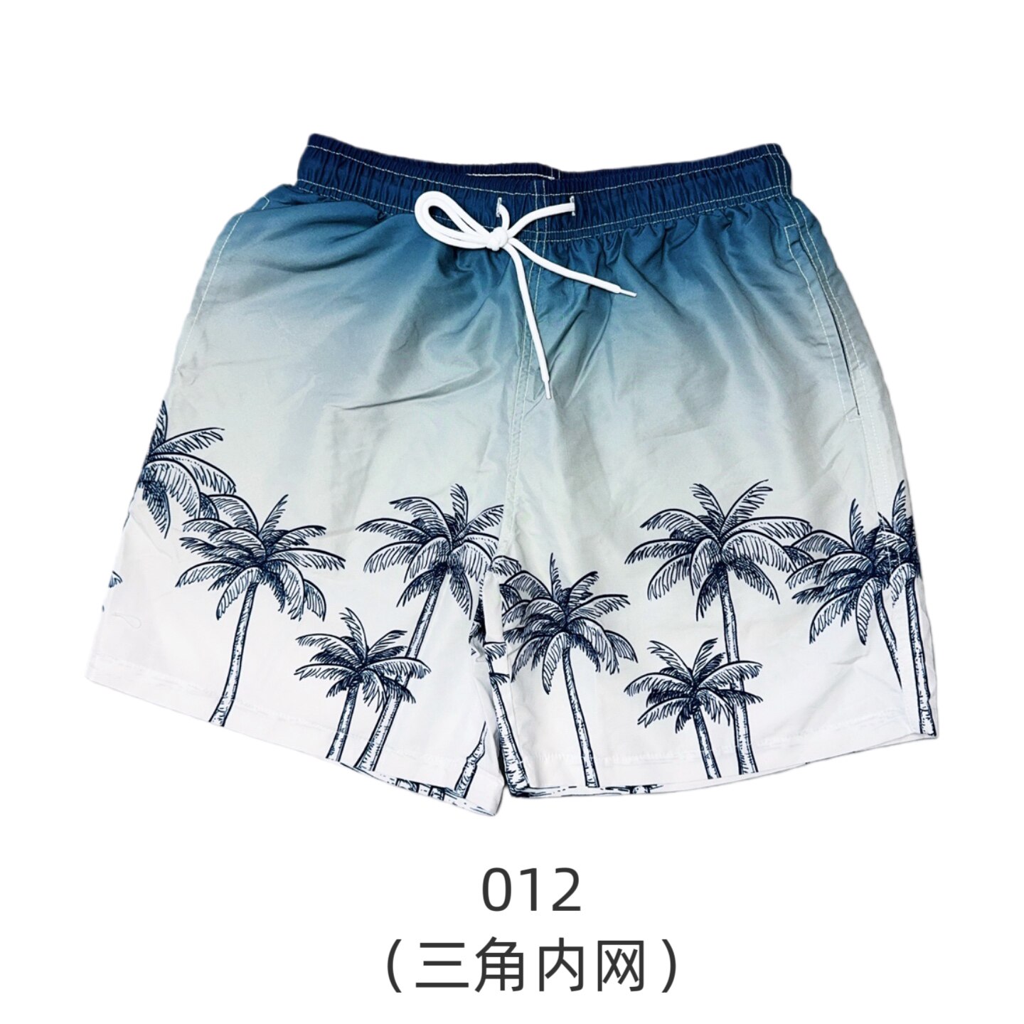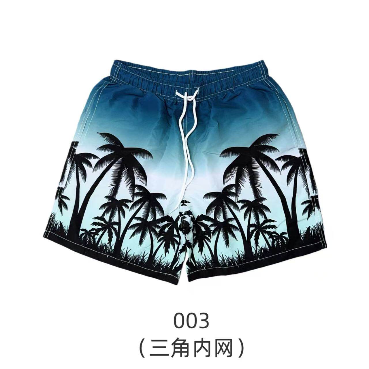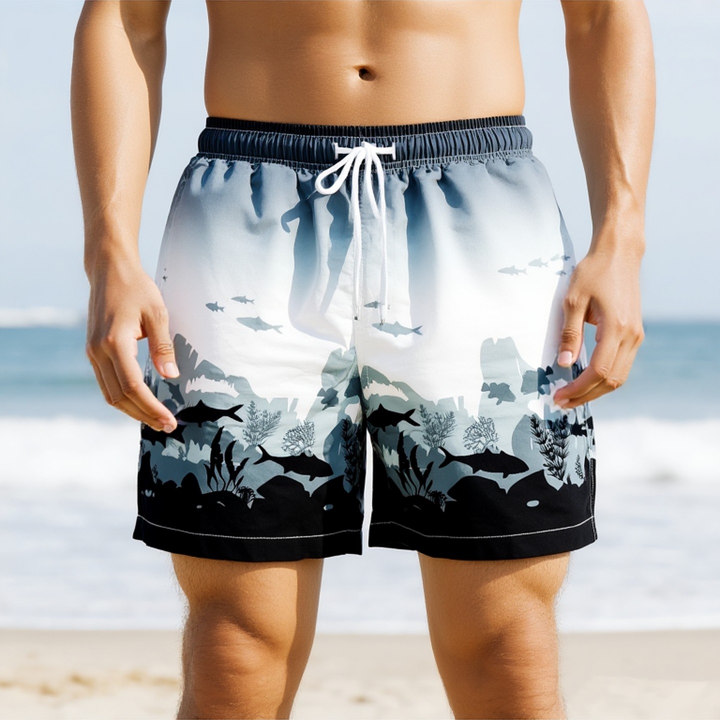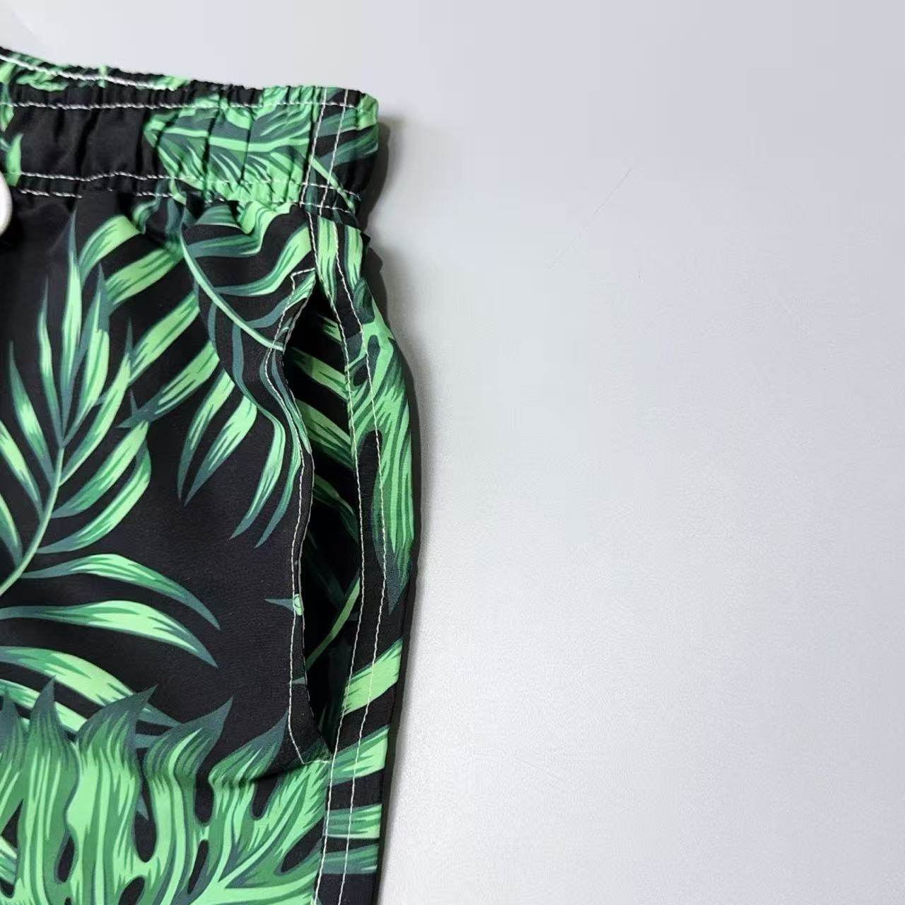 Amber Foreign Trade Island Print Plus-Size Men's Beach Shorts, Suitable for Water Activities, Casual Seaside Surfing Swim Trunks with Drawstring