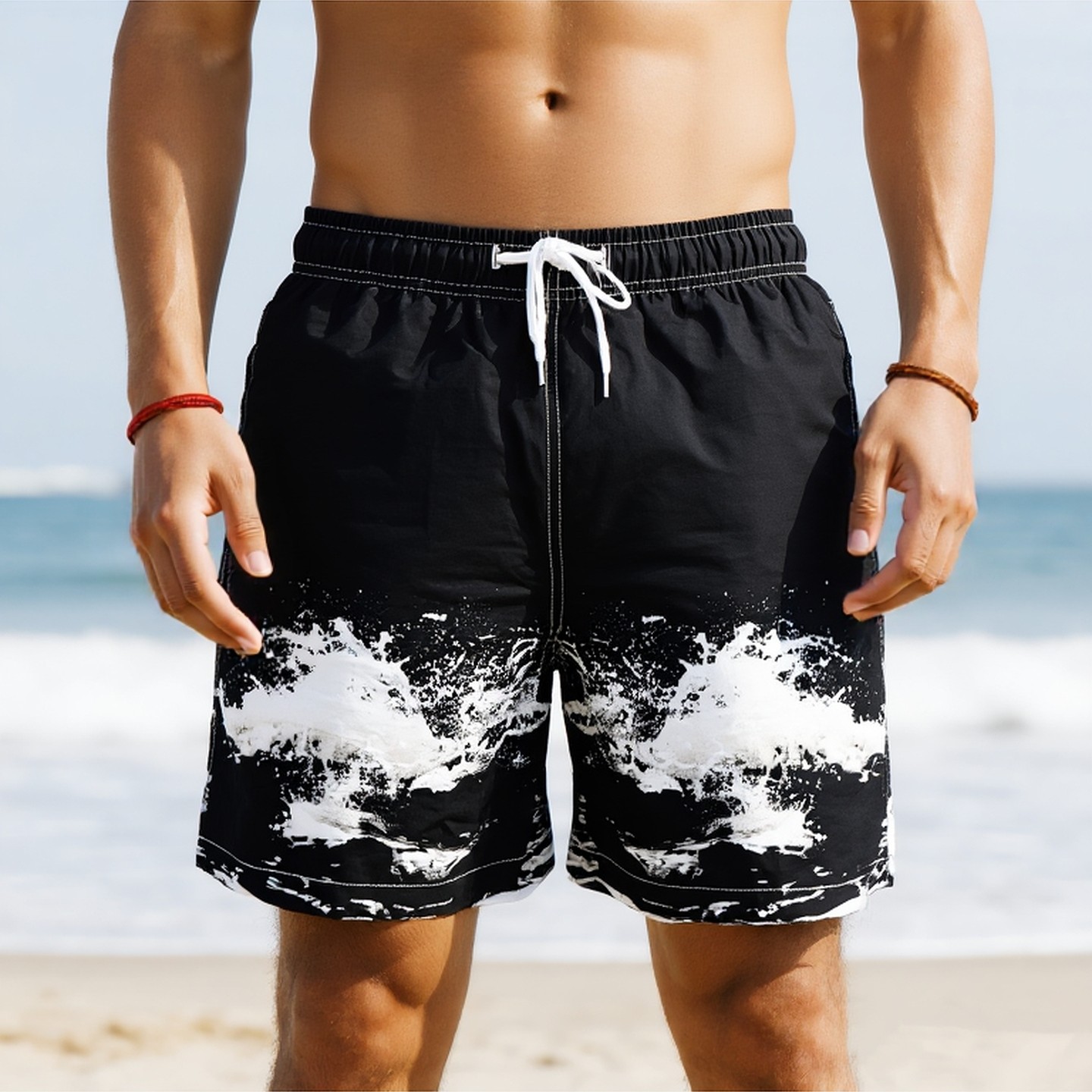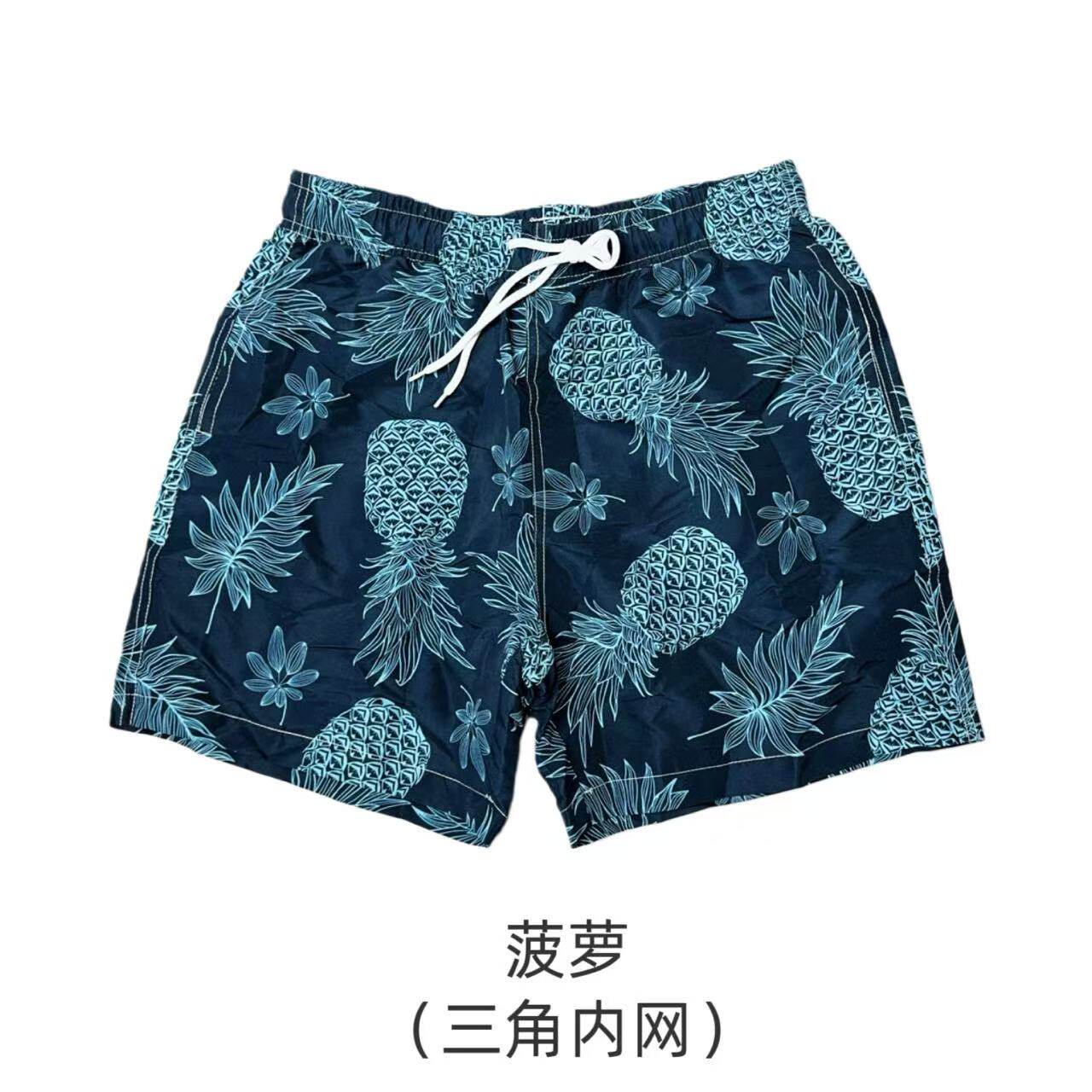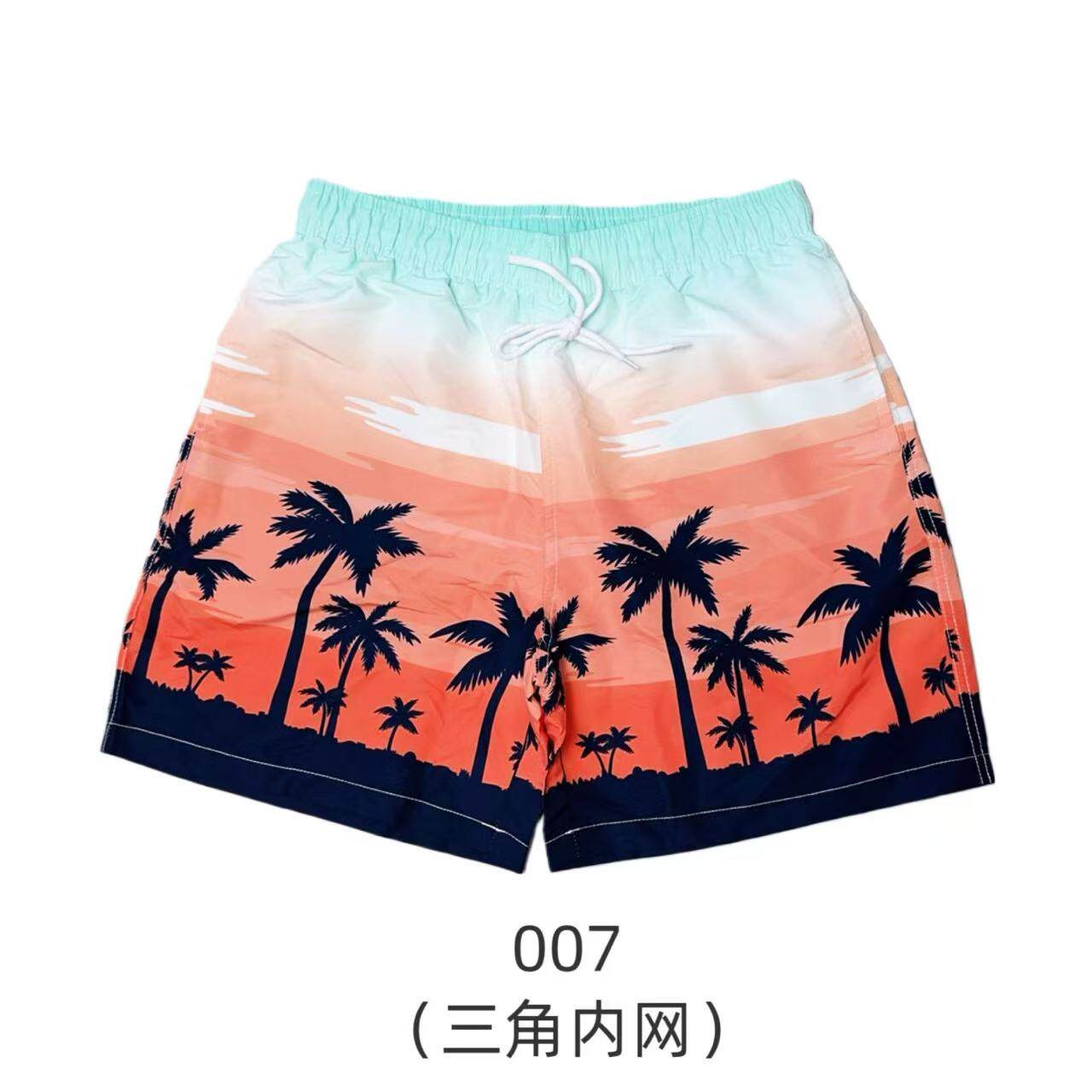 Amber Foreign Trade Island Print Plus-Size Men's Beach Shorts, Suitable for Water Activities, Casual Seaside Surfing Swim Trunks with Drawstring