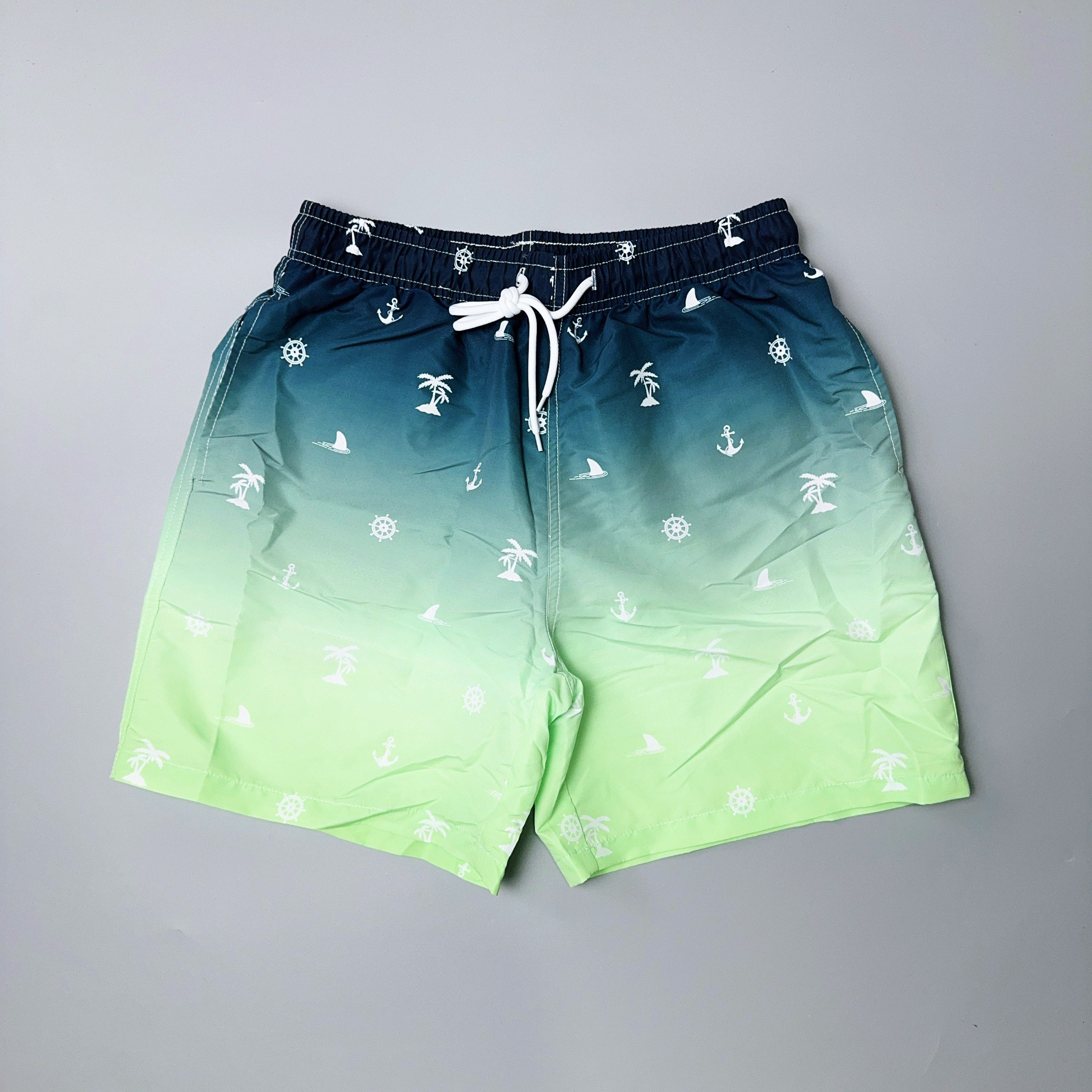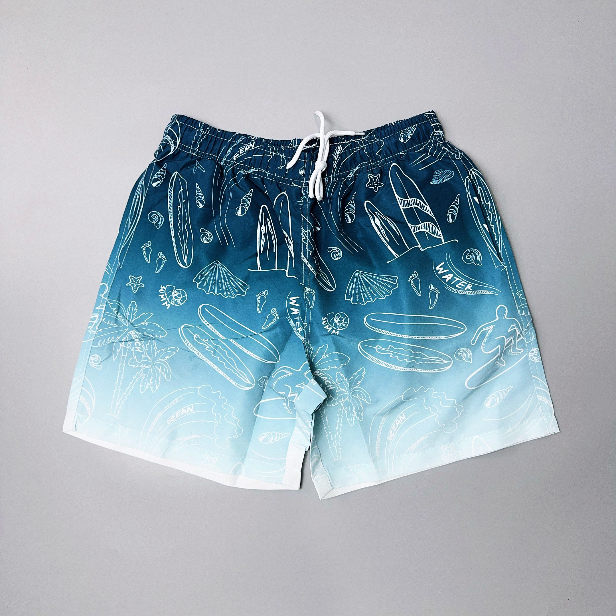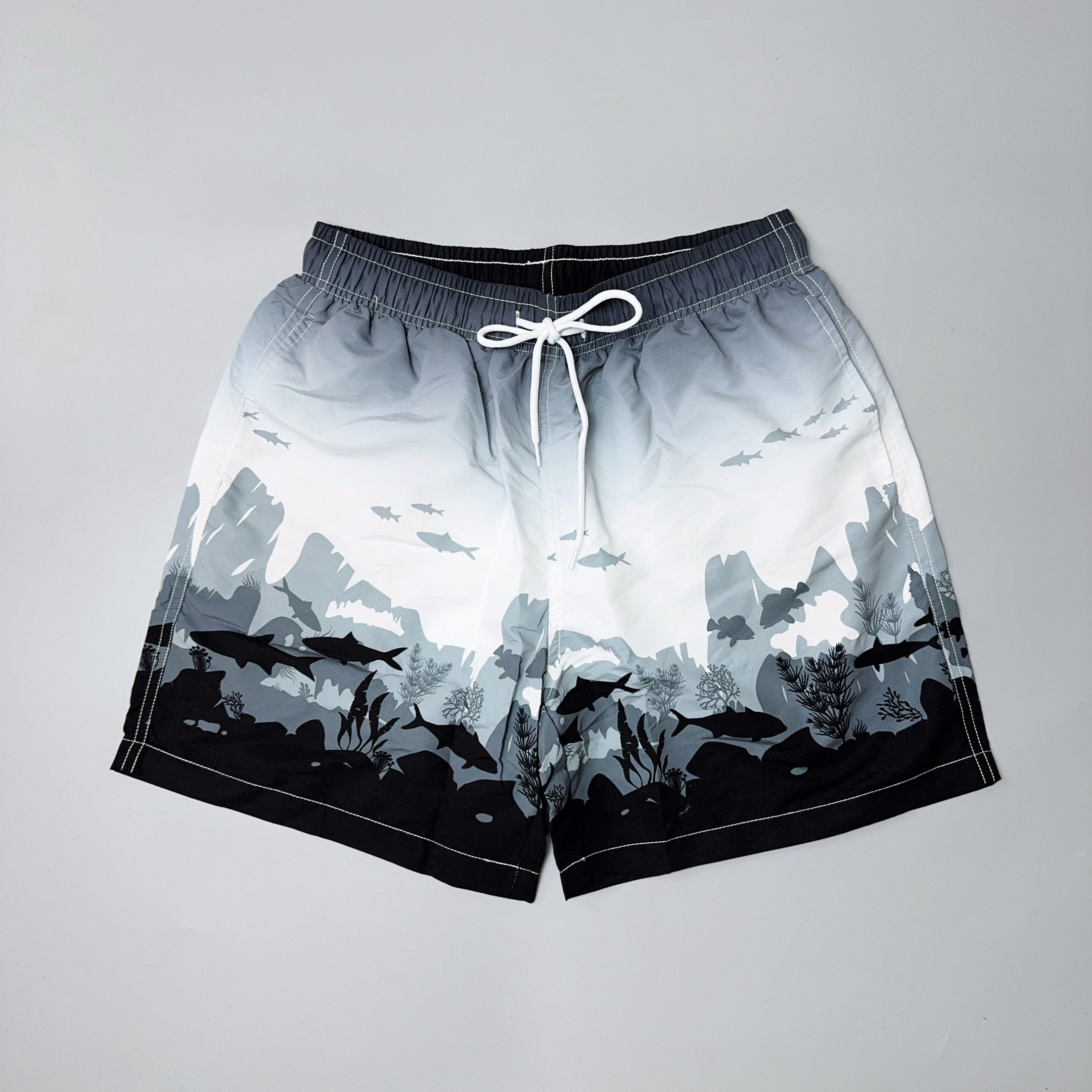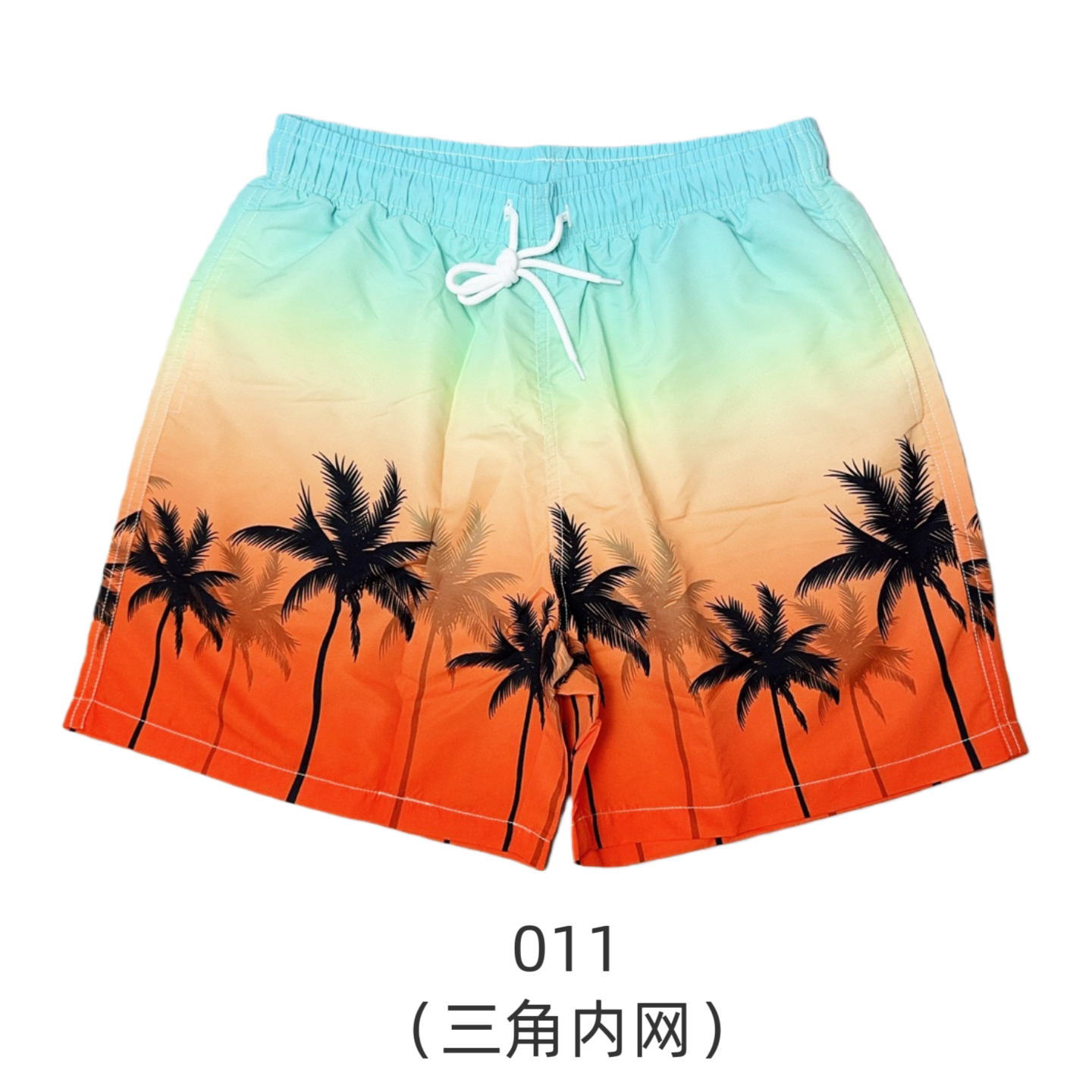Amber Foreign Trade Island Print Plus-Size Men's Beach Shorts, Suitable for Water Activities, Casual Seaside Surfing Swim Trunks with Drawstring