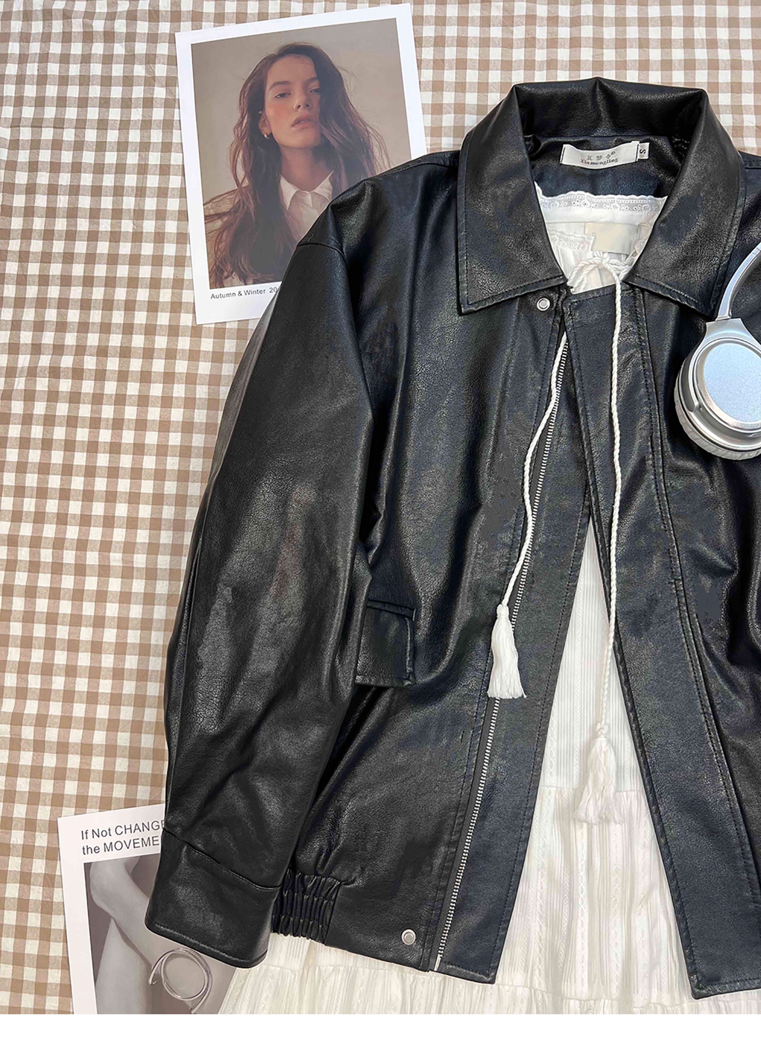 Brown Leather Outwear Women's 2025 Spring & Fall New arrival Small Hong Kong Style Retro Motorcycle Leather Jacket Maillard Wear