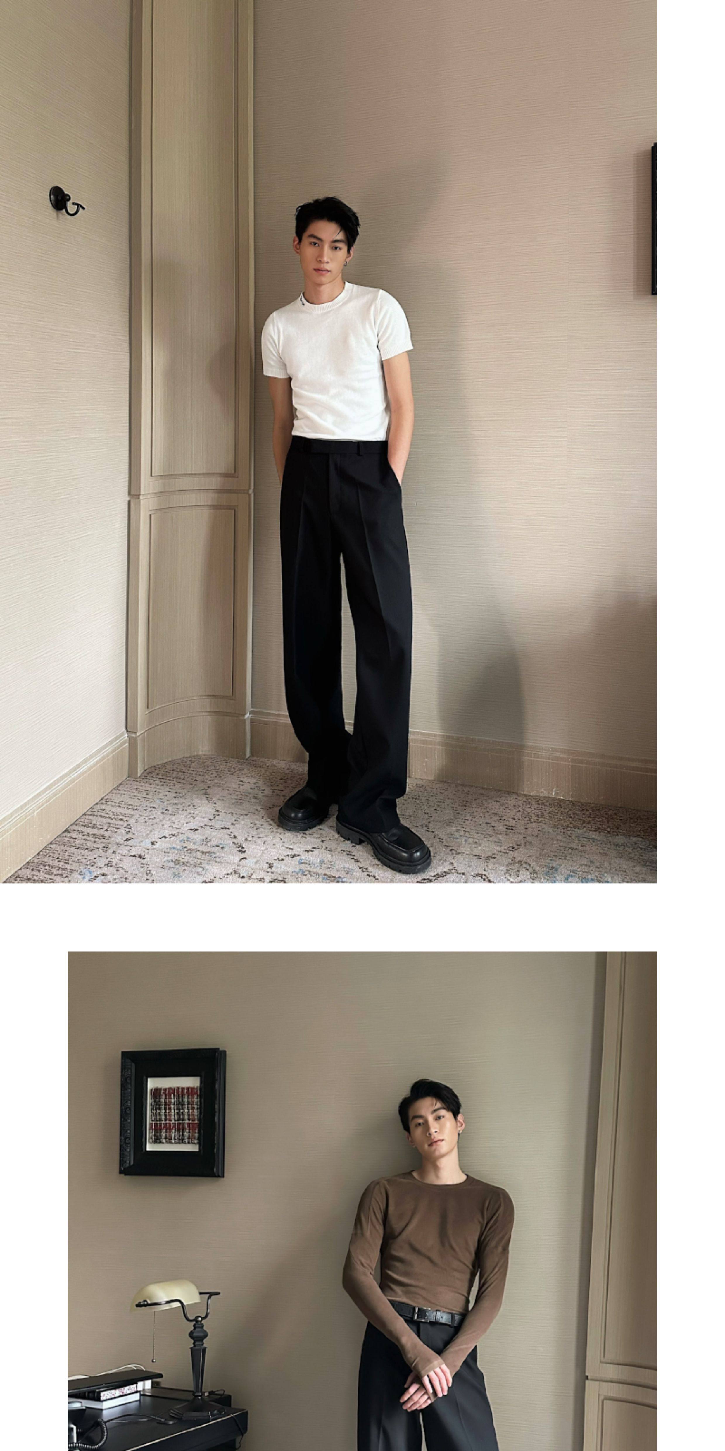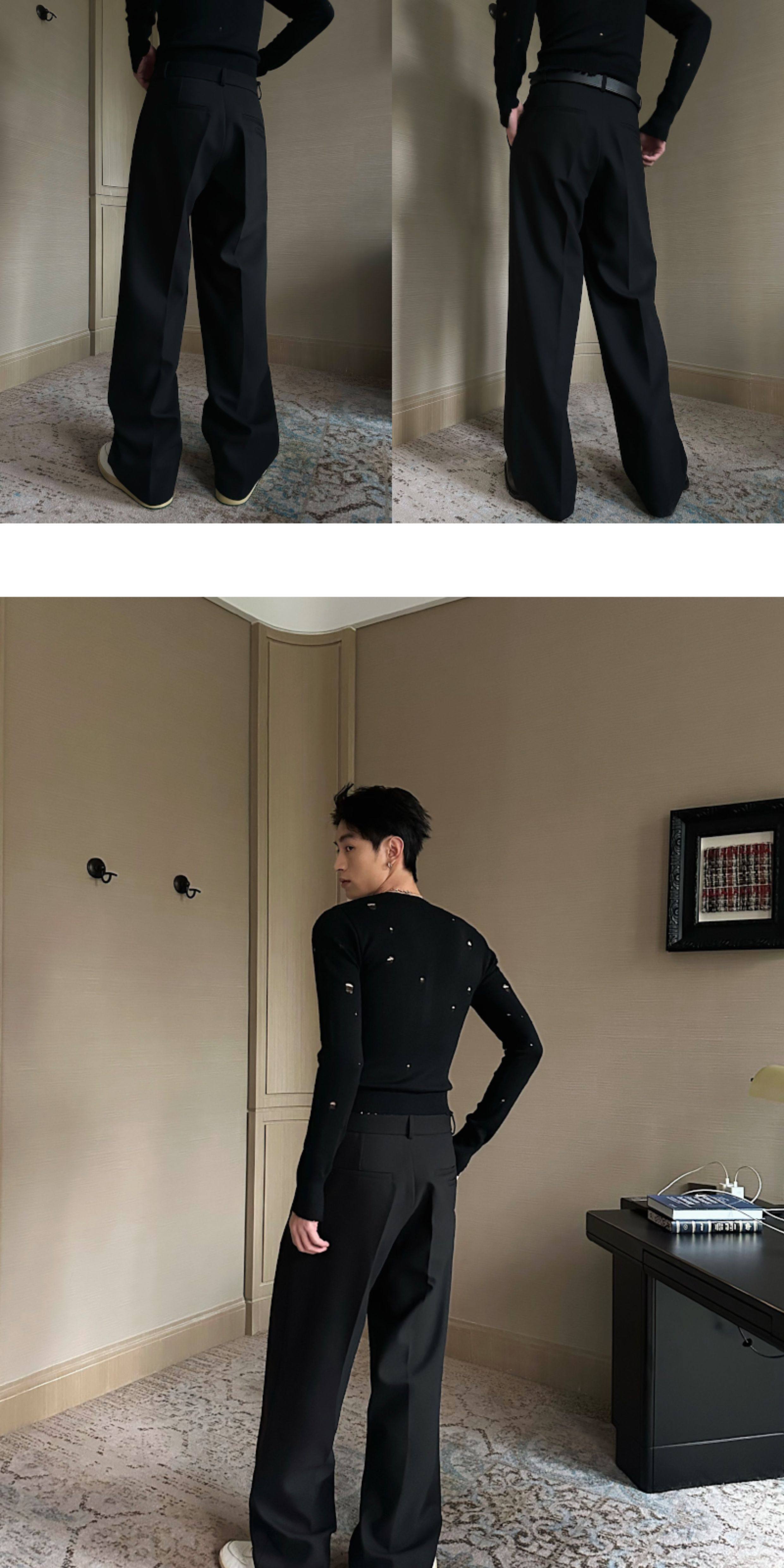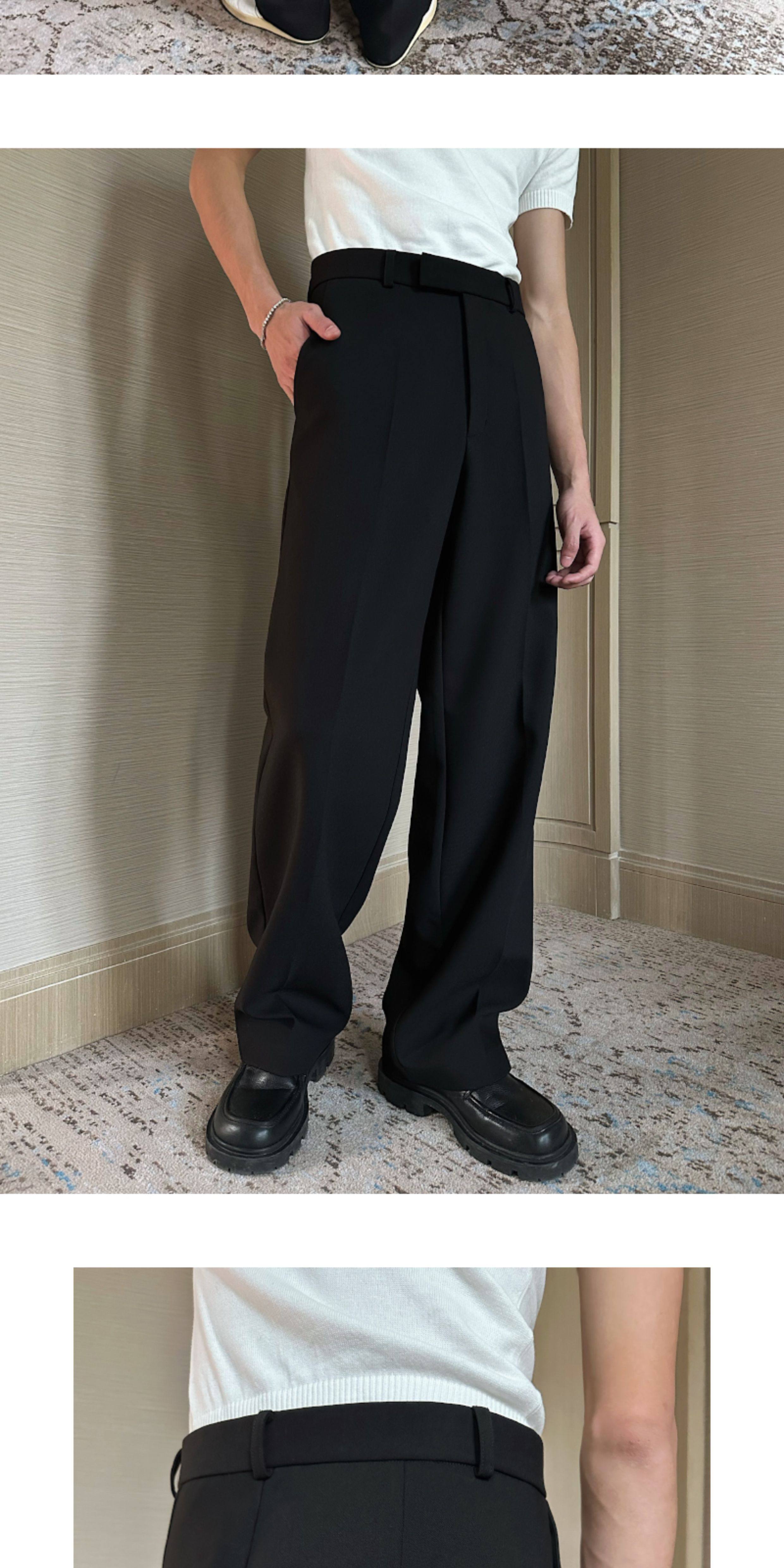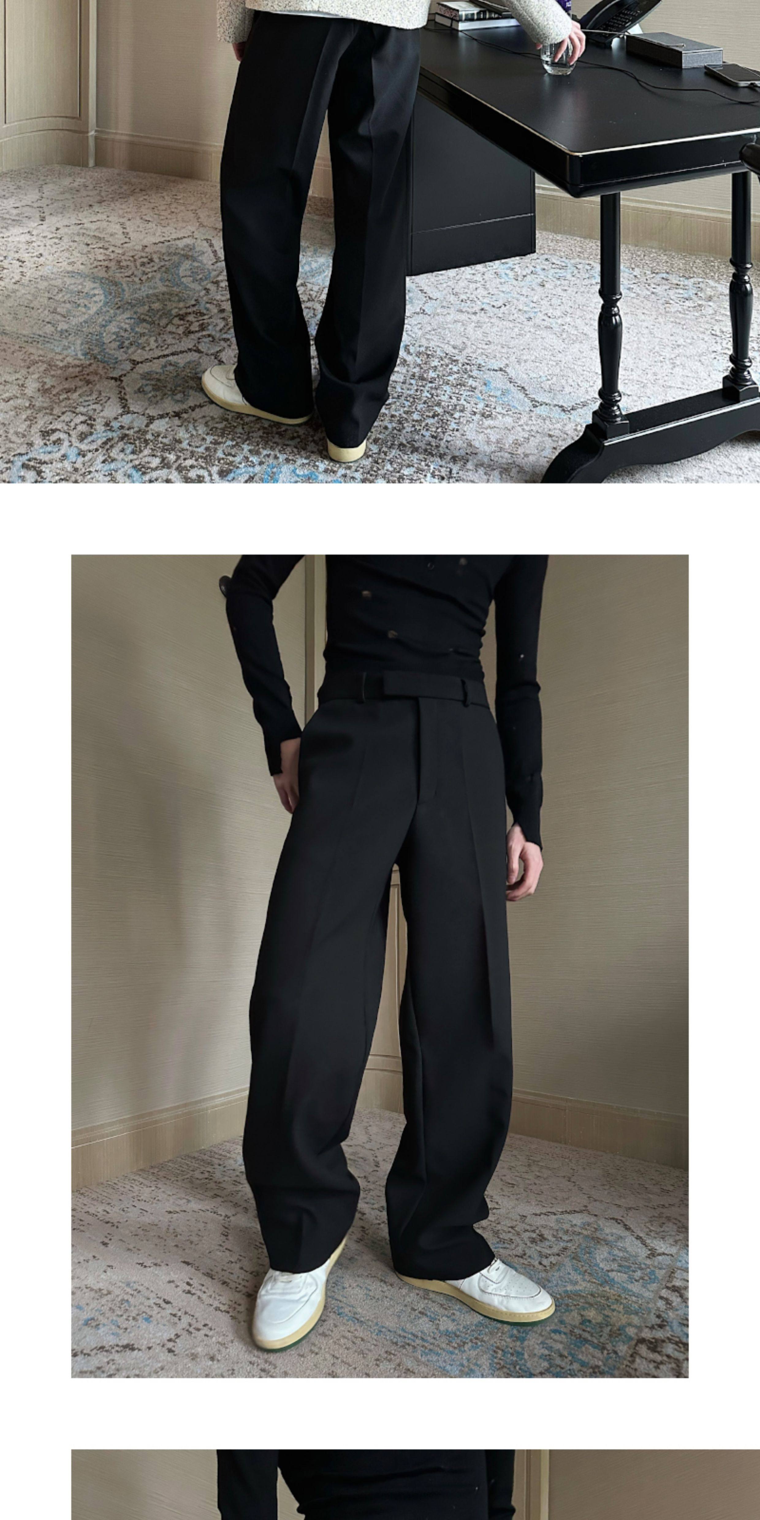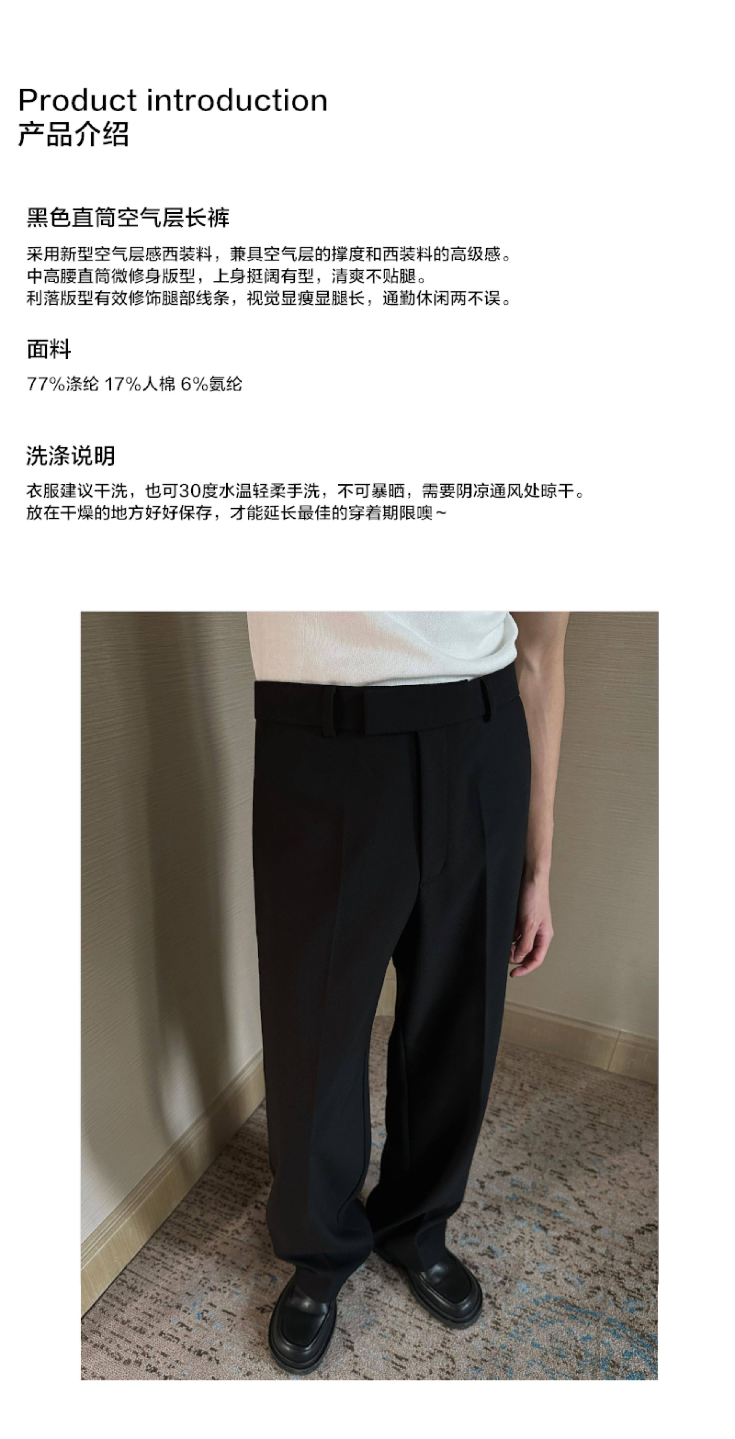 Weave Straight-Leg Trousers with a Full Silhouette, Three-Dimensional Air Layer Design, Basic Black, High-Waisted and Slimming