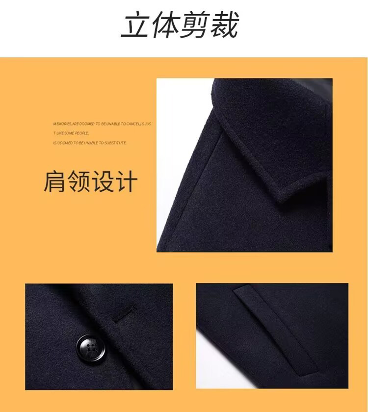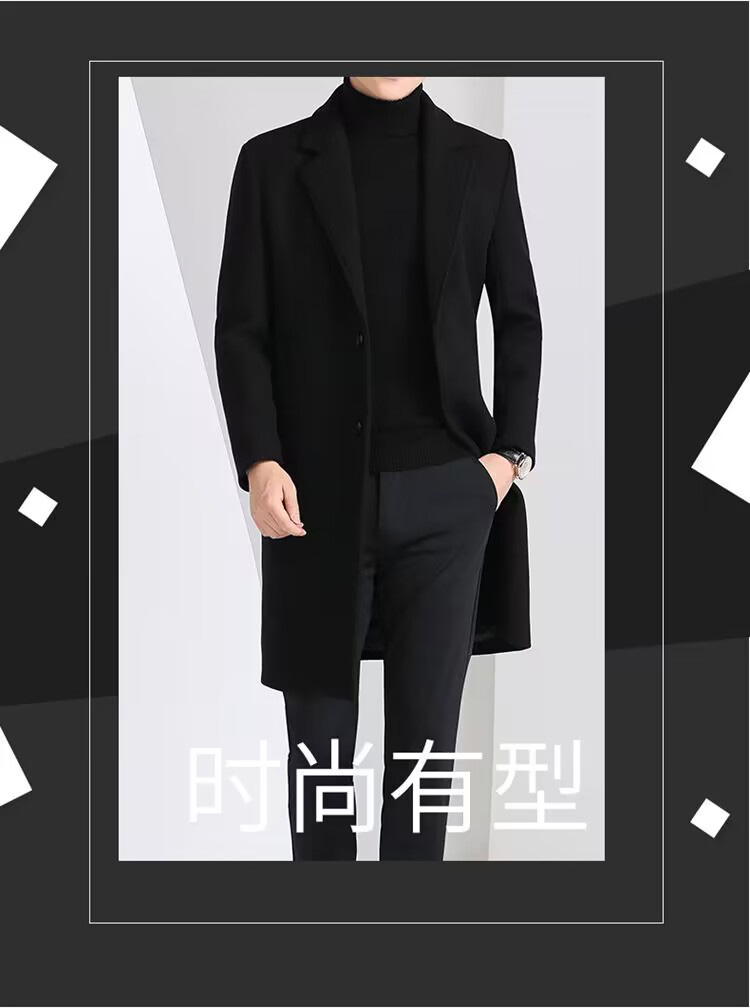 2025 New Men's Woolen Coat Men's Suit Collar Jacket Winter Thickened Long Fashion Casual Trench Coat